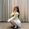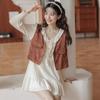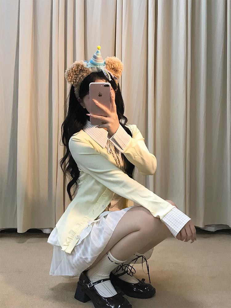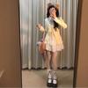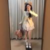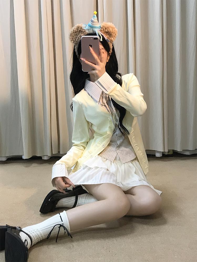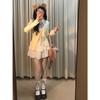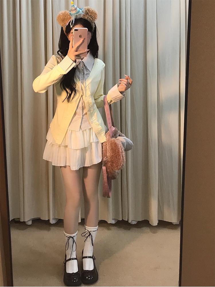 Conjunto de estilo preppy suave y dulce para mujer primavera y otoño 2025 nuevo top falso de dos piezas + falda media pastel conjunto de dos piezas