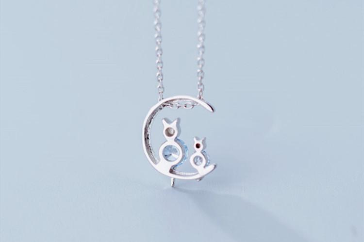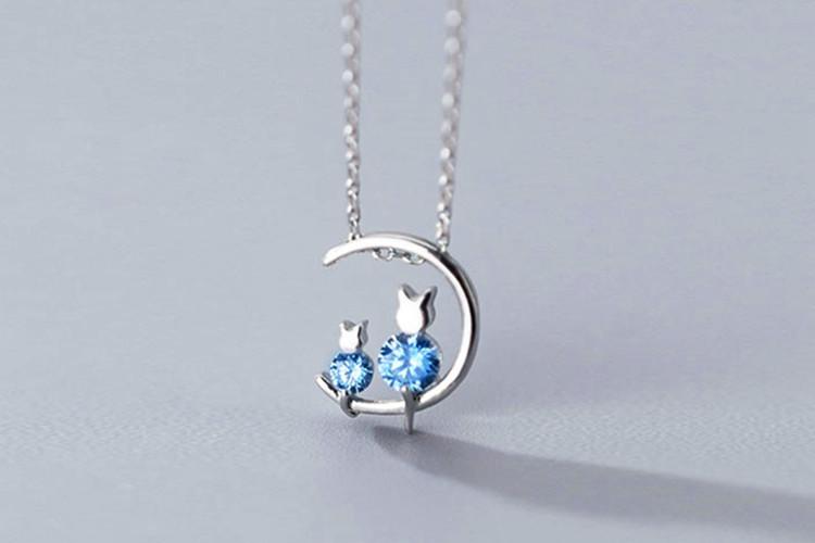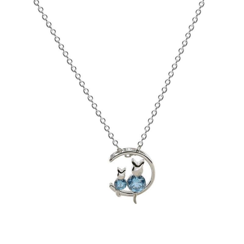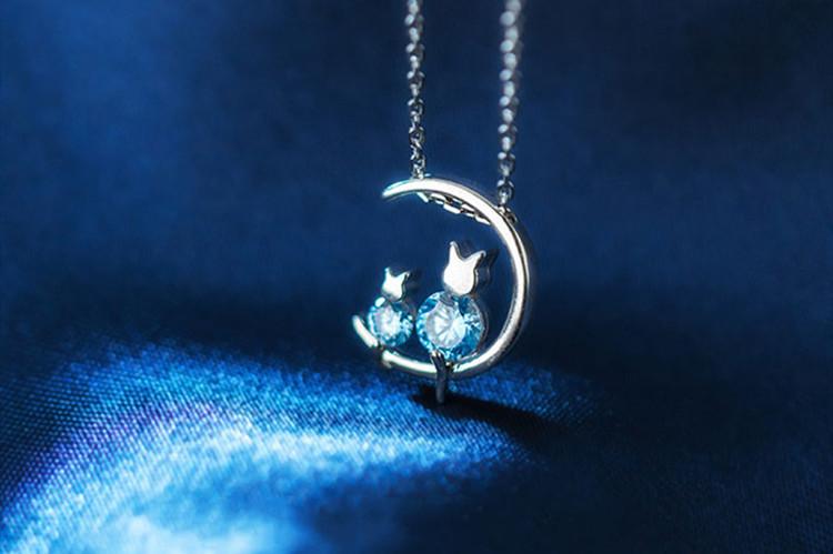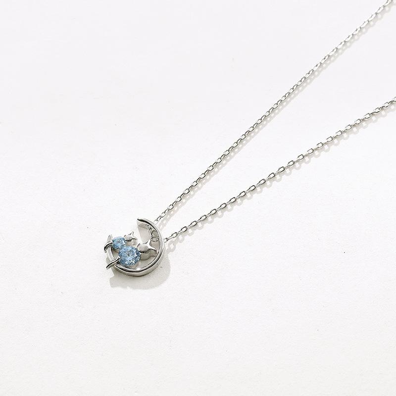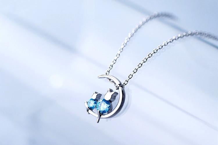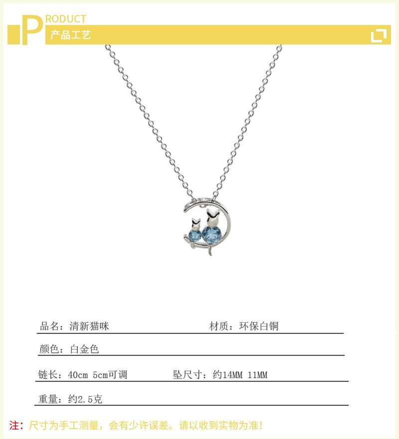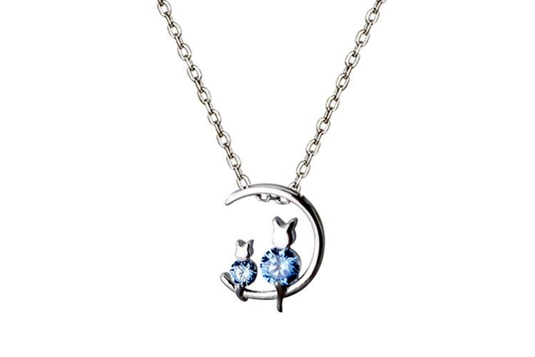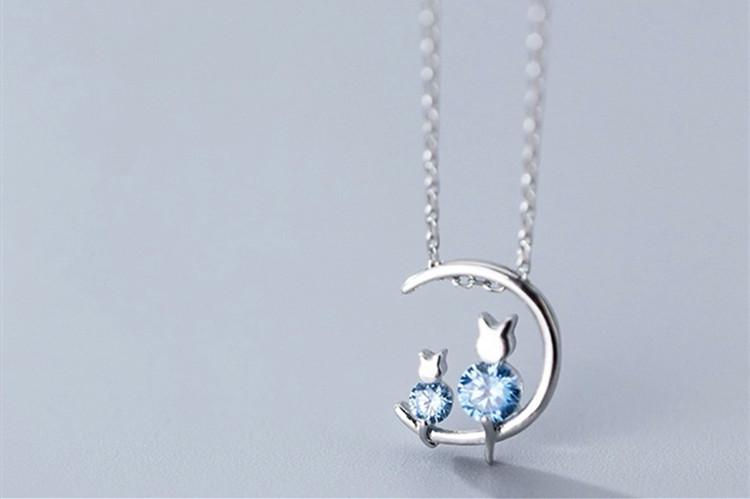 Collar de Gato Luna de Circón Azul Moda Celebridad de Internet Temperamento Combinable Personalidad Colgante Cadena Clavícula para Mujer Suministro de Comercio Exterior