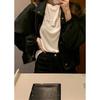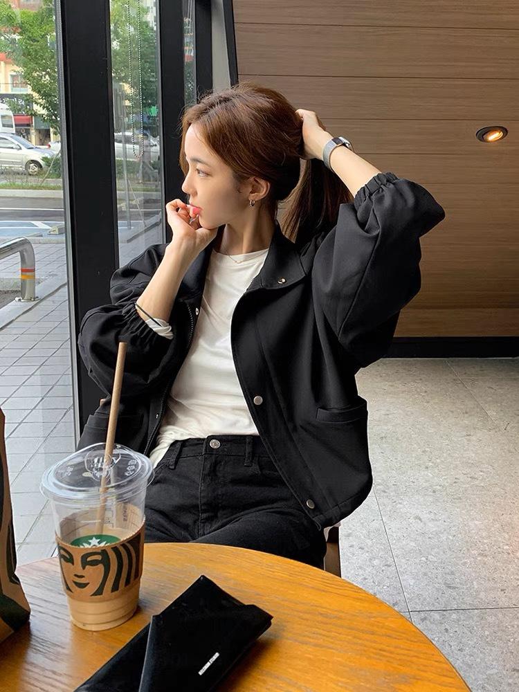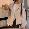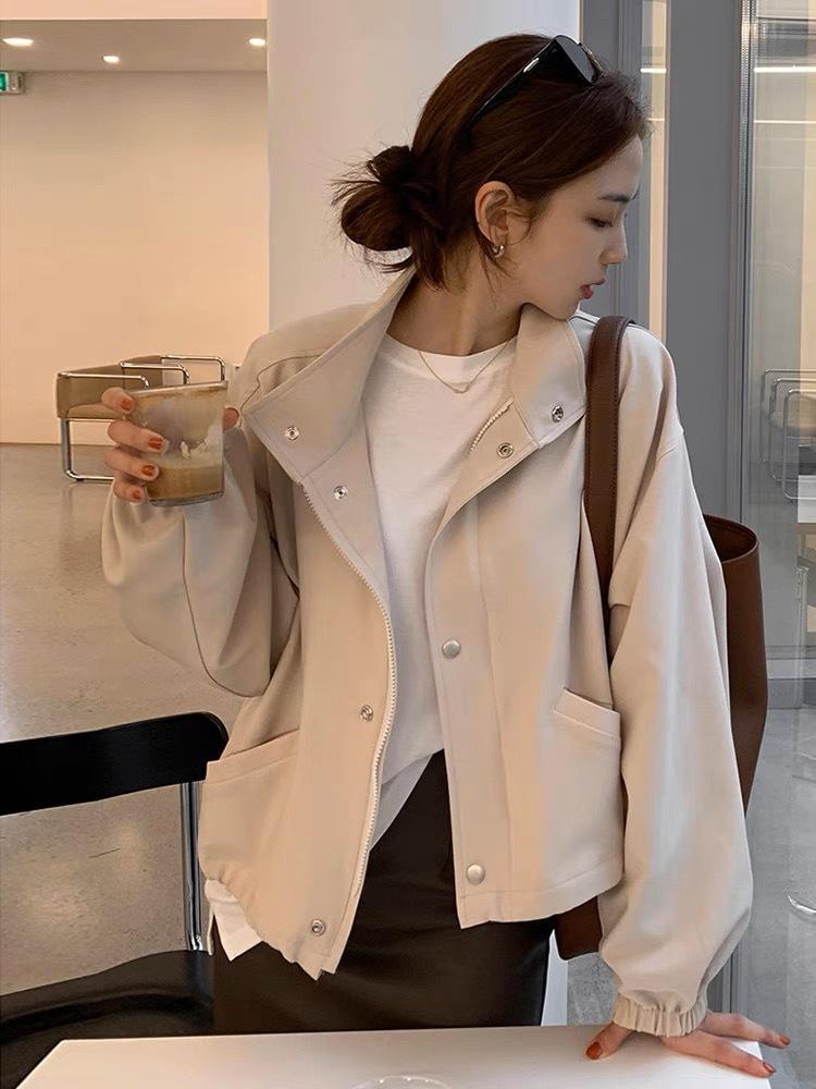 2025 Nueva Chaqueta Corta Delgada de Color Sólido para Primavera y Otoño para Mujer, Temperamento, Estilo Perezoso, Holgada, Casual, con Cuello Alto, Top