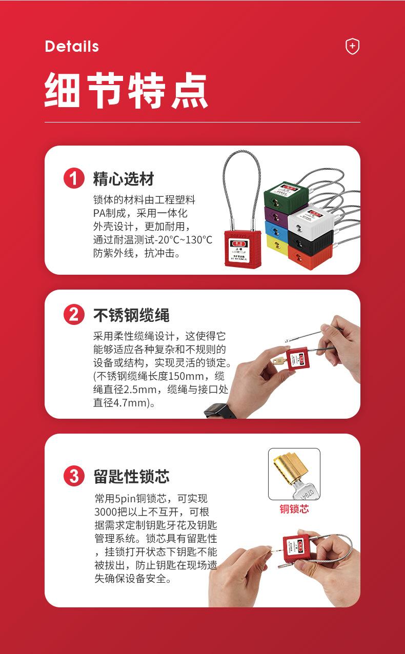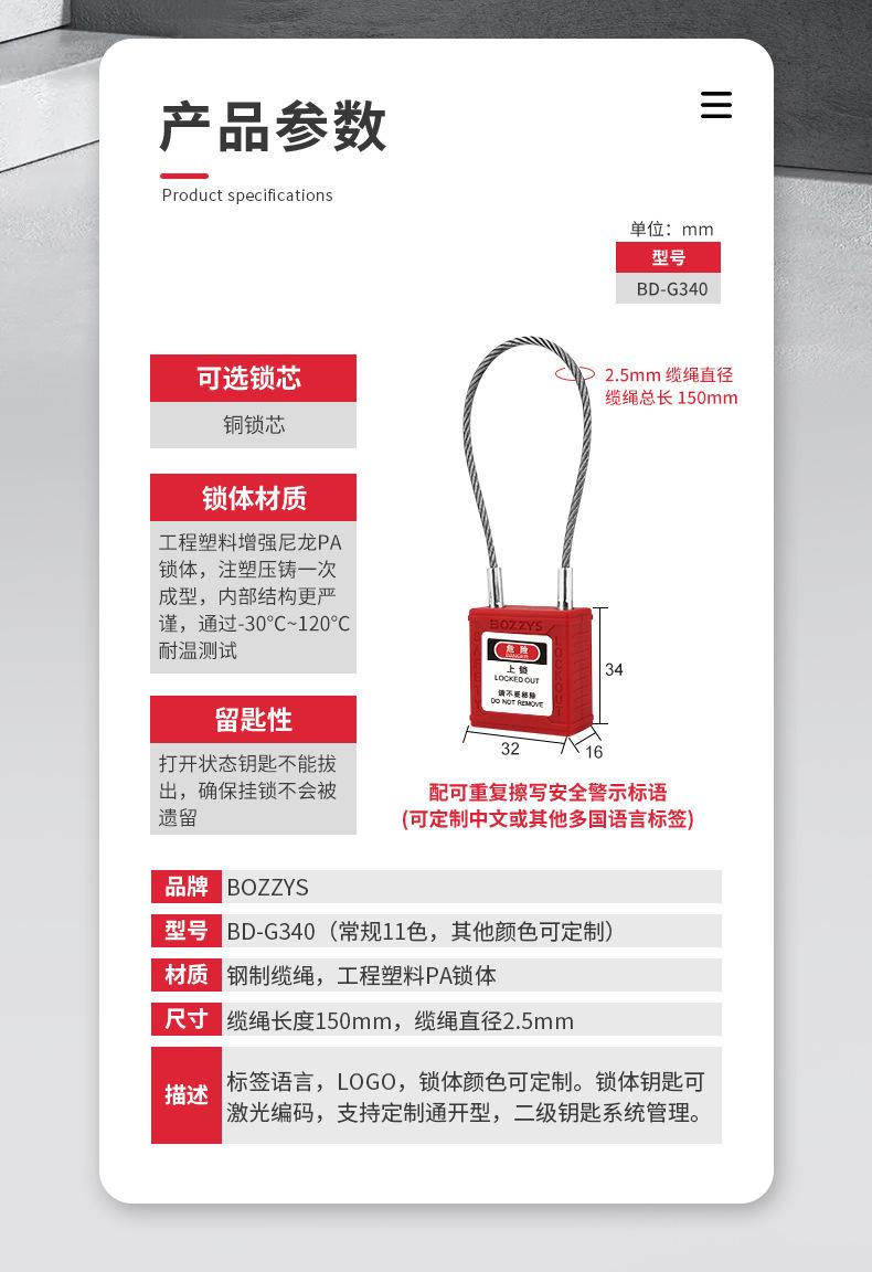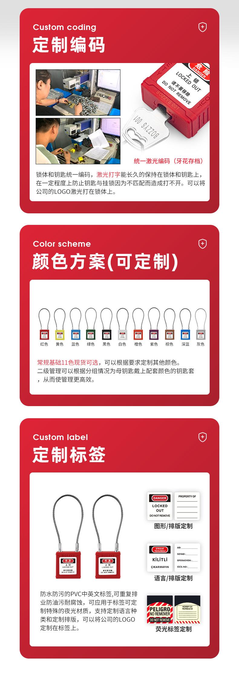 BOZZYS Candado de Seguridad Industrial Bloqueo Etiquetado Aislamiento Plástico Acero Cable Candado de Seguridad Venta al por Mayor