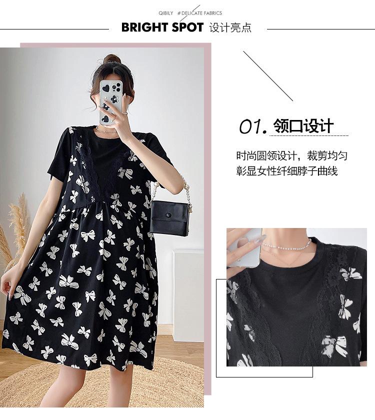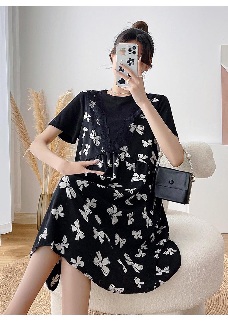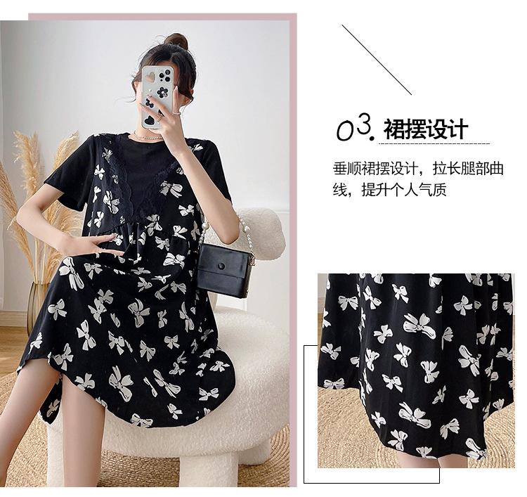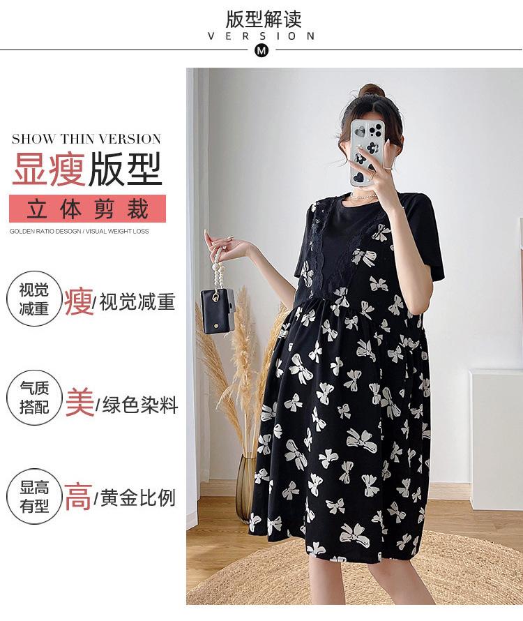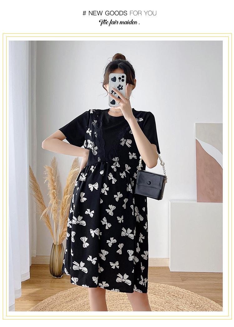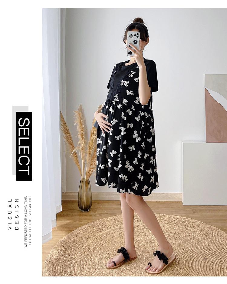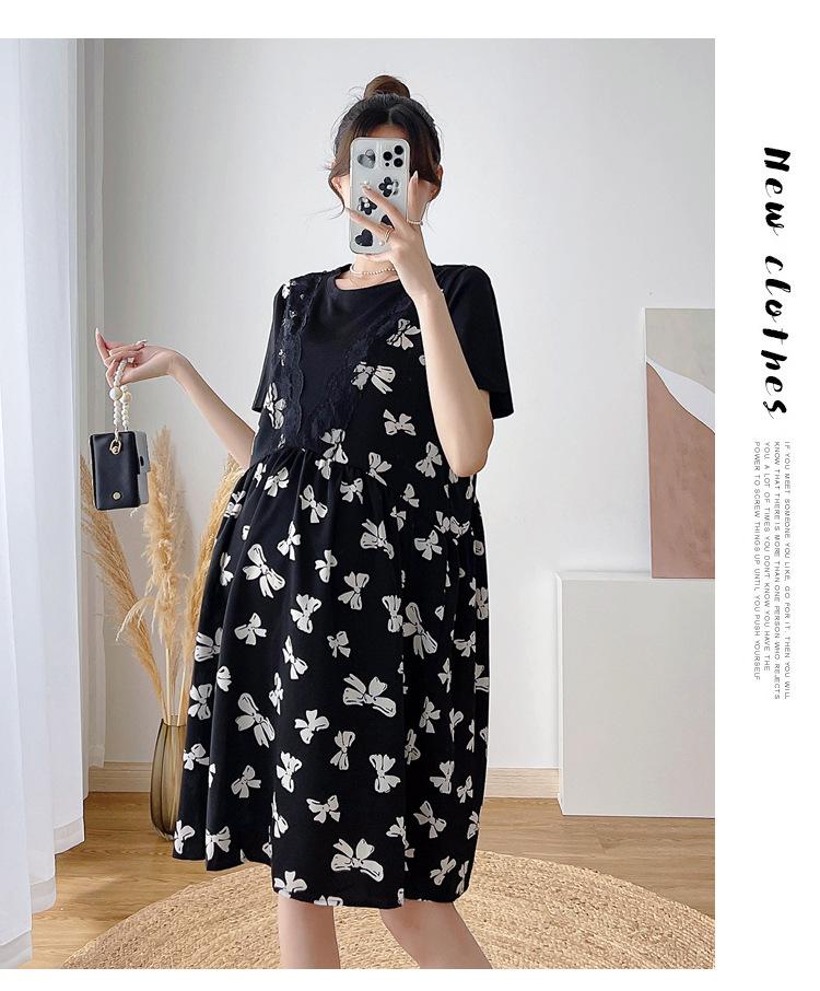 Verano Maternidad Nuevo Dulce Moda Chifón Falso Dos Piezas Suelto Talla Grande Vestido de Maternidad