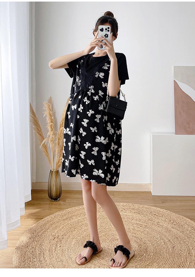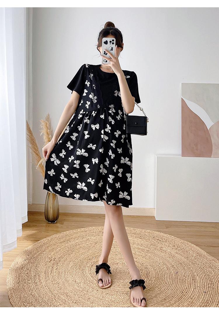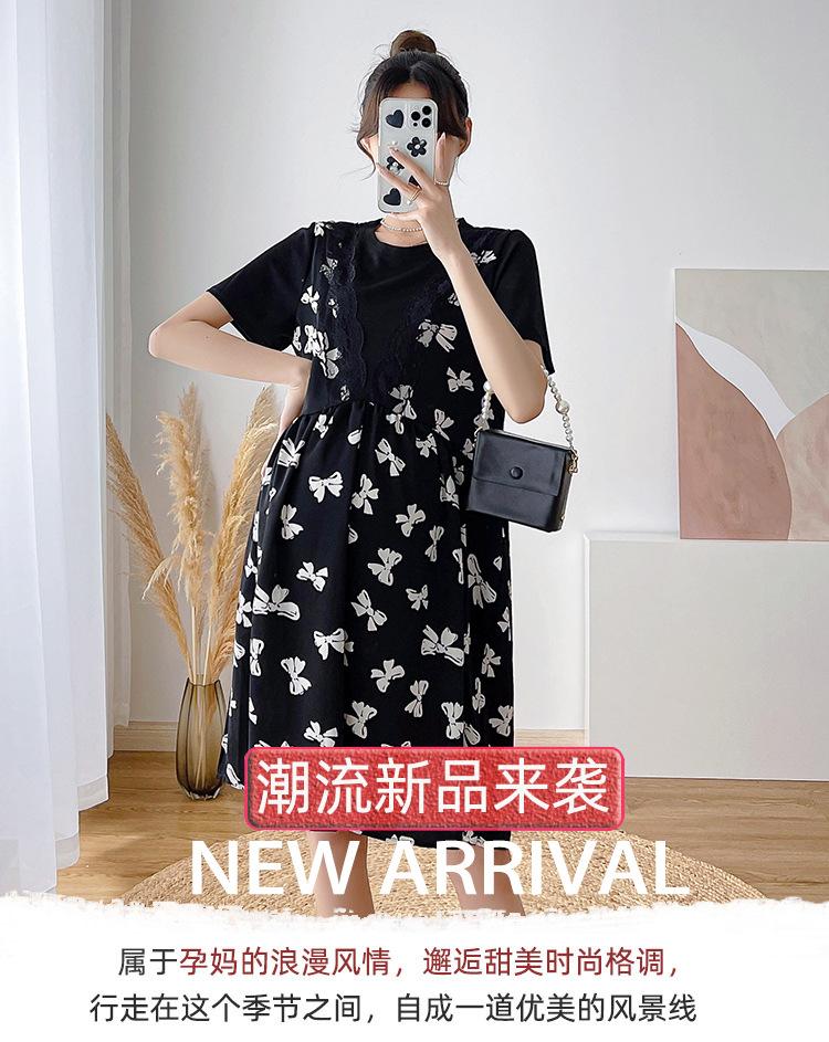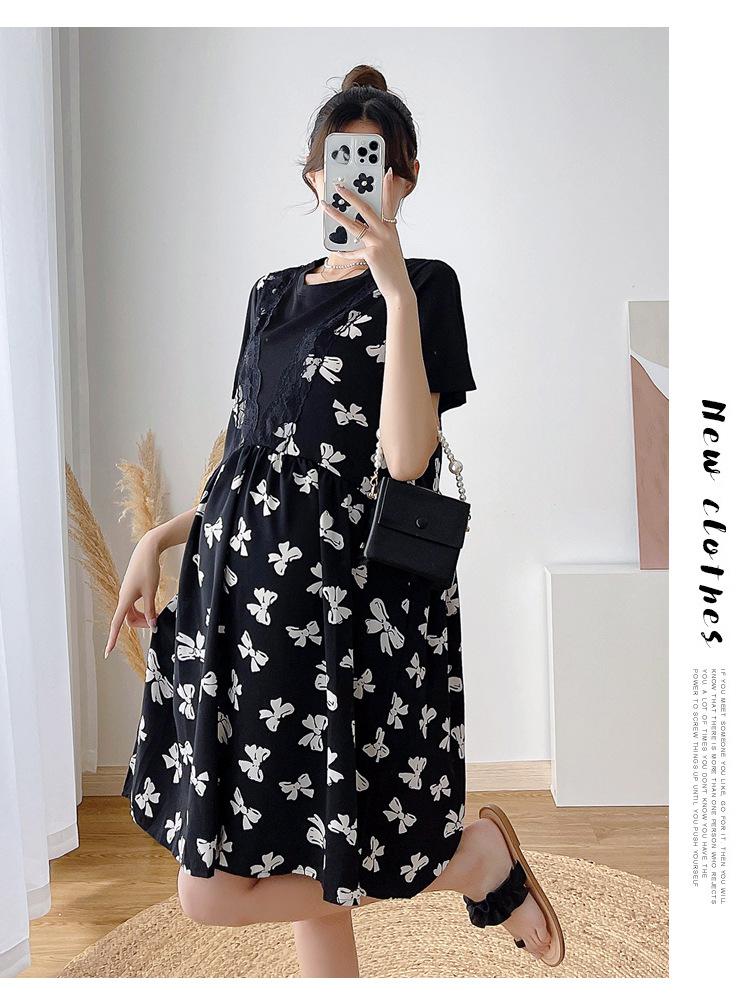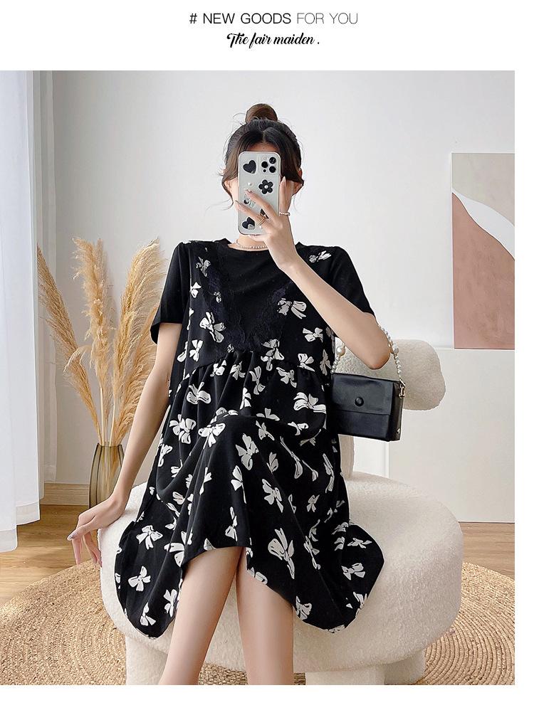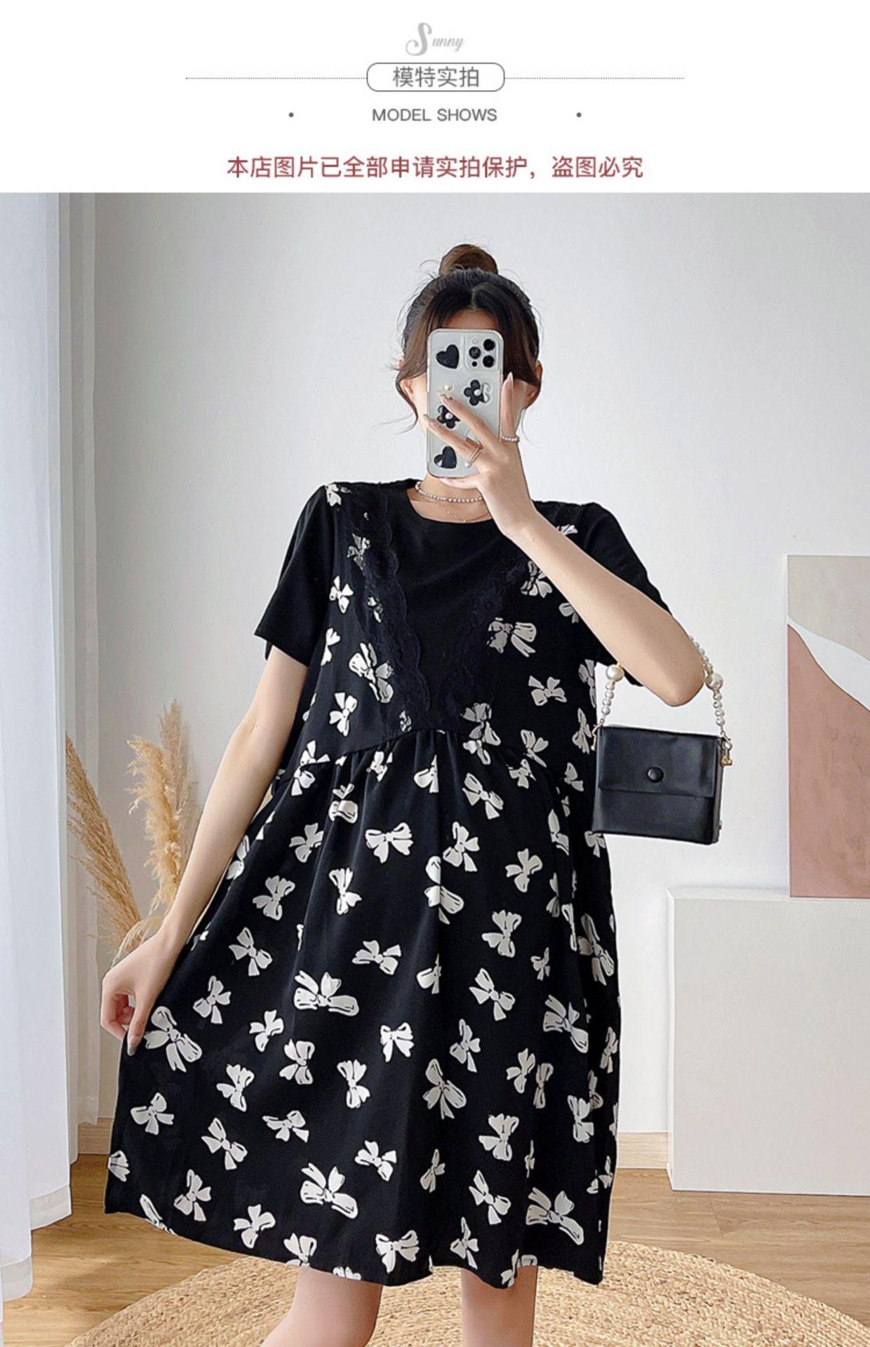Verano Maternidad Nuevo Dulce Moda Chifón Falso Dos Piezas Suelto Talla Grande Vestido de Maternidad