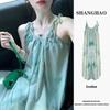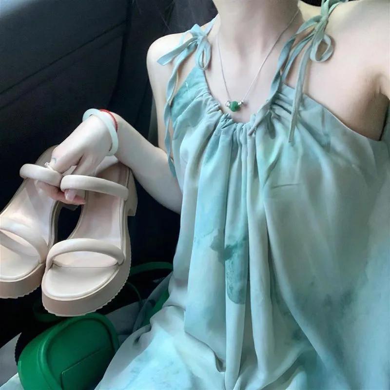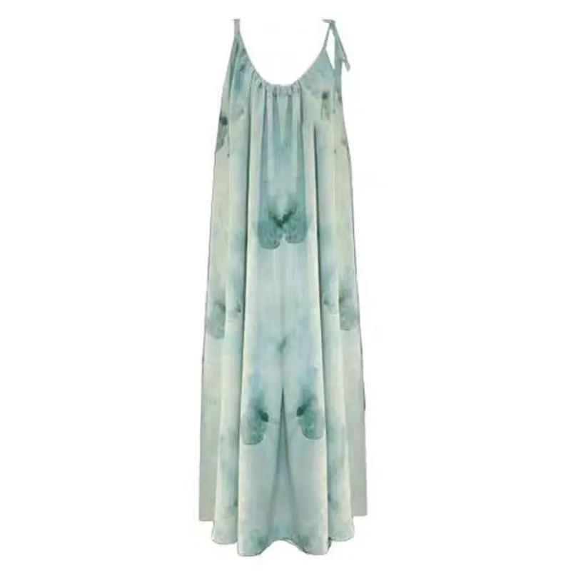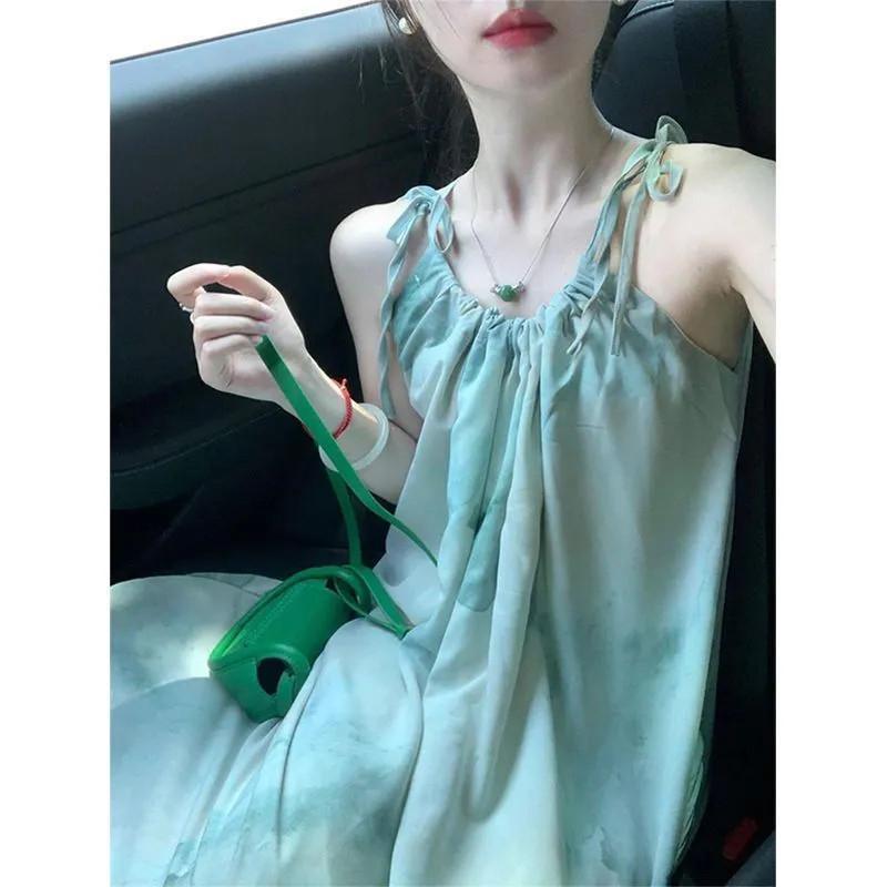 Vestido Tie-Dye Vacaciones en la Playa para Mujer Verano Francés Línea A Suelto Ajustado Vestido de Playa sin Mangas Falda Larga con Tirantes