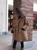 Abrigo de Lana para Mujer Estilo Coreano Otoño e Invierno Bolsillo Grande Cuello Sastre Suelto Viento Largo Medio