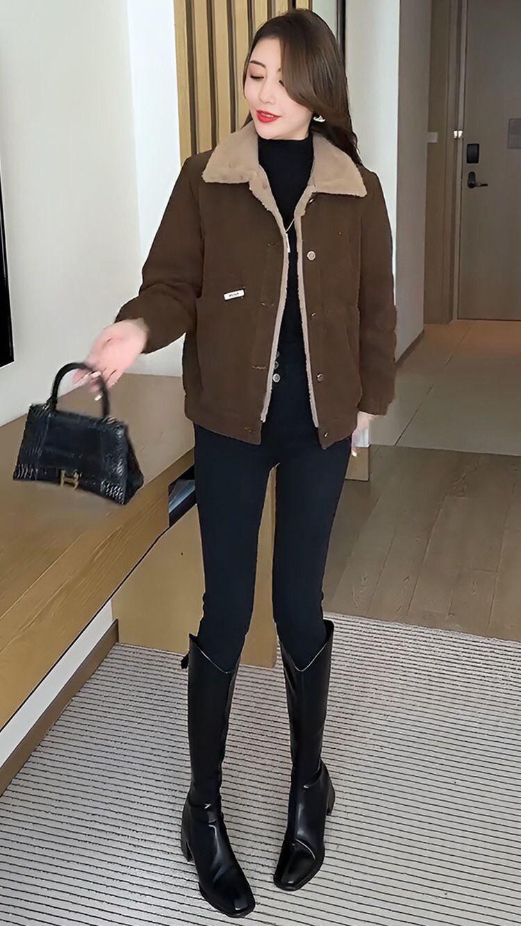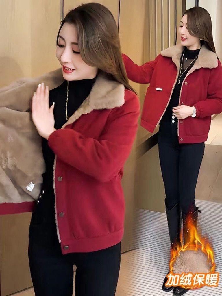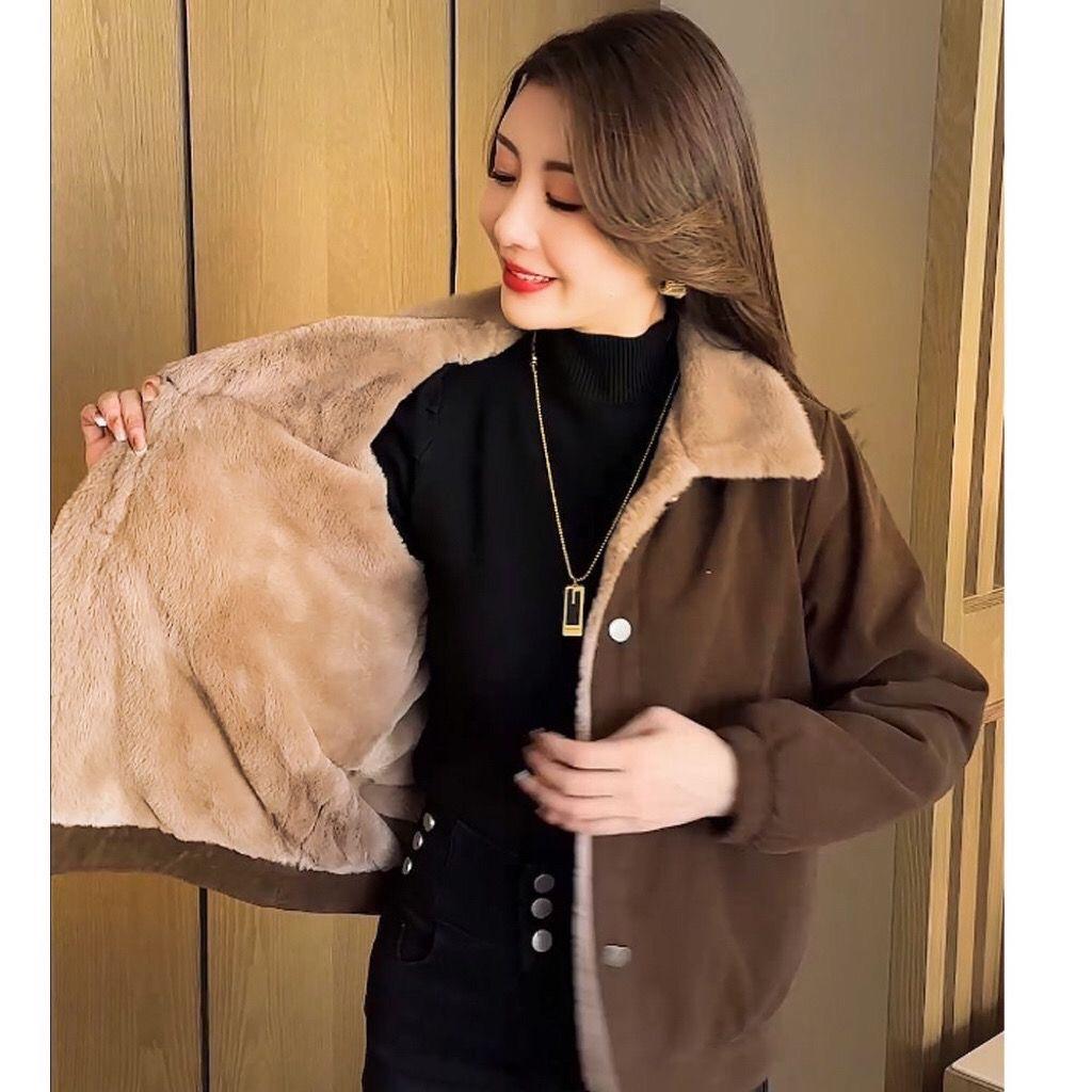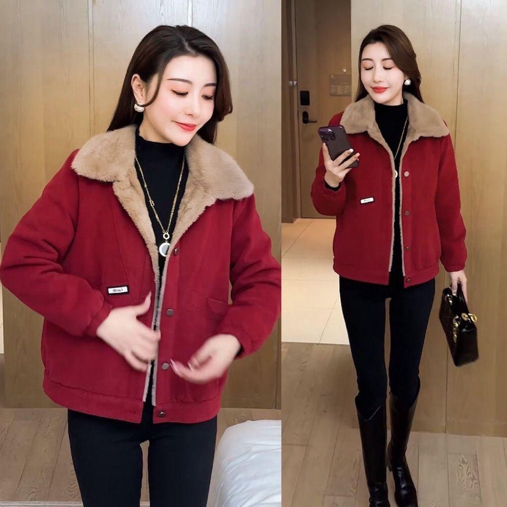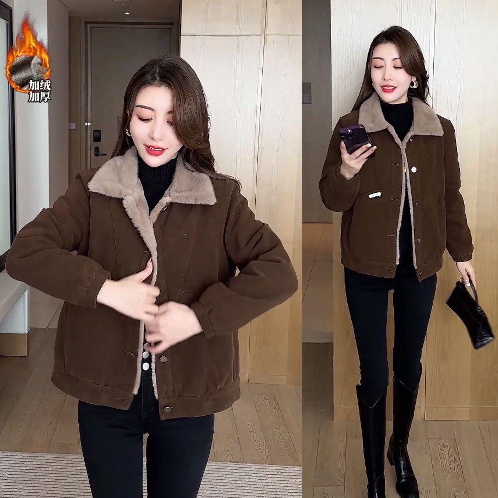 Chaqueta de Terciopelo de Algodón Europeo 2024 Otoño e Invierno Nueva Moda Versátil Pequeña Suelta Terciopelo Grueso Chaqueta Top para Mujer