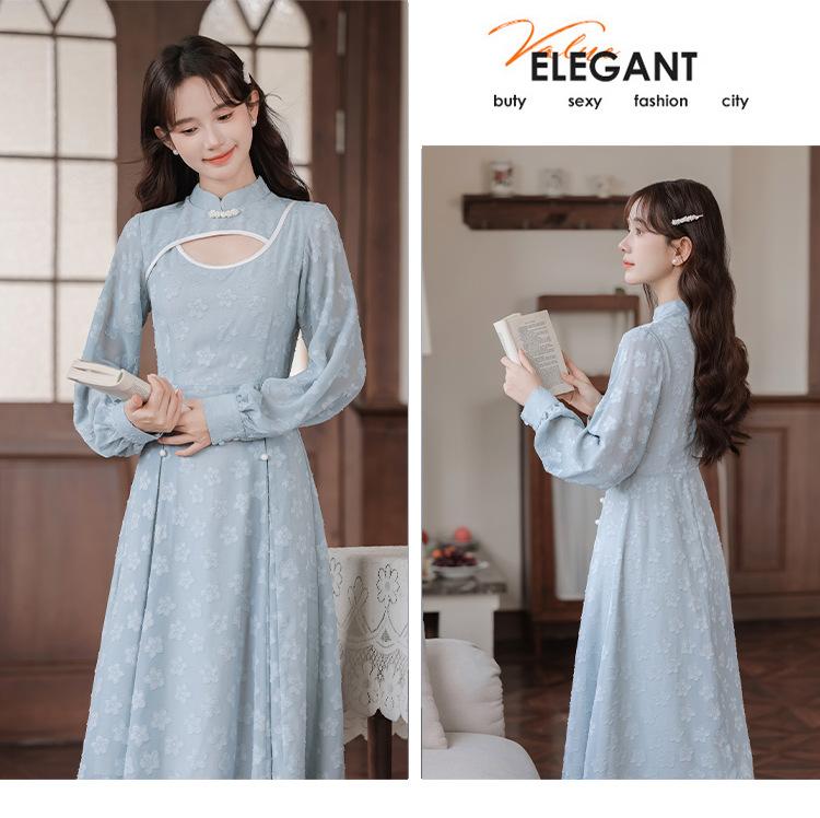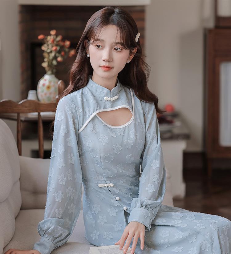 Cheongsam chino nuevo de trece líneas de otoño para mujer 2025, temperamento joven mejorado, estilo retro de la República de China, vestido jacquard