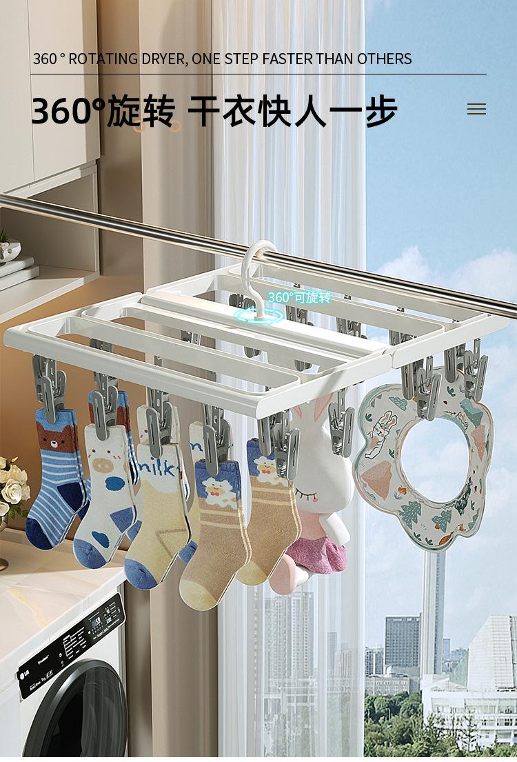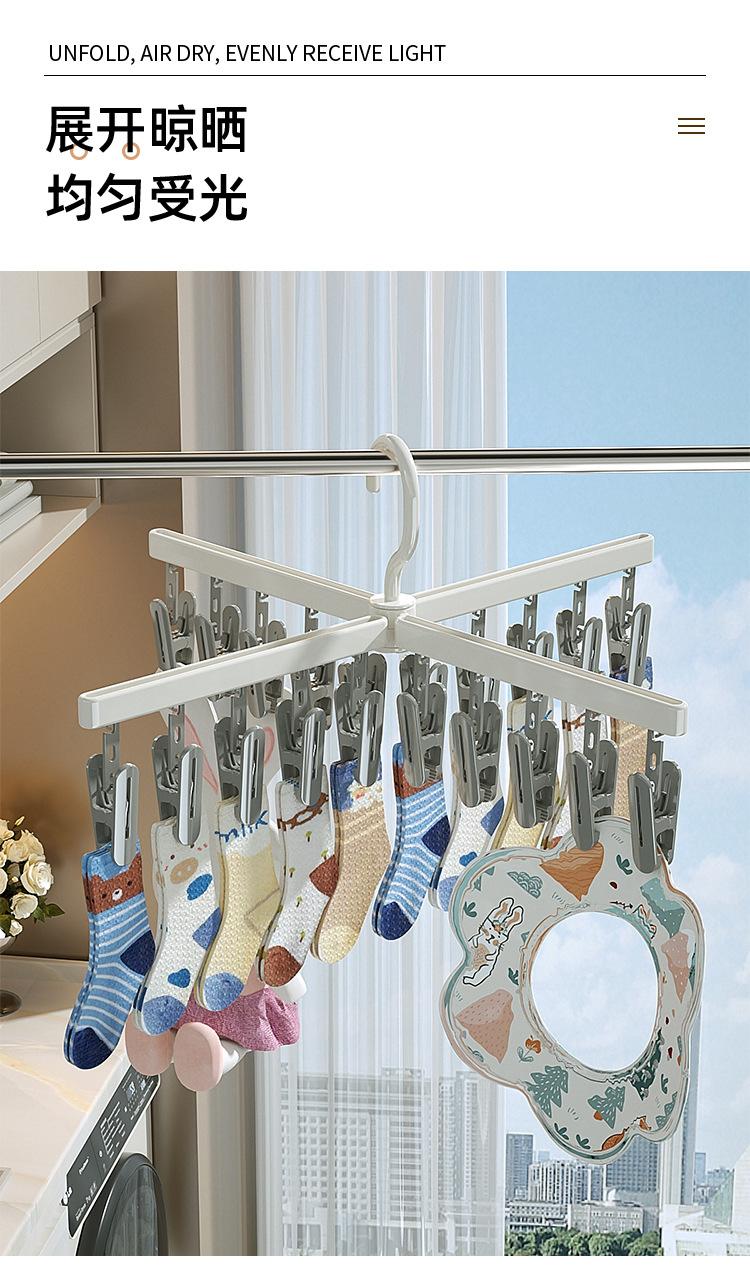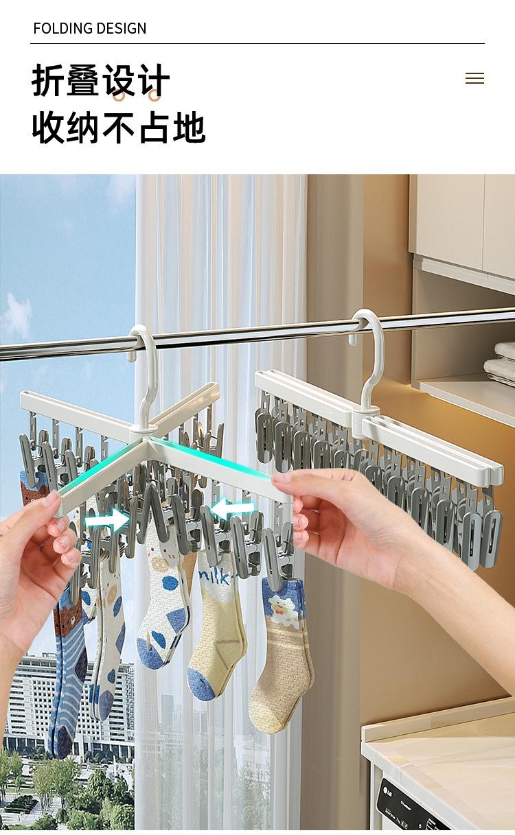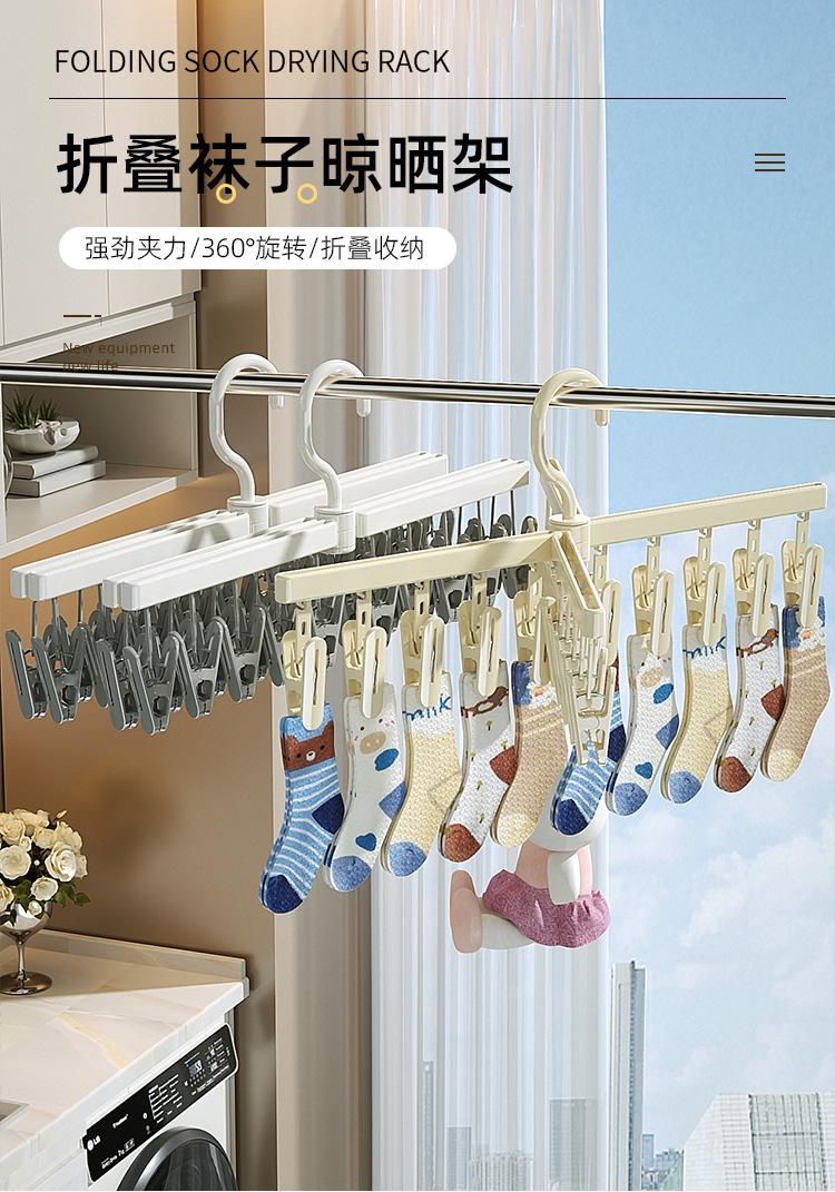 Tendedero de calcetines para el hogar, tendedero de ropa interior, tendedero de balcón, multi-pinza, plegable, artefacto para calcetines