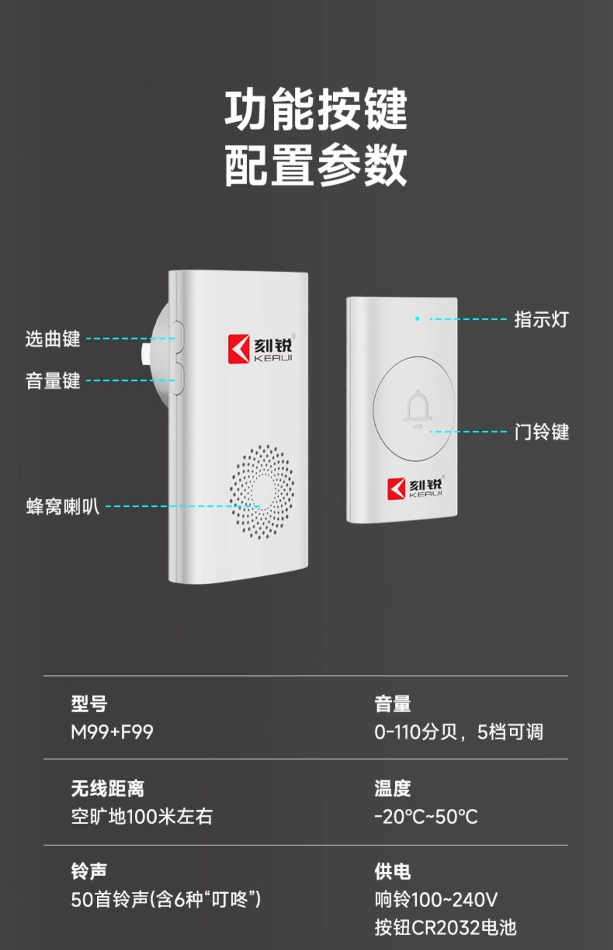 Timbre Inalámbrico Kerui 433 para Hogar Inteligente de Larga Distancia Campana Electrónica Timbre Uno a Uno Máquina Ding-Dong Pager