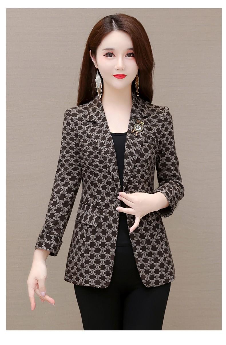 Traje Estampado de Moda Mujer 2025 Nuevo Primavera y Otoño Corte Slim Un Botón Petite Traje de Madre Chaqueta Blazer