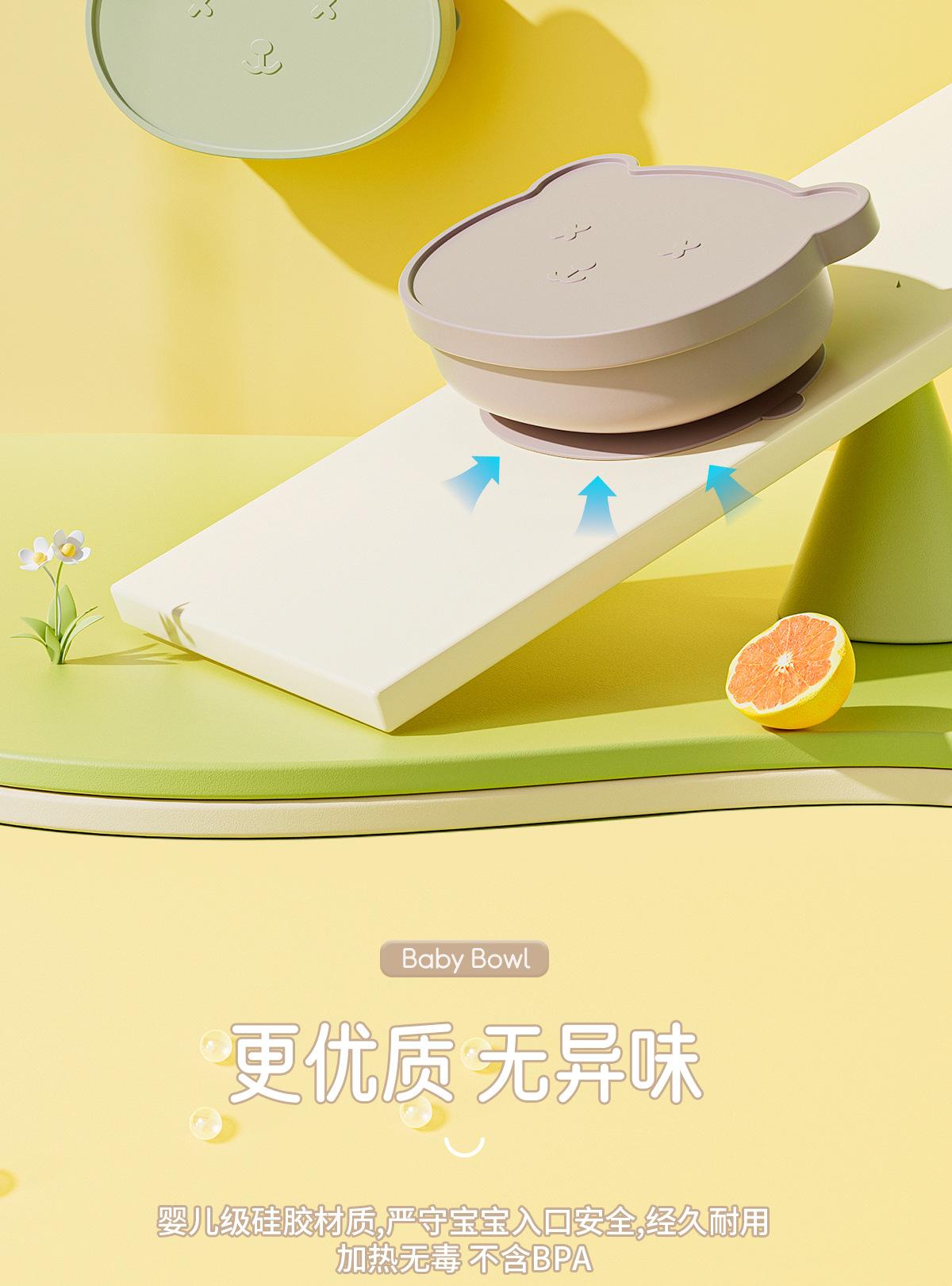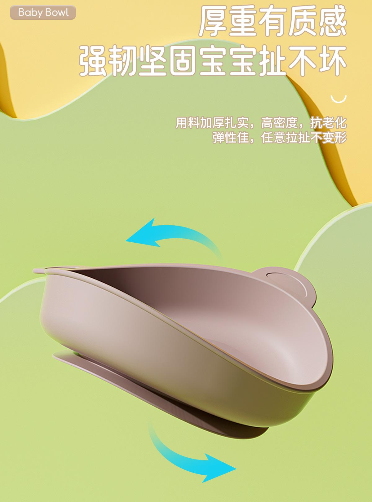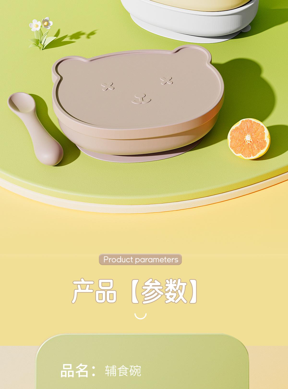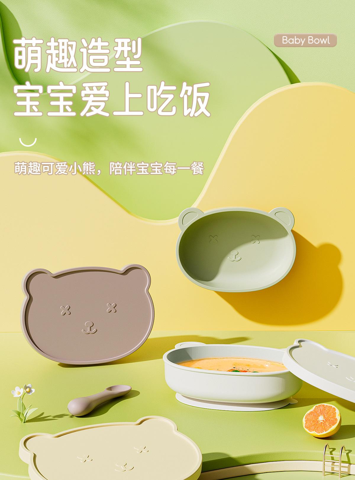 Tazón de Comida de Silicona para Bebé Coreano Tazón de Oso de Dibujos Animados con Tapa Vajilla de Alimentación con Ventosa Integrada Anti-Caída para Niños