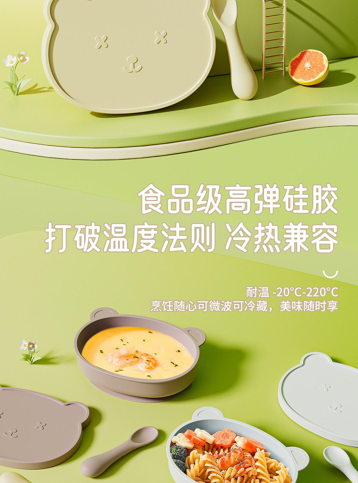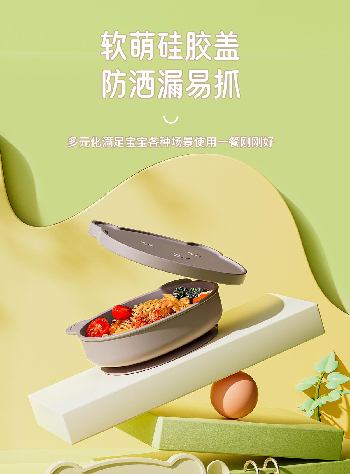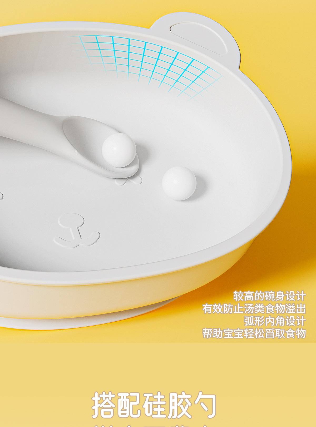 Tazón de Comida de Silicona para Bebé Coreano Tazón de Oso de Dibujos Animados con Tapa Vajilla de Alimentación con Ventosa Integrada Anti-Caída para Niños