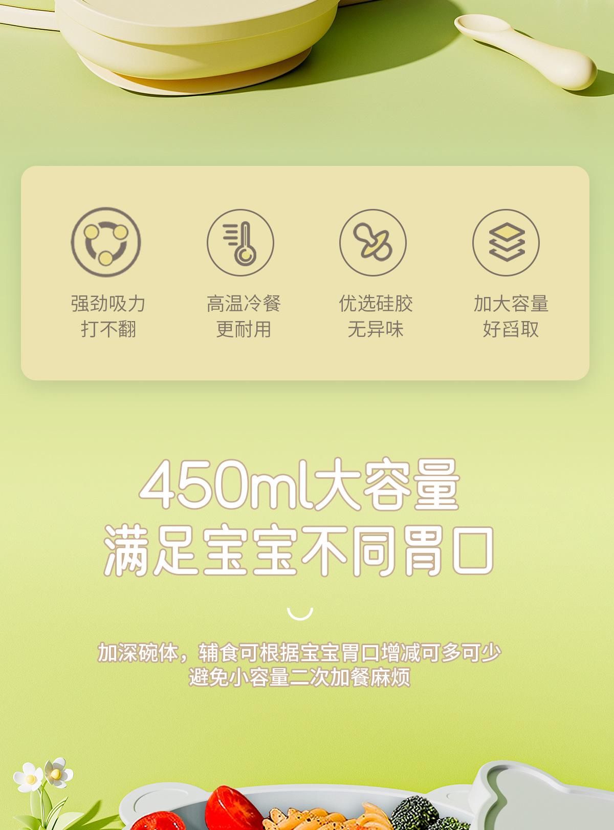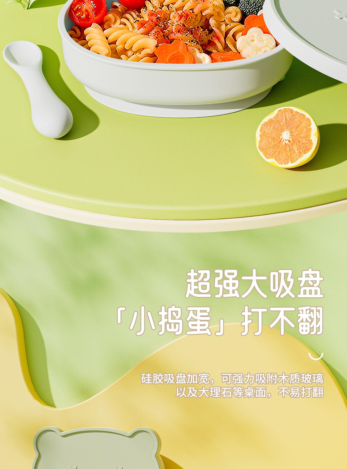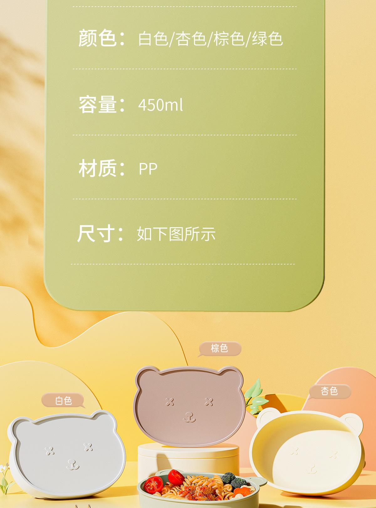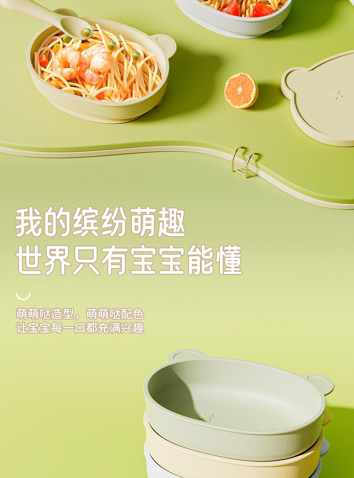 Tazón de Comida de Silicona para Bebé Coreano Tazón de Oso de Dibujos Animados con Tapa Vajilla de Alimentación con Ventosa Integrada Anti-Caída para Niños
