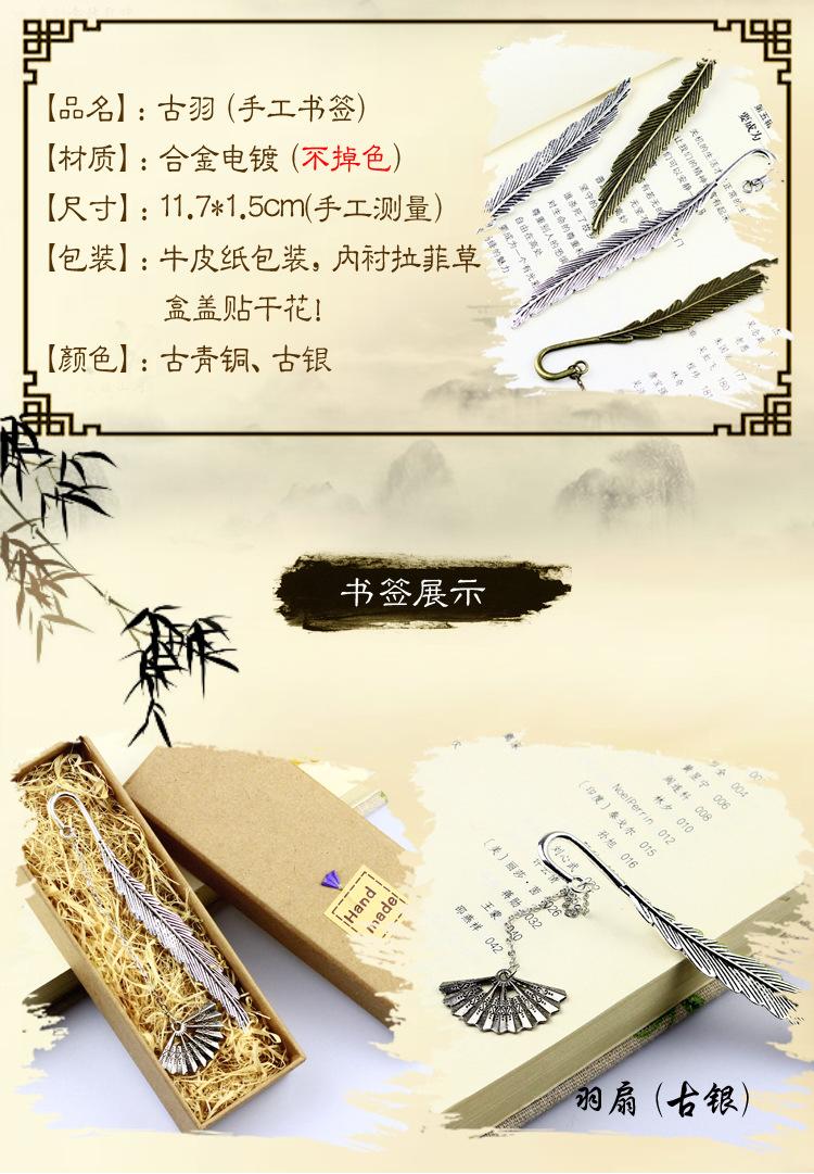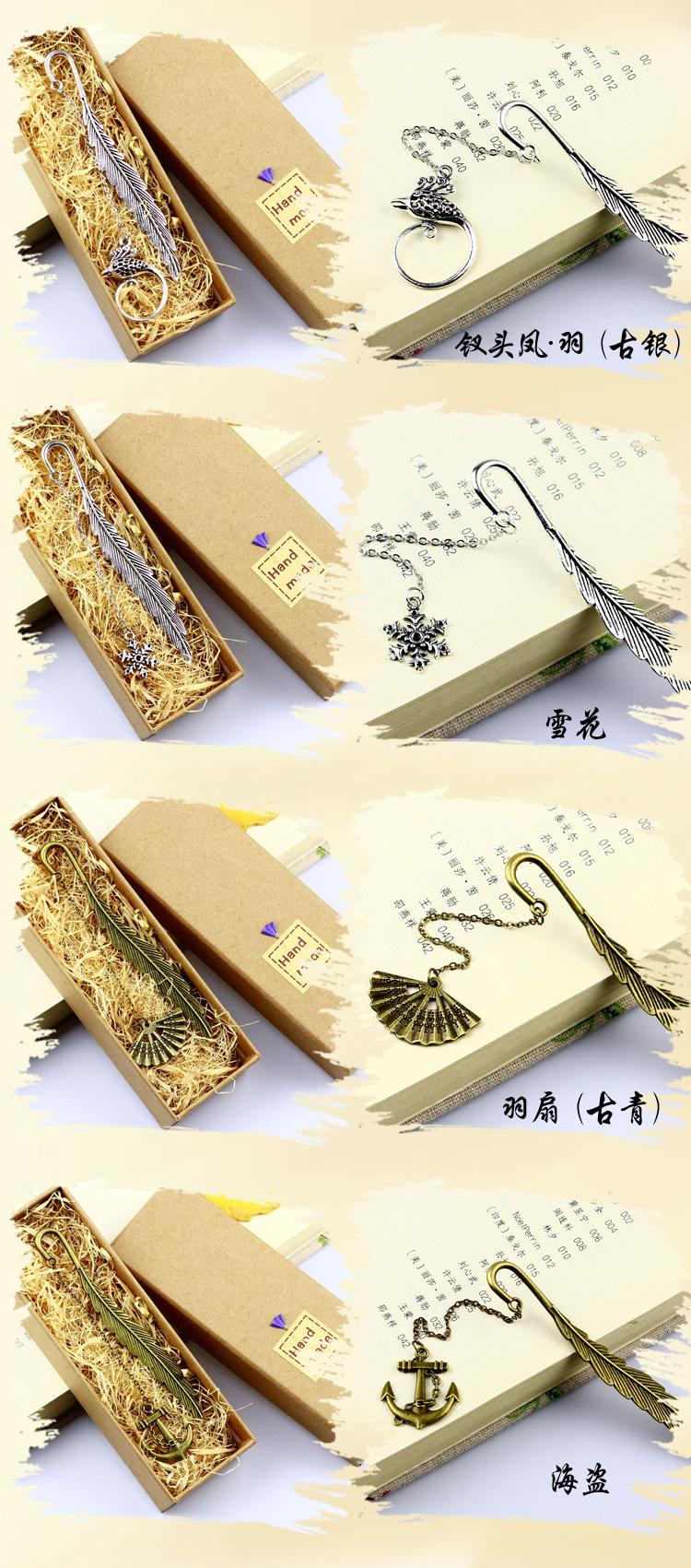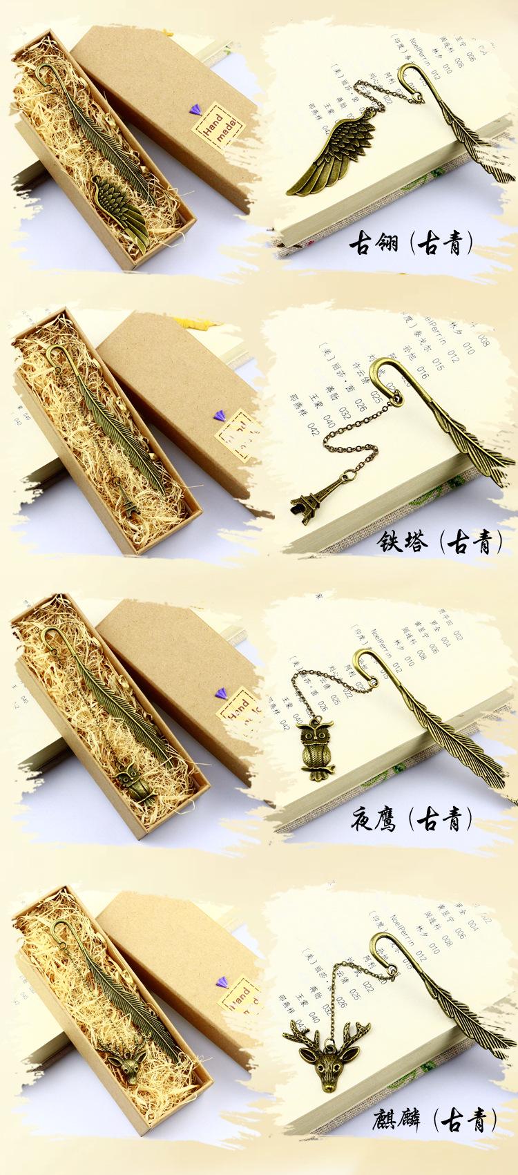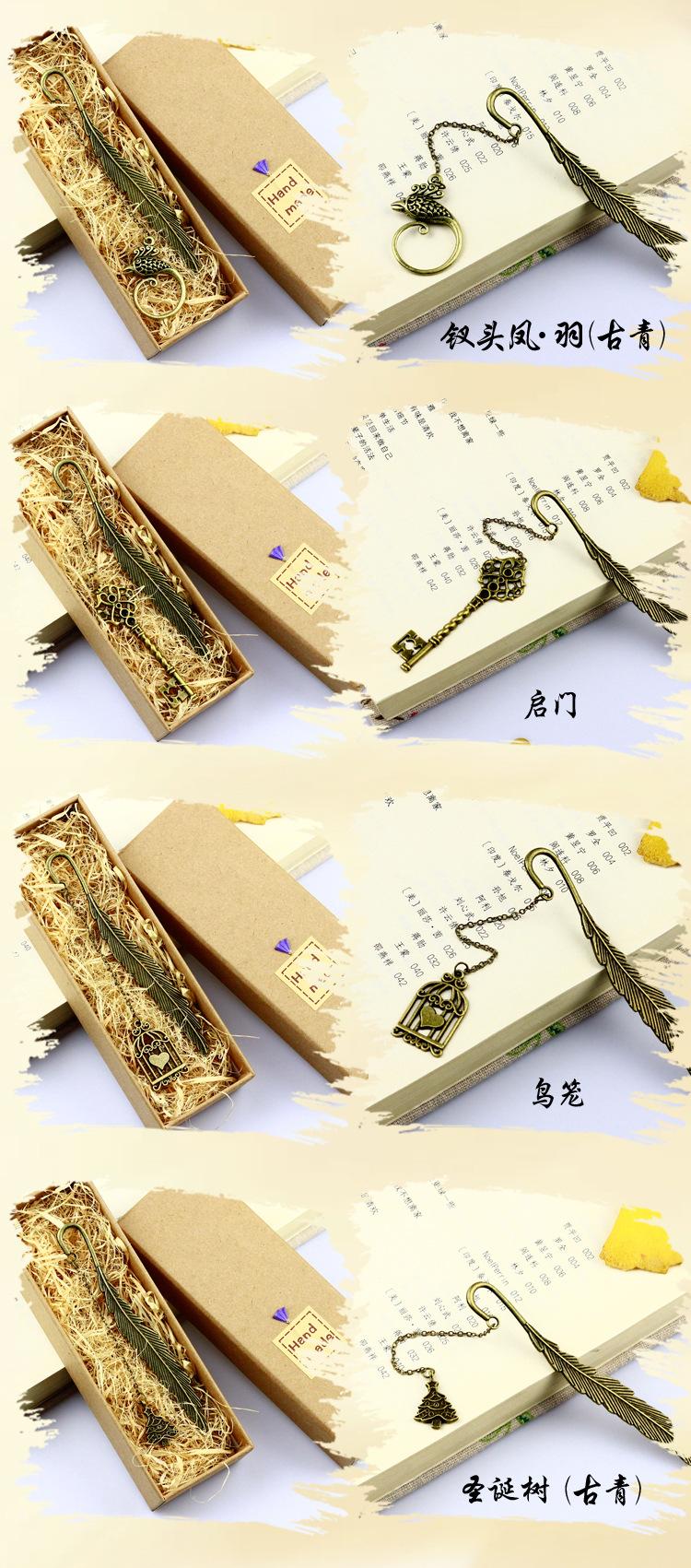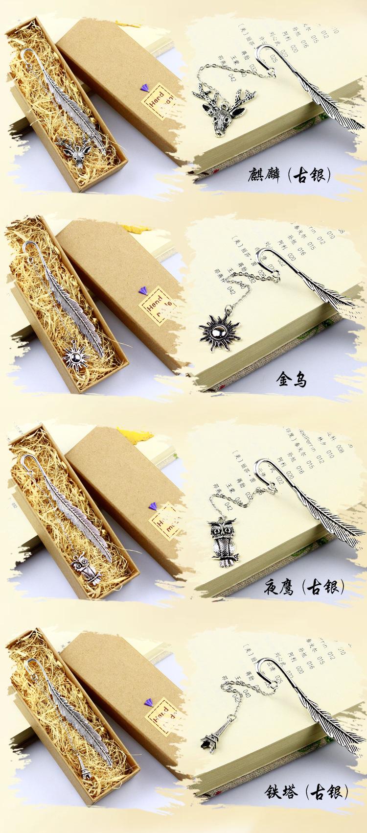 Marcador de Pluma de Metal para Comercio Exterior Antiguo Creativo Retro Estilo Chino Clásico Regalo Caja de Regalo para Estudiantes