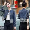 Chaqueta de mezclilla para mujer 2025 Primavera y Otoño Nueva Moda Estilo Coreano Versátil Cuello Alto Casual Guapa Chaqueta Corta Spandex