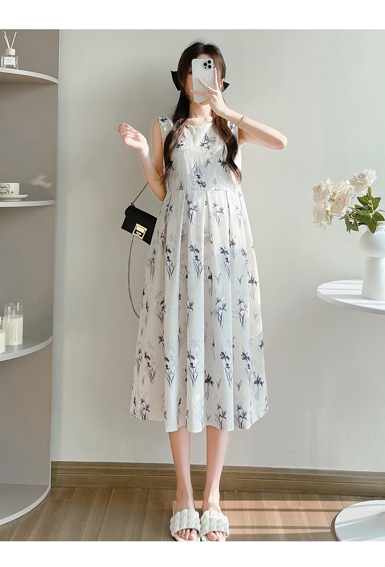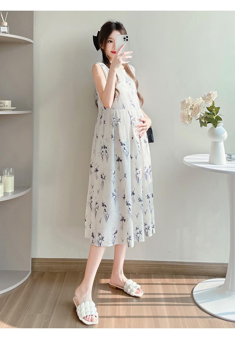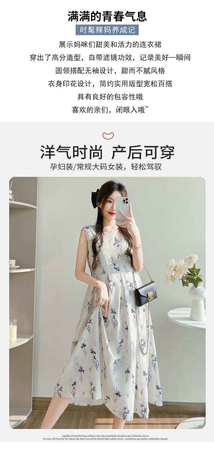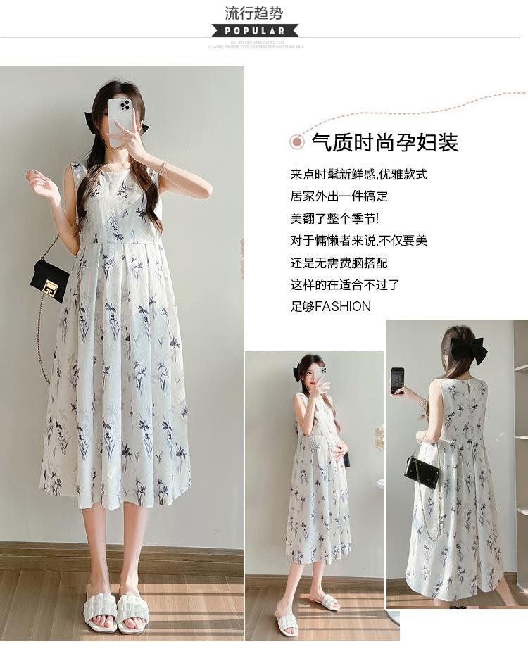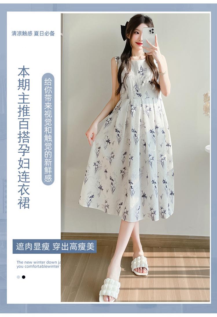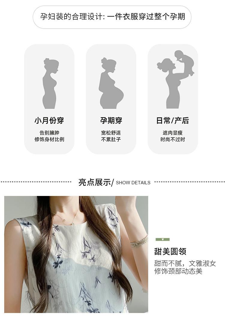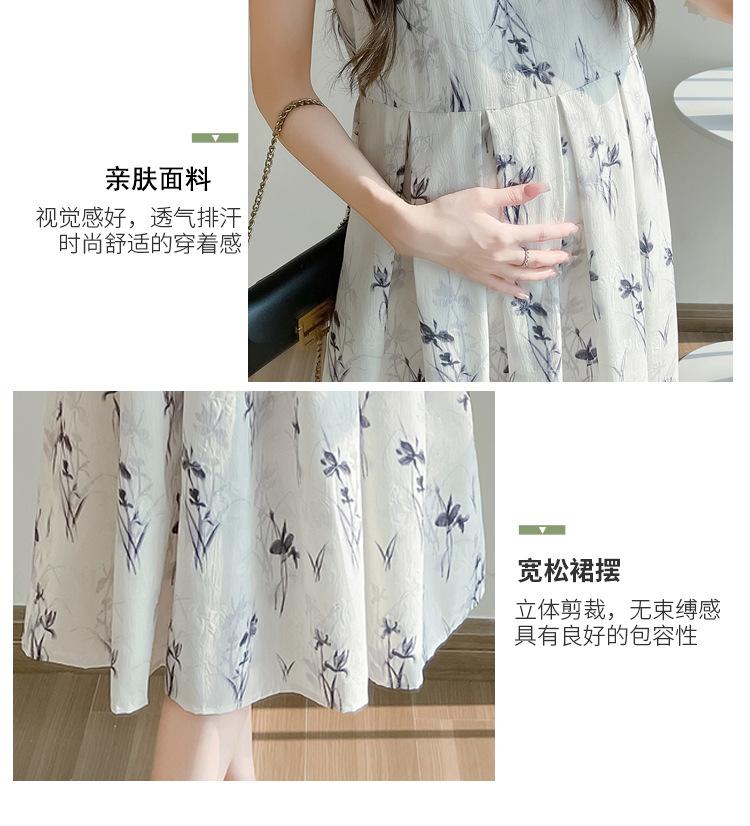 Maternidad 2024 Verano Nuevo Dulce Moda Pequeño Fresco Jacquard Nuevo Chino Suelto Talla Grande Vestido Mujeres Embarazadas