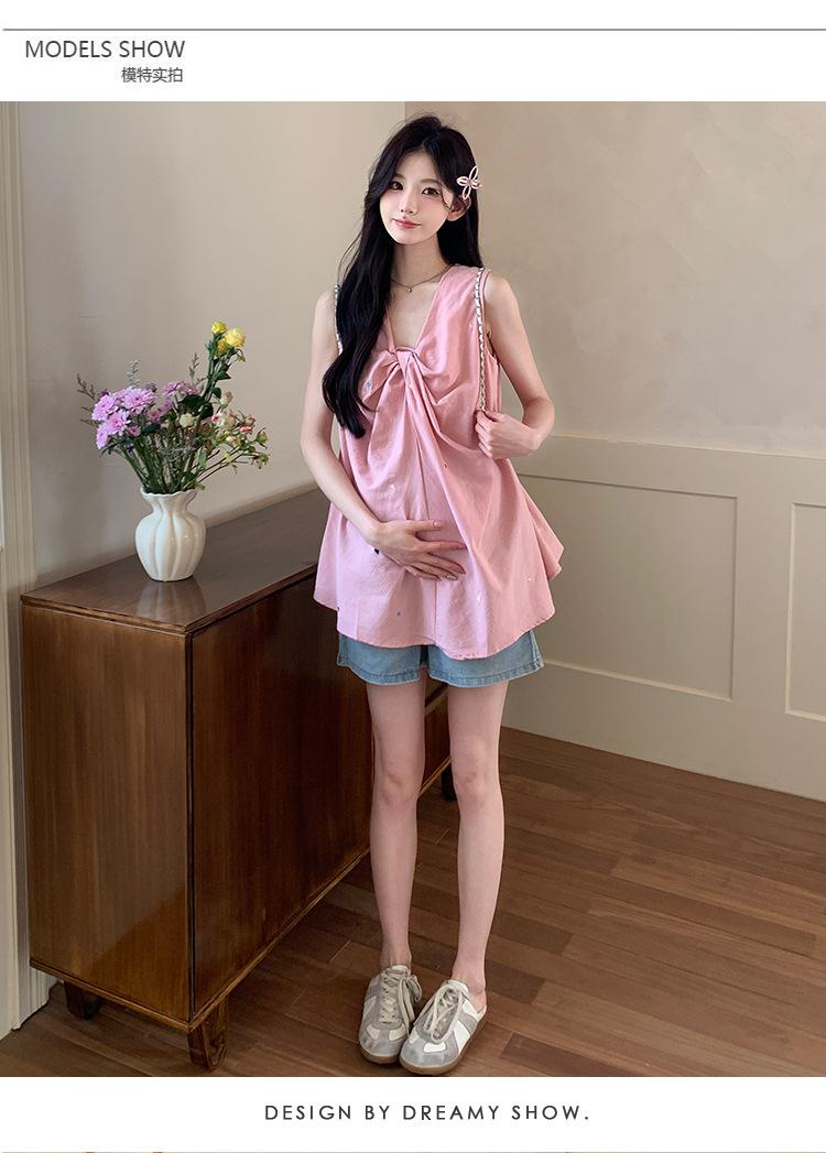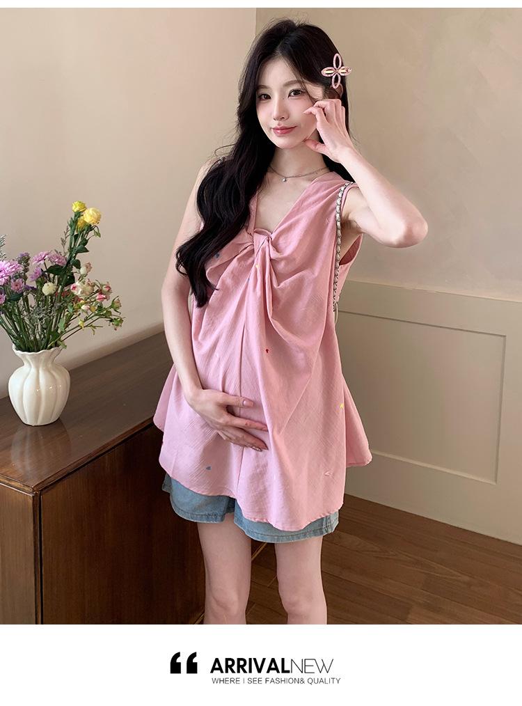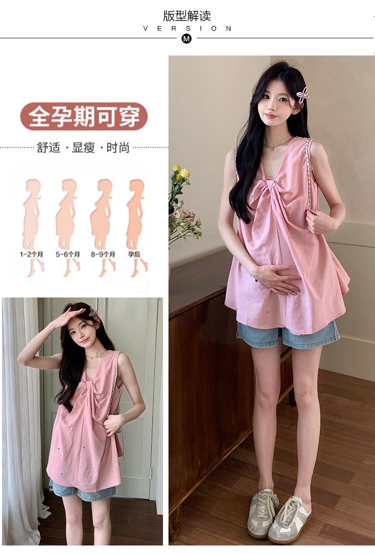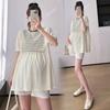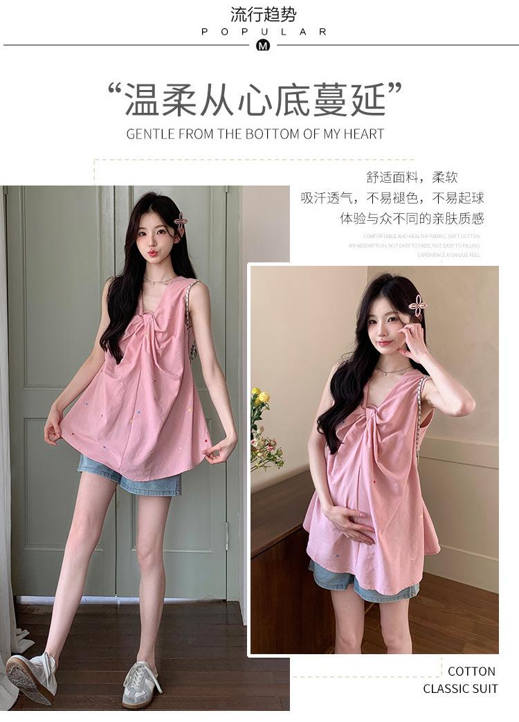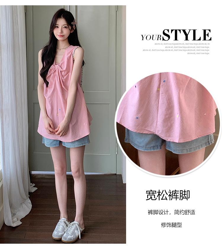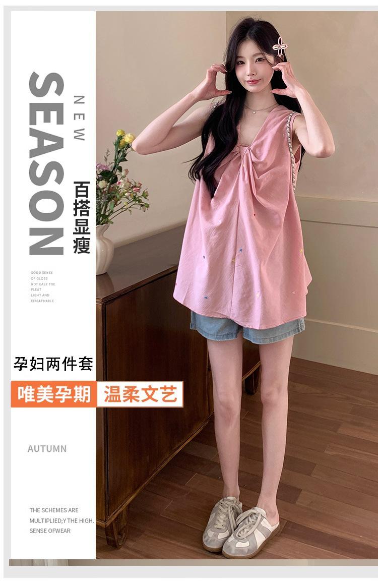 Maternidad 2025 Verano Nuevo Dulce Top Bordado + Shorts de Mezclilla Abdominales Conjunto de Dos Piezas Traje para Mujeres Embarazadas