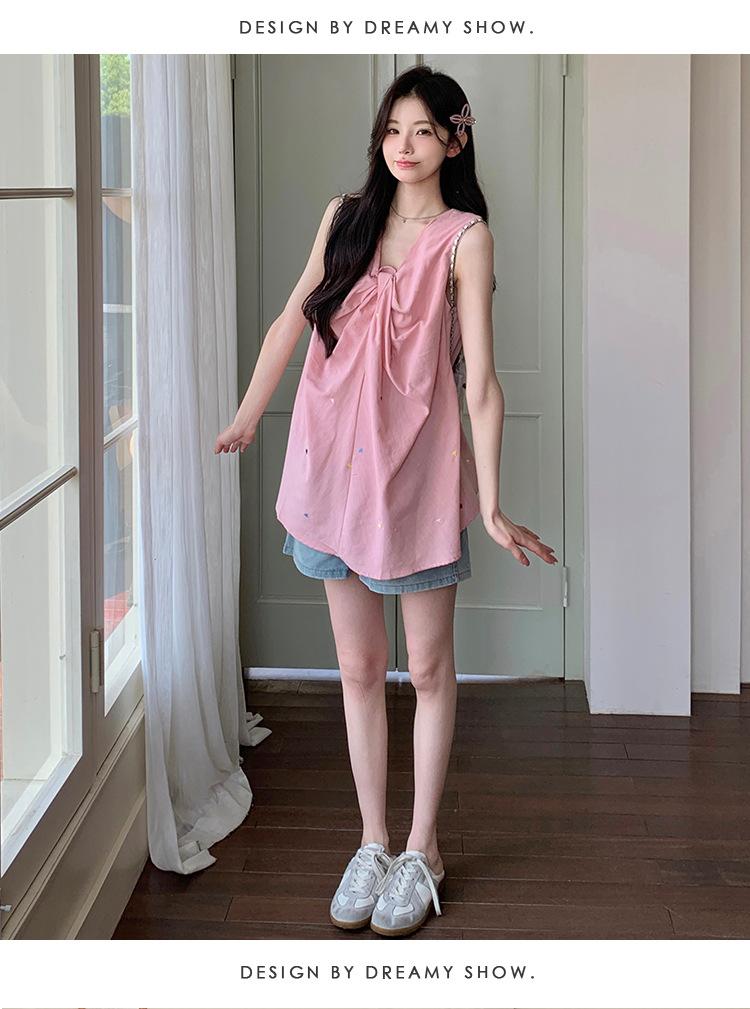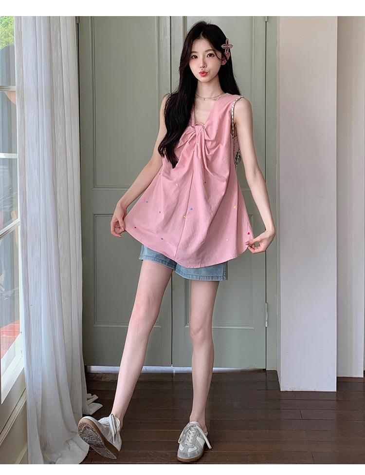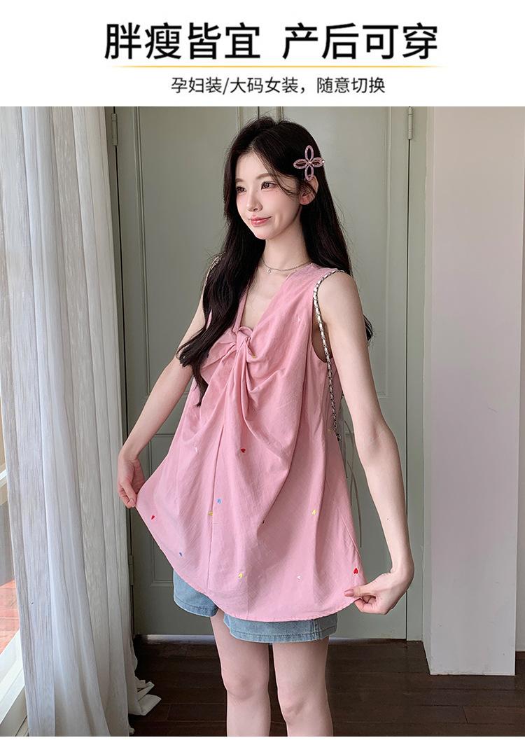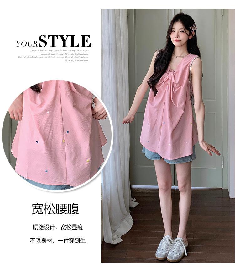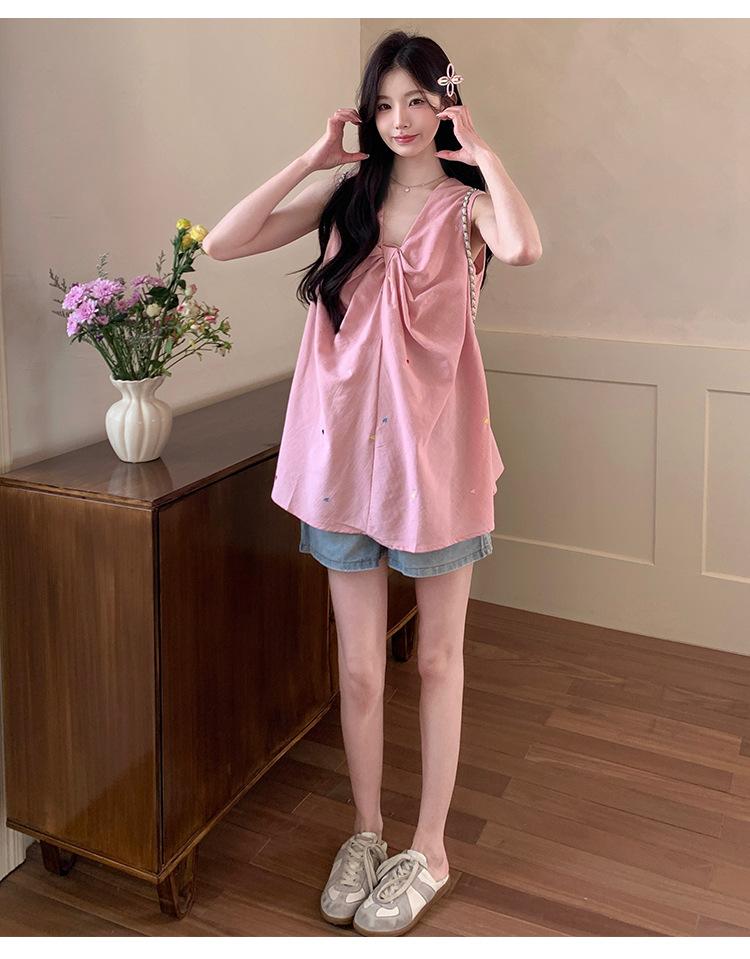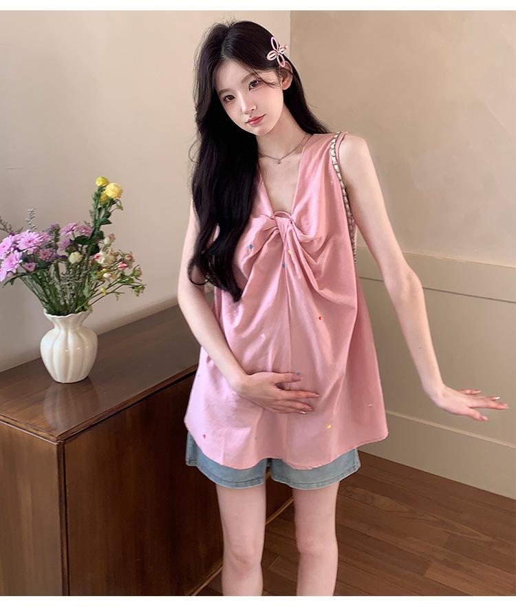 Maternidad 2025 Verano Nuevo Dulce Top Bordado + Shorts de Mezclilla Abdominales Conjunto de Dos Piezas Traje para Mujeres Embarazadas