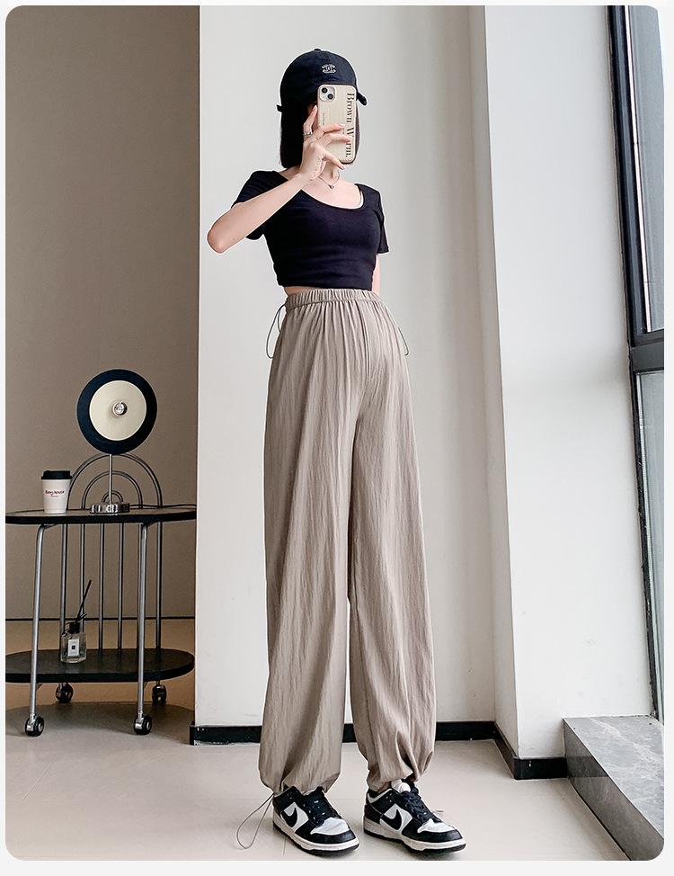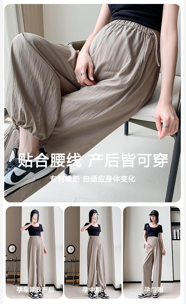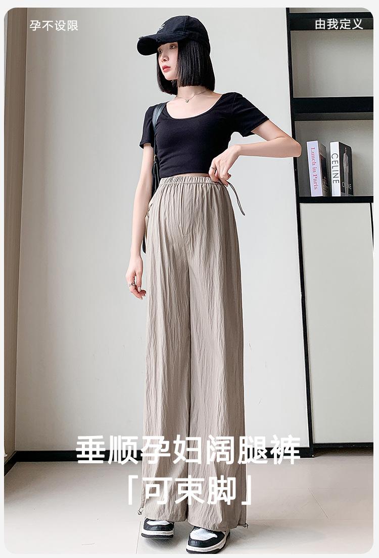 Pantalones de Maternidad 2025 Verano Nuevo Estilo Coreano Moda Cordón Sin Vientre Recto Ropa Exterior Pantalones Yamamoto Casuales Pierna Ancha