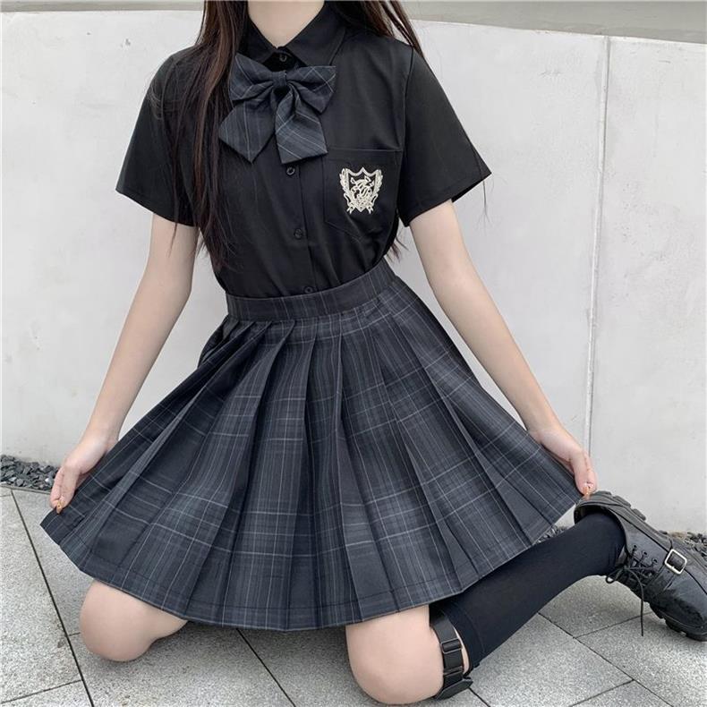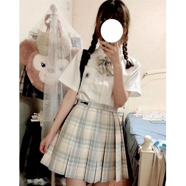 Falda de Uniforme Jk de Corte Suave de Una Pieza Falda de Cuadros Auténtica Conjunto Completo Estilo Universitario Original Japonés Falda Plisada de Verano Conjunto de Falda Corta