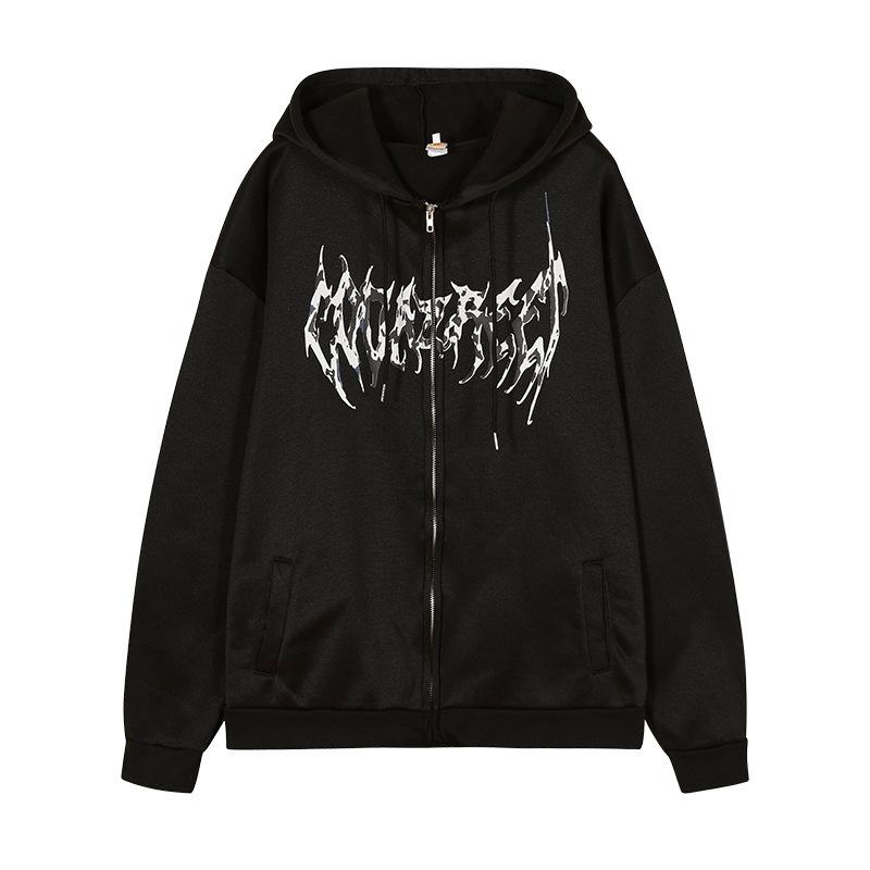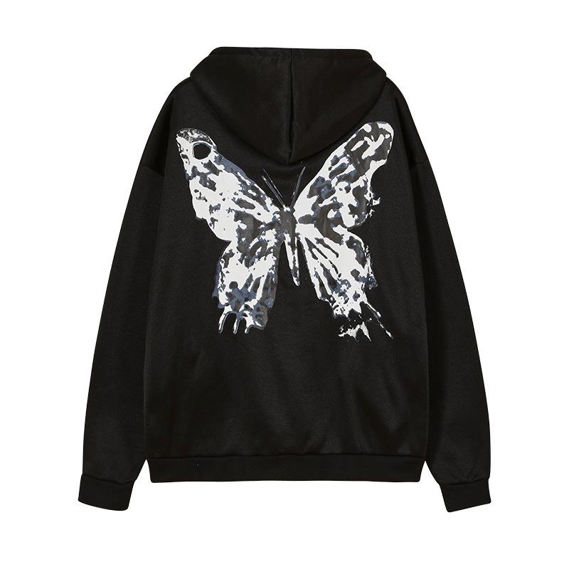 2025 Otoño Nuevo Estilo Urbano Sudadera Cárdigan de Felpa con Capucha y Cierre de Cremallera Estampado de Letras Mariposa para Mujer