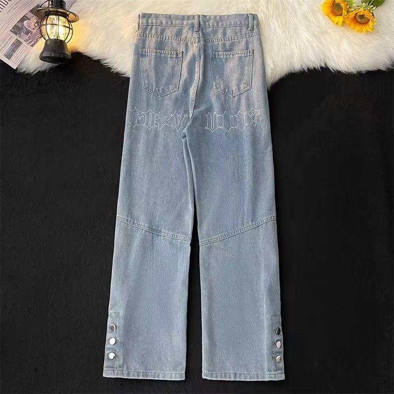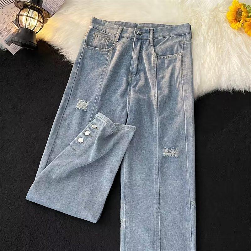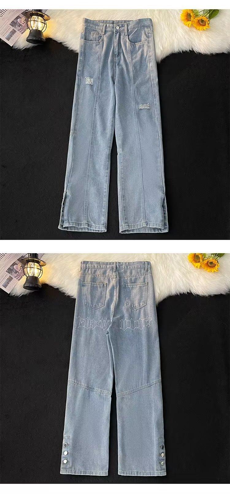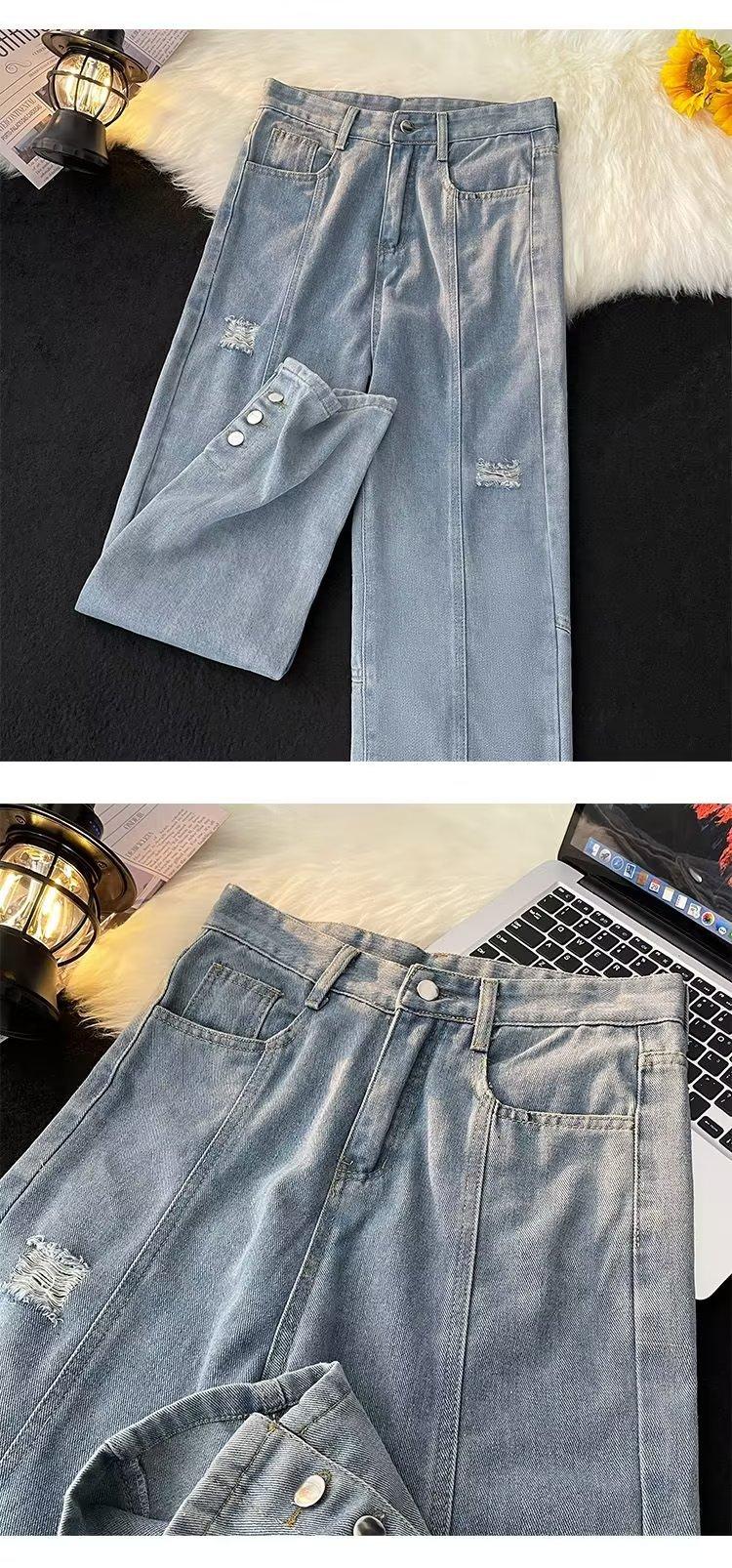 Jeans rectos abotonados para hombre otoño ins Americano lavado rasgado pantalones Ruan Shuai marca de moda pantalones sueltos de pierna ancha