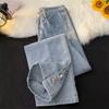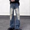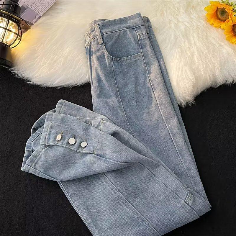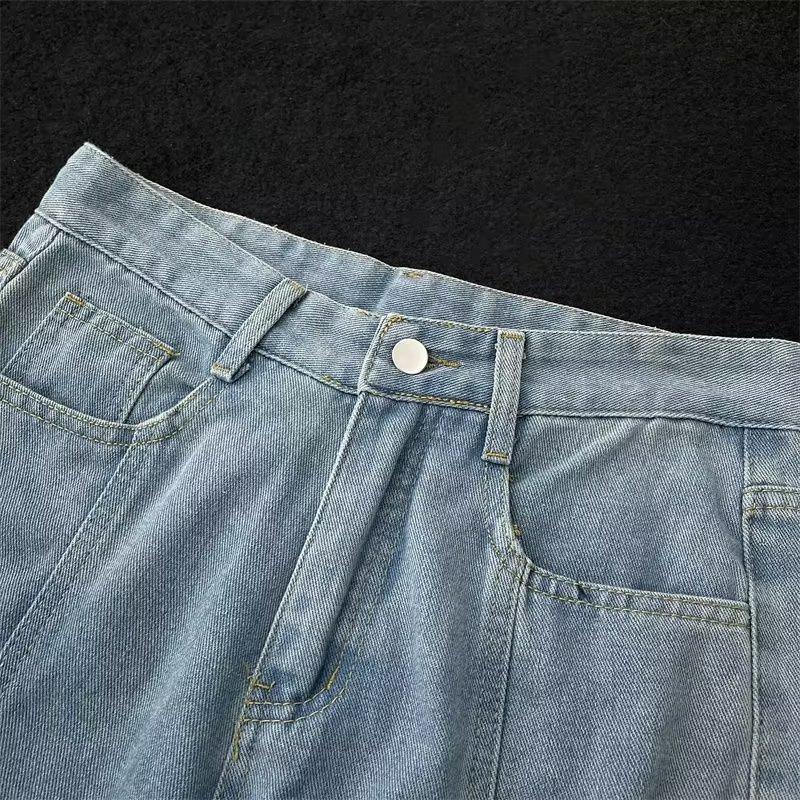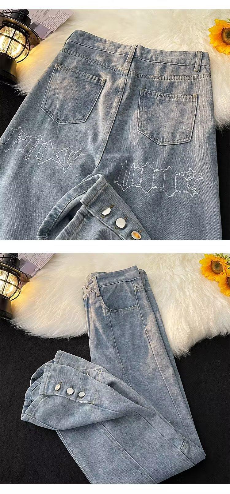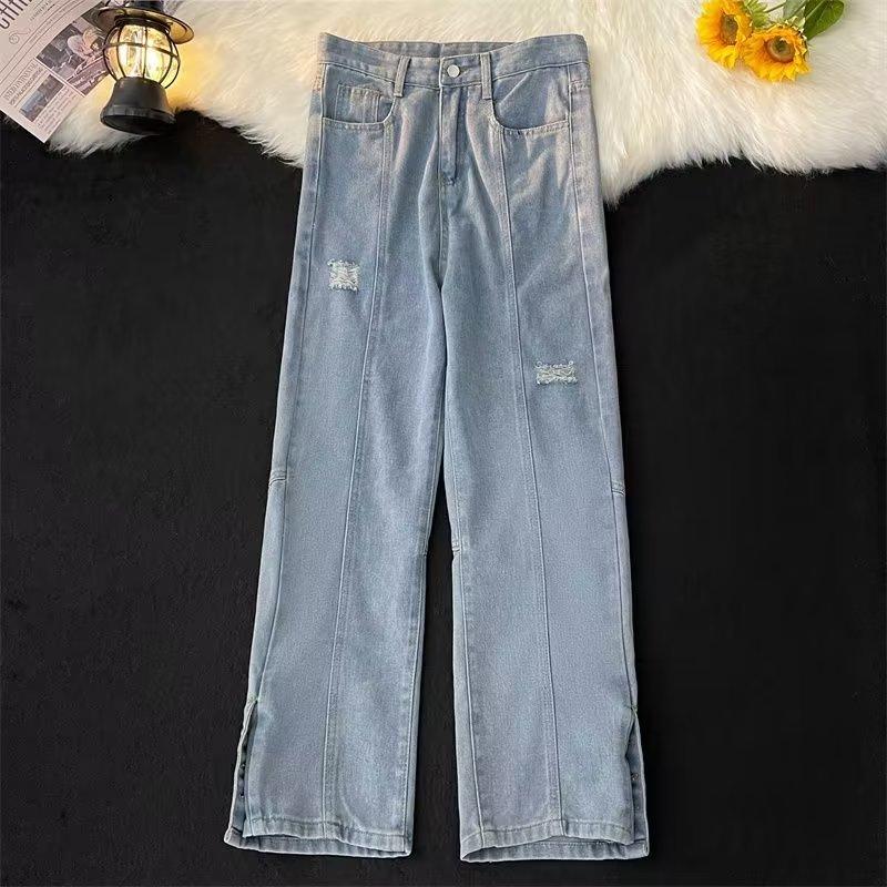 Jeans rectos abotonados para hombre otoño ins Americano lavado rasgado pantalones Ruan Shuai marca de moda pantalones sueltos de pierna ancha