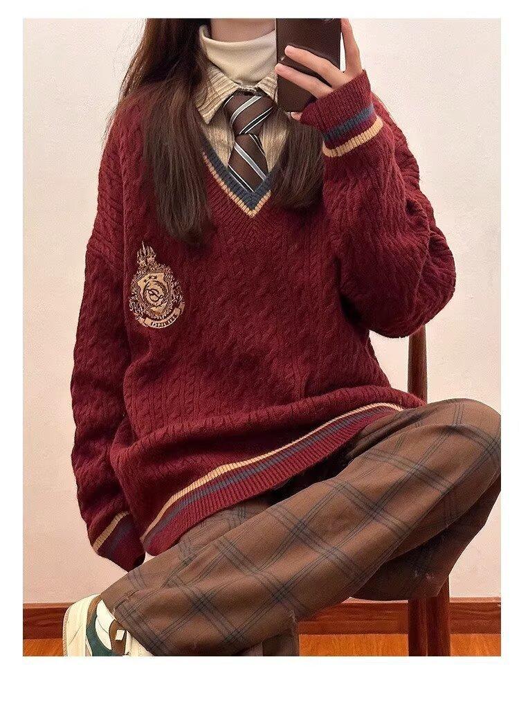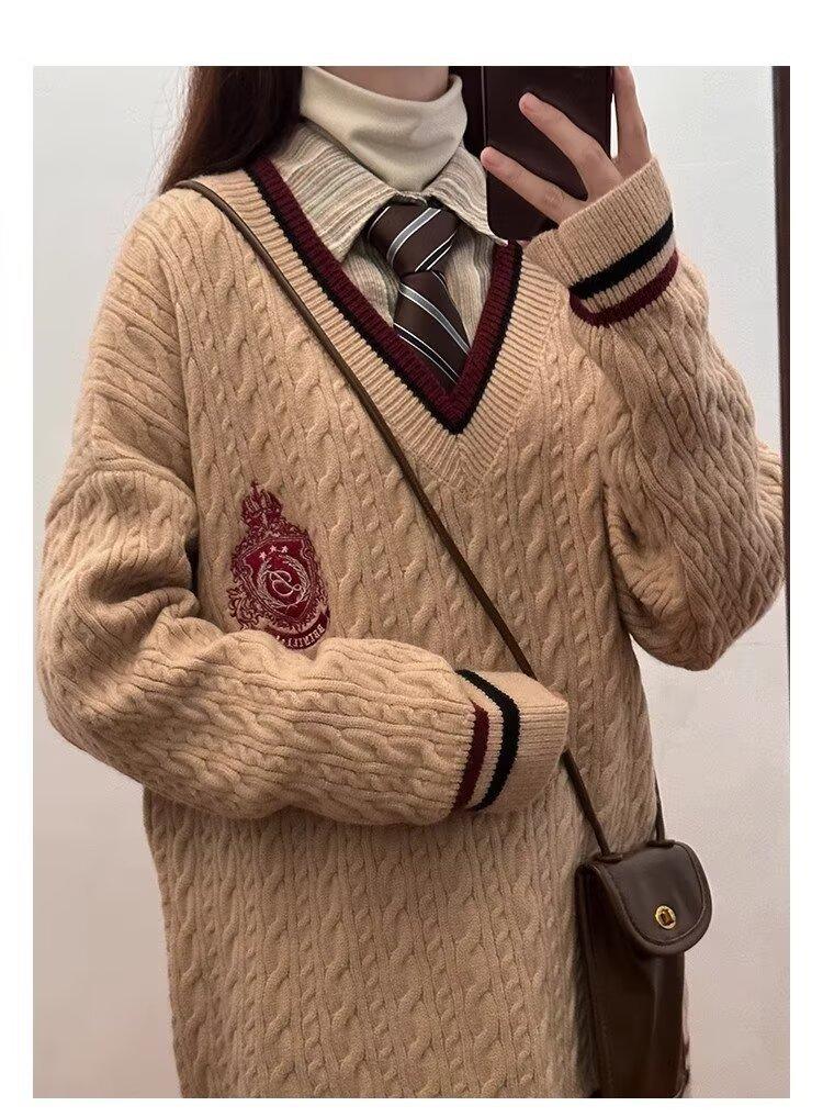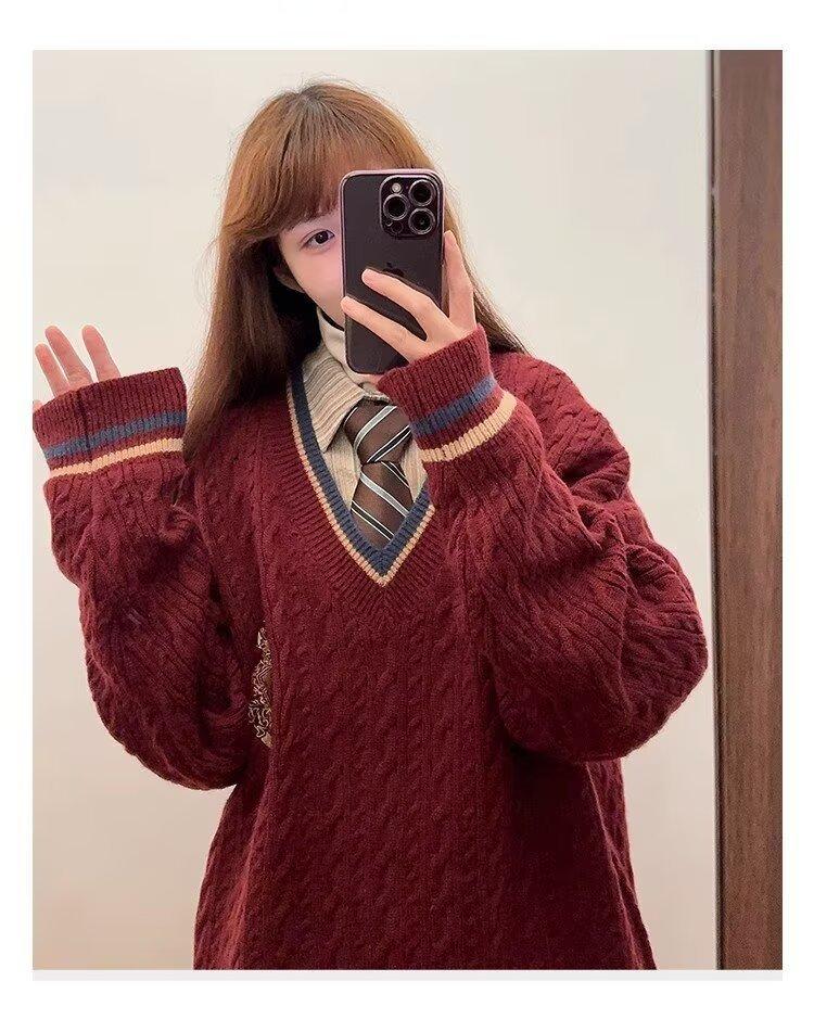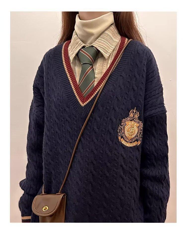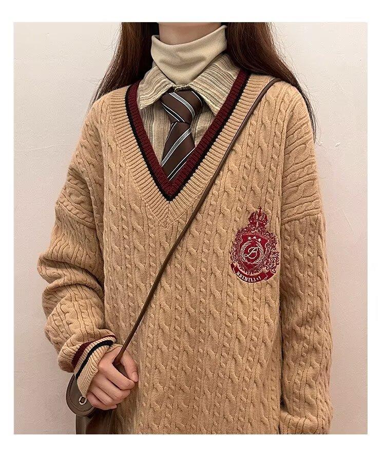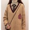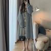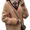 Abrigo Cárdigan Suéter Cuello en V Estilo Universitario para Mujer Largo Medio Primavera y Otoño Ropa Exterior Nueva 2024 Estilo Holgado Perezoso Estilo Coreano