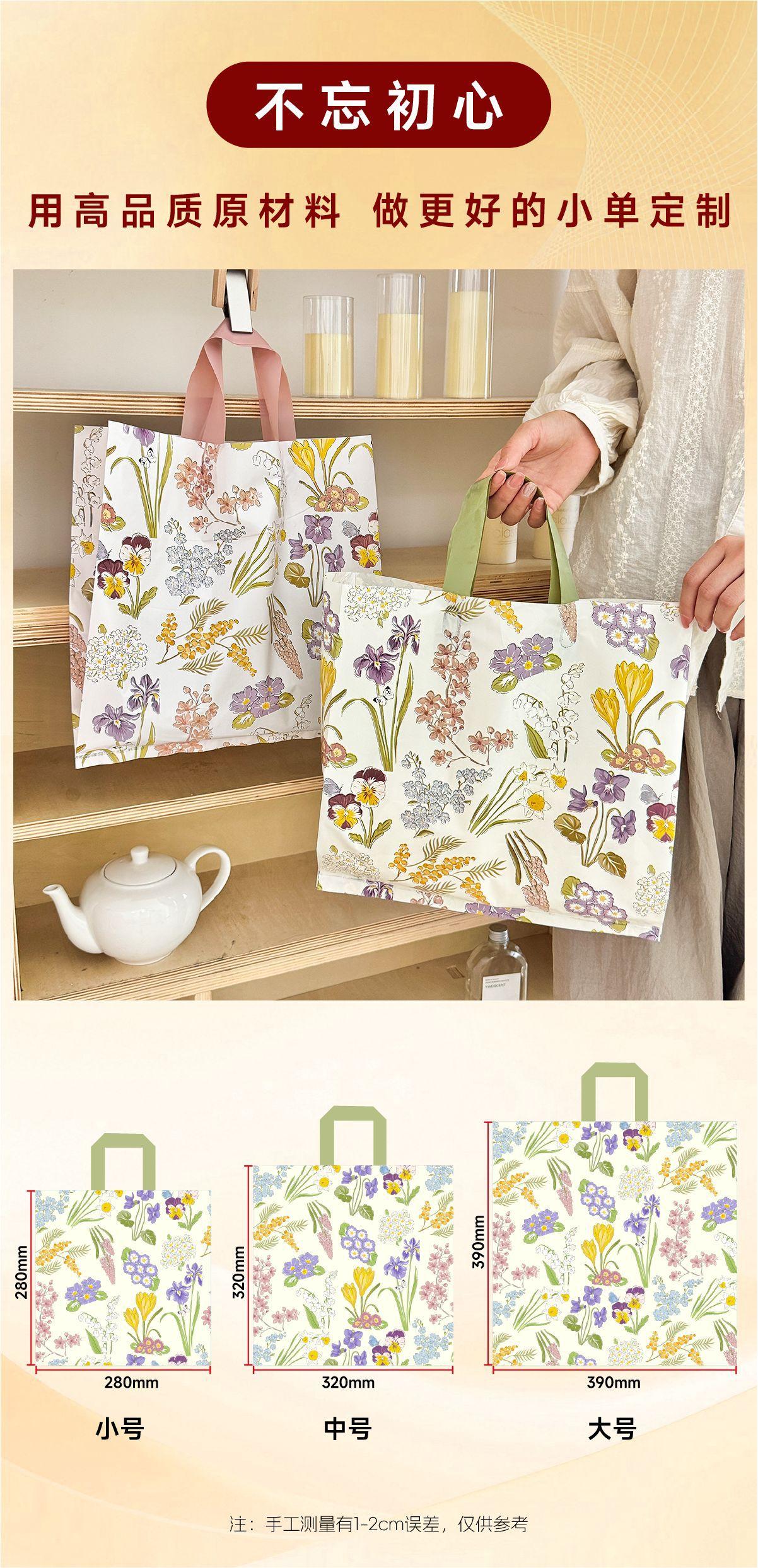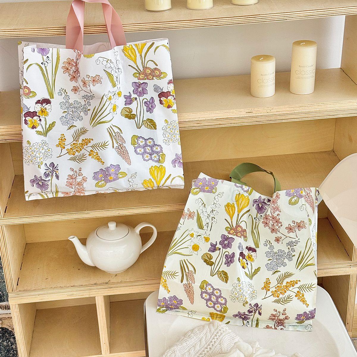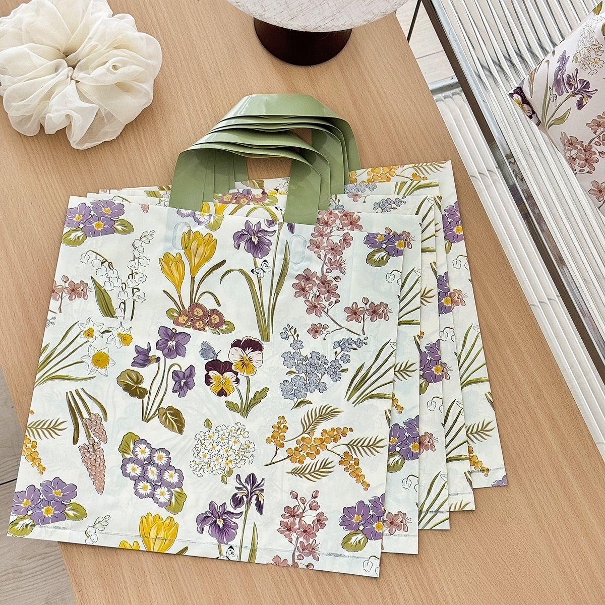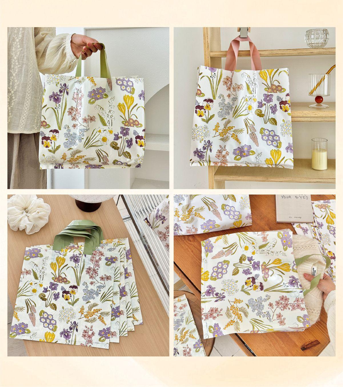 Bolsa tote para tienda de ropa estilo Flowers, bolsa de embalaje, bolsa de regalo para tienda de ropa de mujer, bolsa de plástico para compras de ropa al por mayor