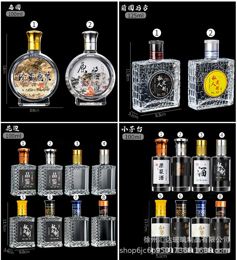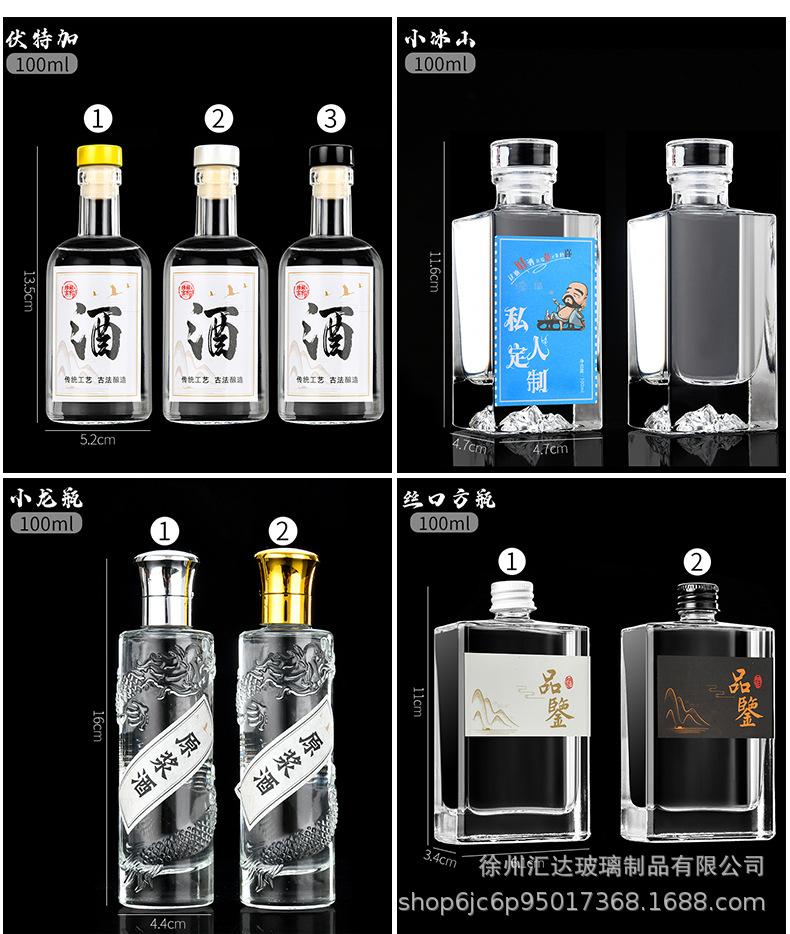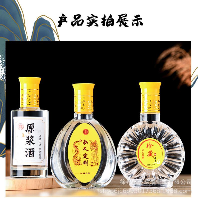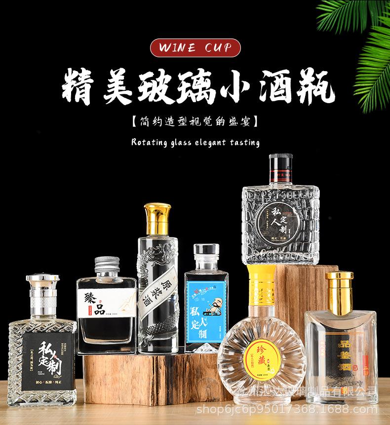 Venta al por mayor Botella de Licor de Vidrio de 100 ml Botella de Vino para el Cuidado de la Salud 125 ml Vodka Botella de Vino Pequeña Dos Libras Sub-Embotellado Se Puede Imprimir