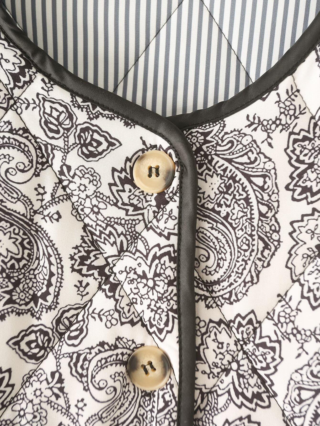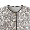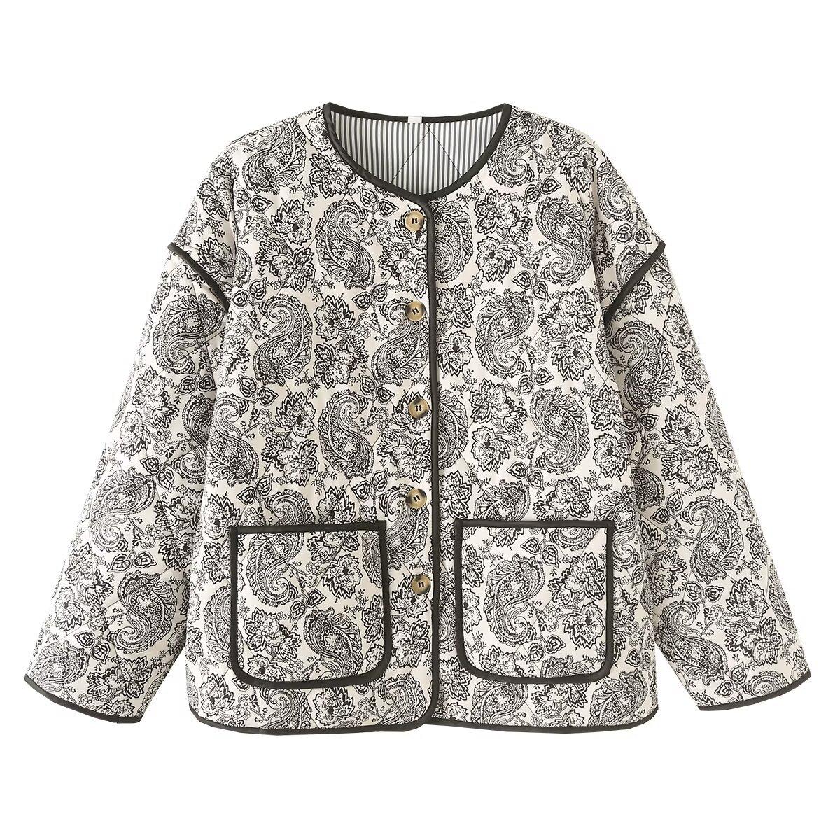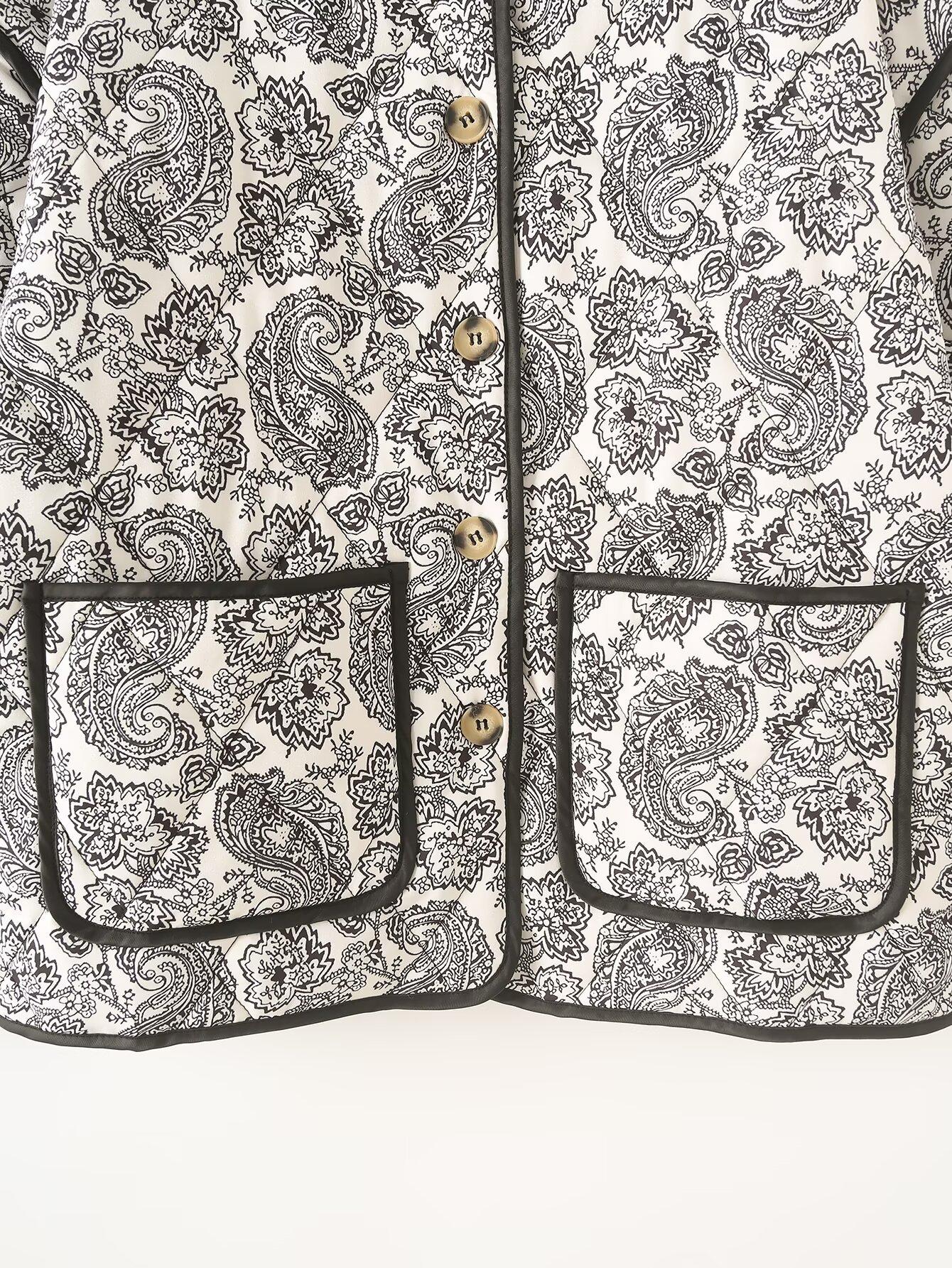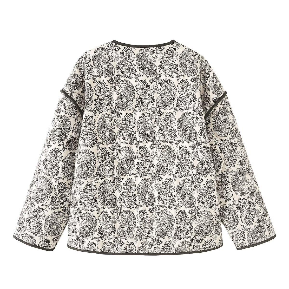 Ropa de Mujer Transfronteriza 2024 Invierno Nuevo Moda Callejera Europea y Americana Estampado Color en Contraste Algodón Ropa Exterior Chaqueta de Algodón con Flores Changshu para Mujer