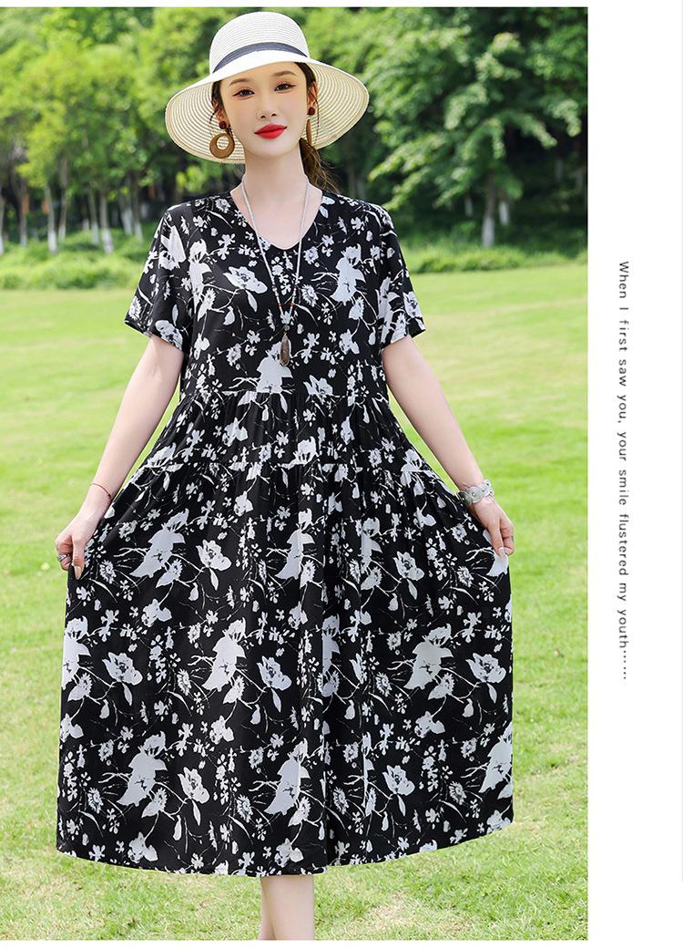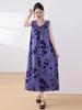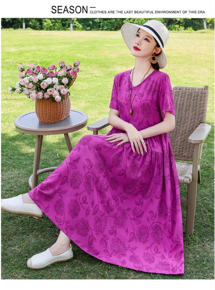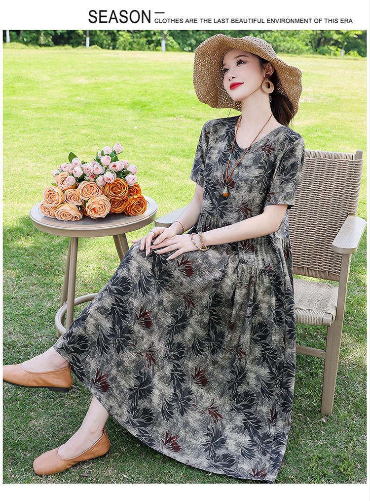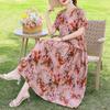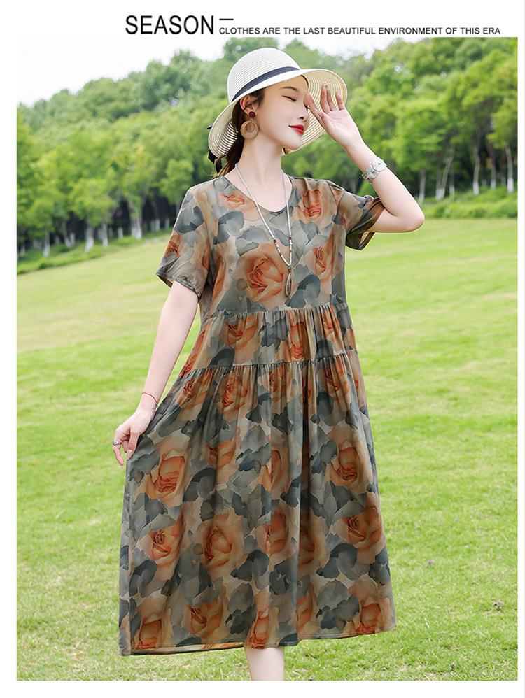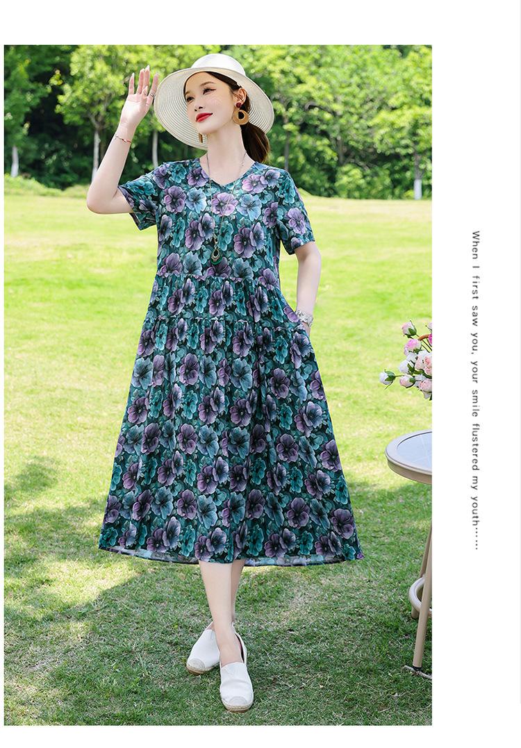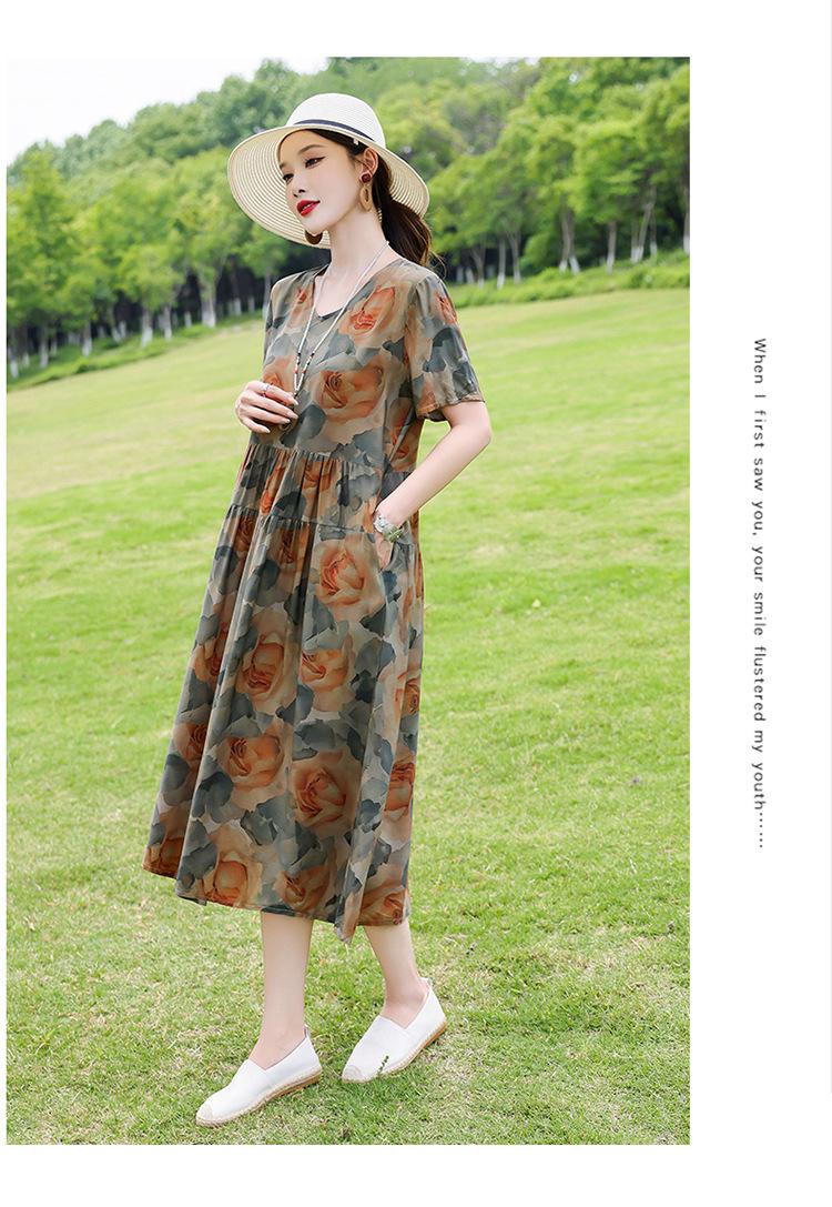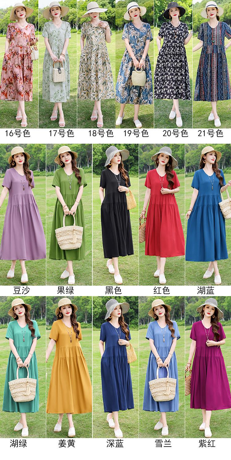 Vestido de Algodón Seda de Verano Nuevo para Mujer, Holgado y Ajustado, Madres de Mediana Edad y Mayores, Falda de Vuelo Amplio, Falda Larga con Temperamento