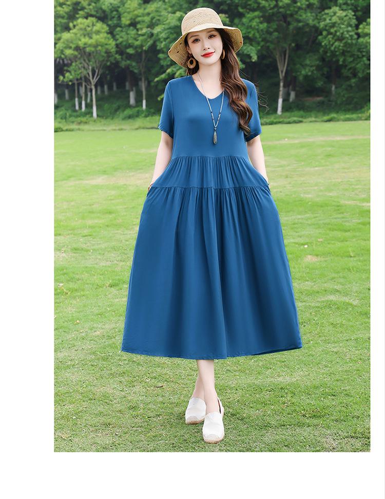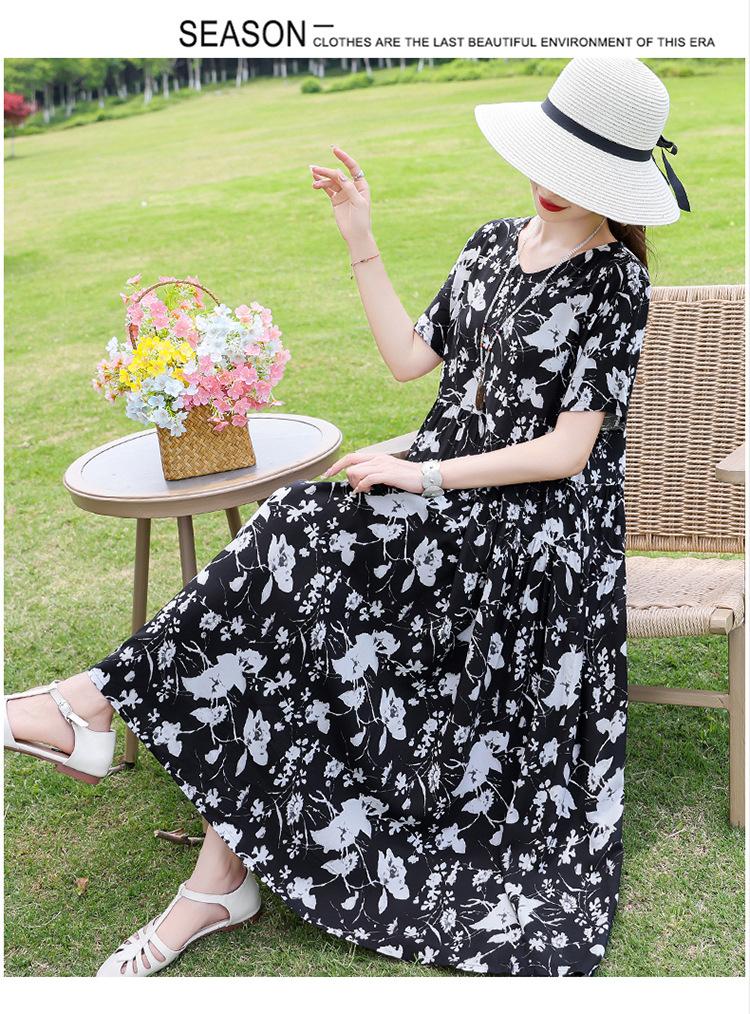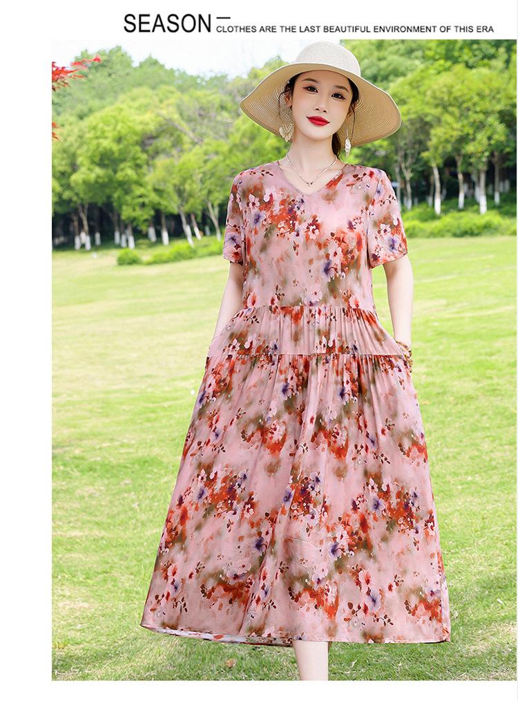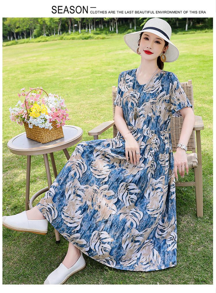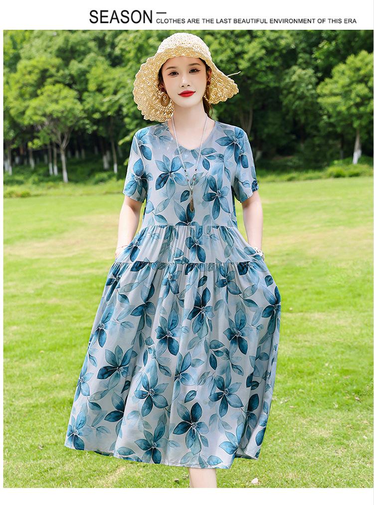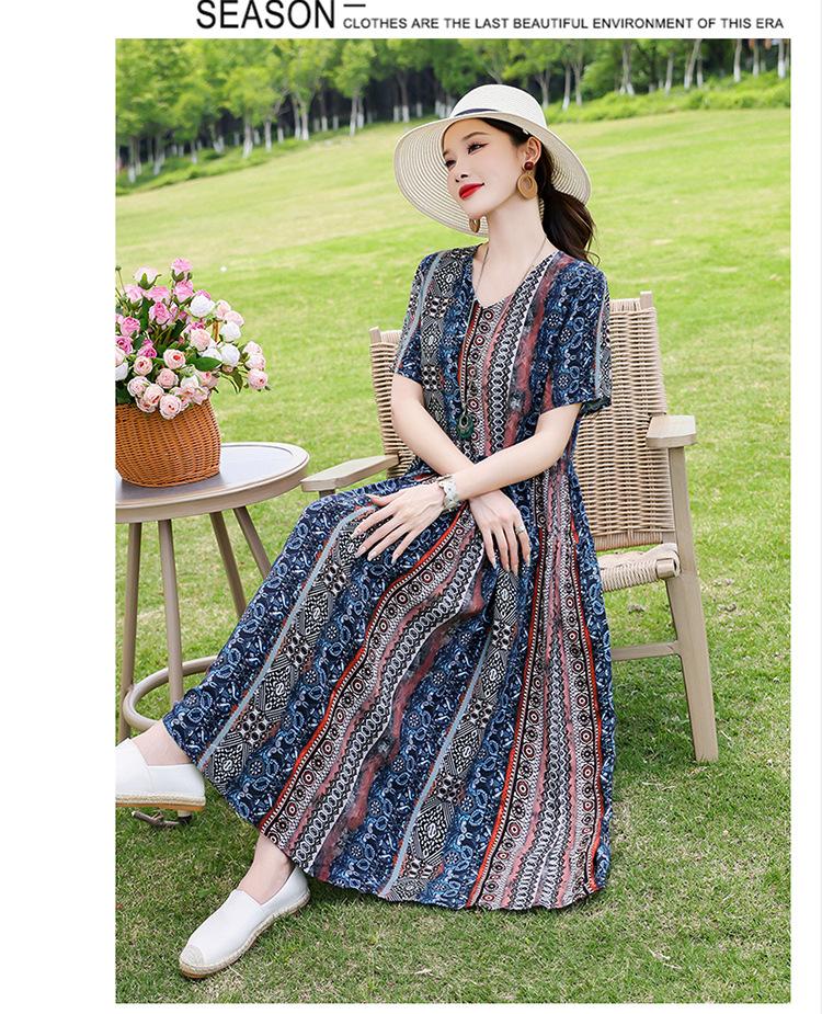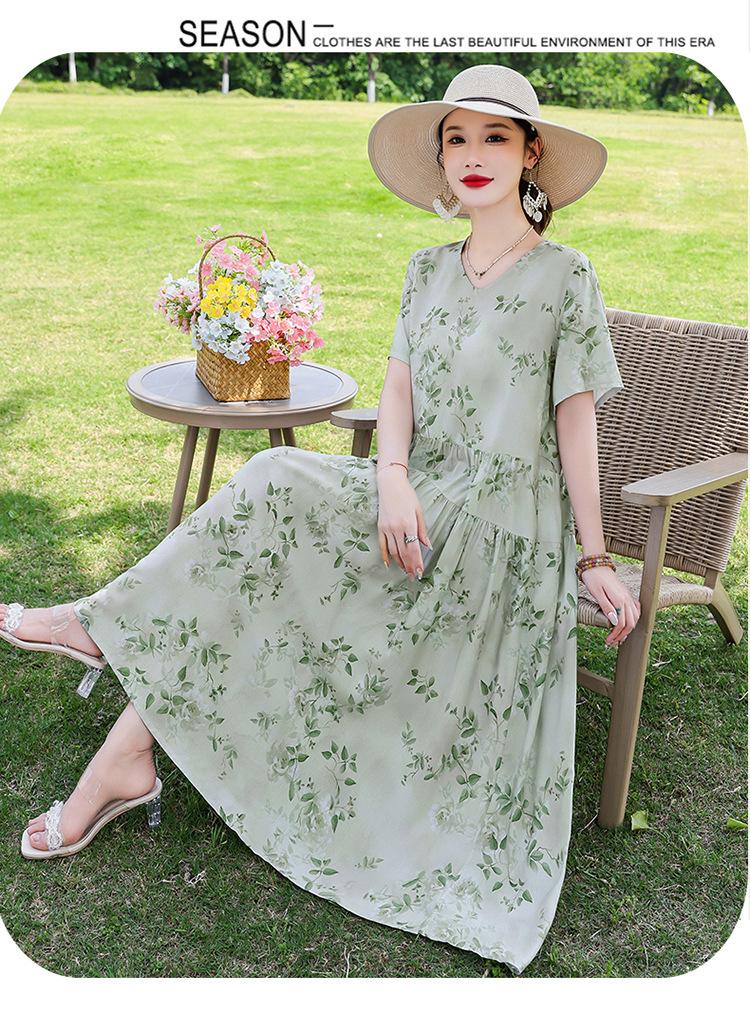 Vestido de Algodón Seda de Verano Nuevo para Mujer, Holgado y Ajustado, Madres de Mediana Edad y Mayores, Falda de Vuelo Amplio, Falda Larga con Temperamento