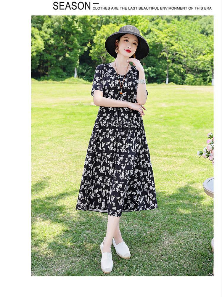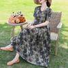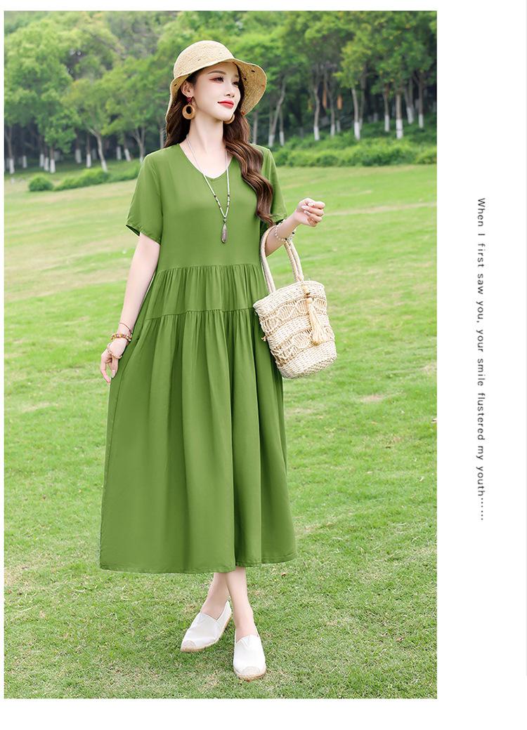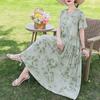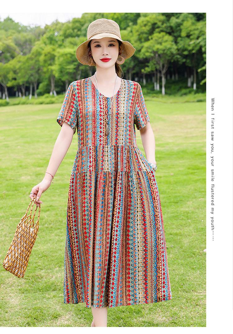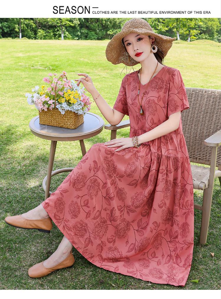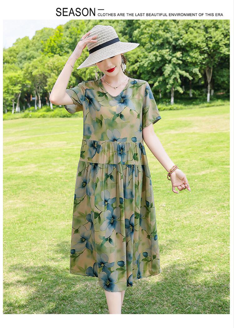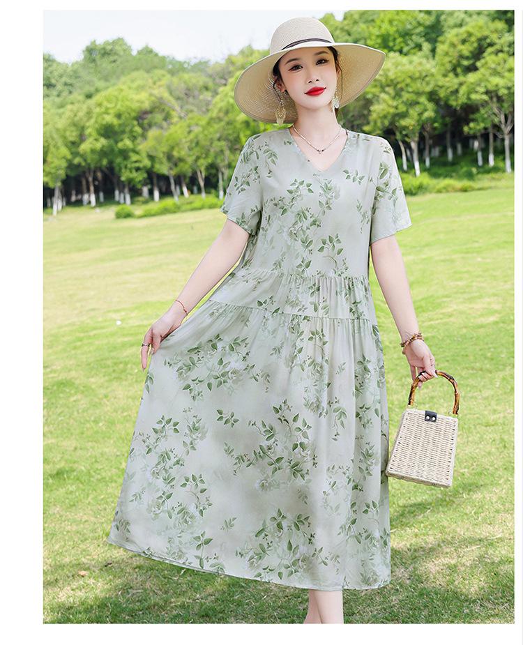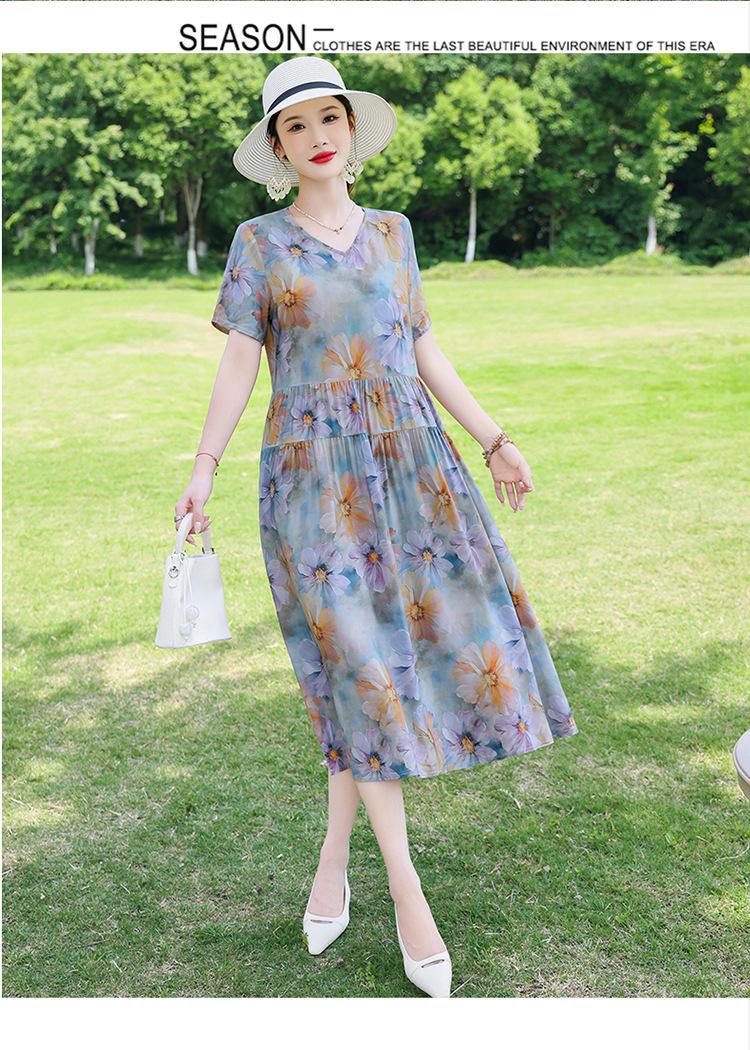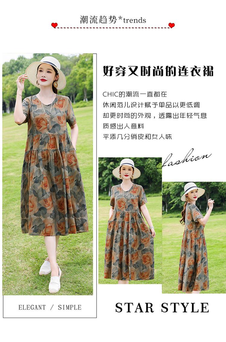 Vestido de Algodón Seda de Verano Nuevo para Mujer, Holgado y Ajustado, Madres de Mediana Edad y Mayores, Falda de Vuelo Amplio, Falda Larga con Temperamento