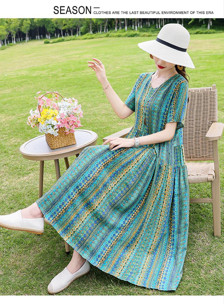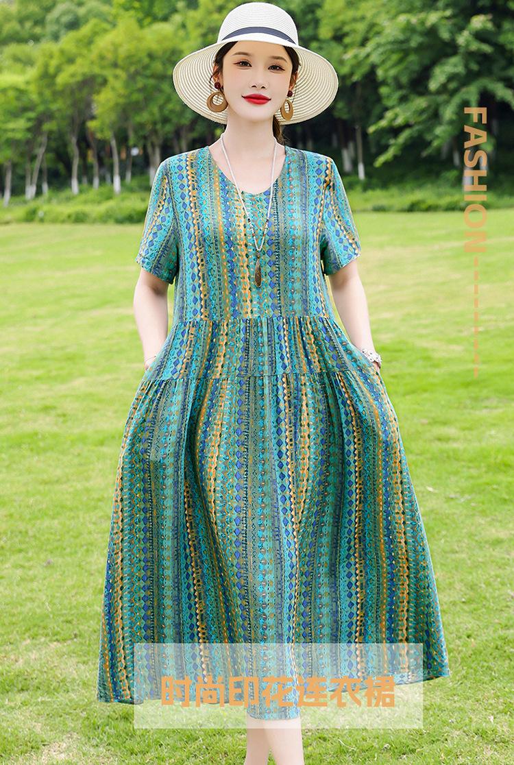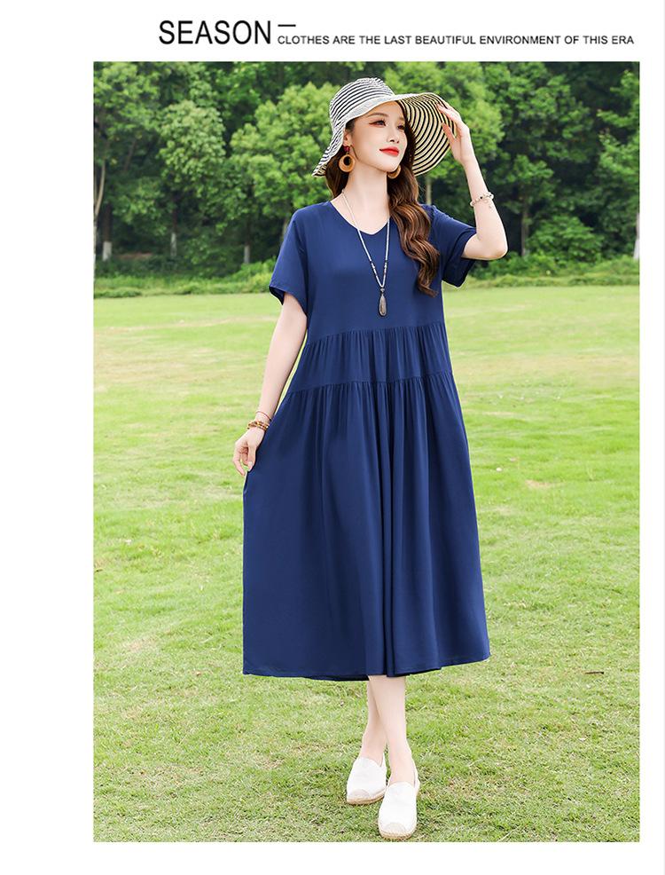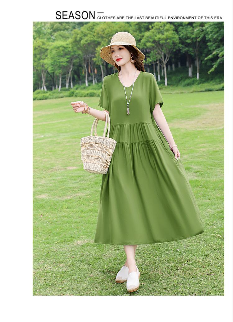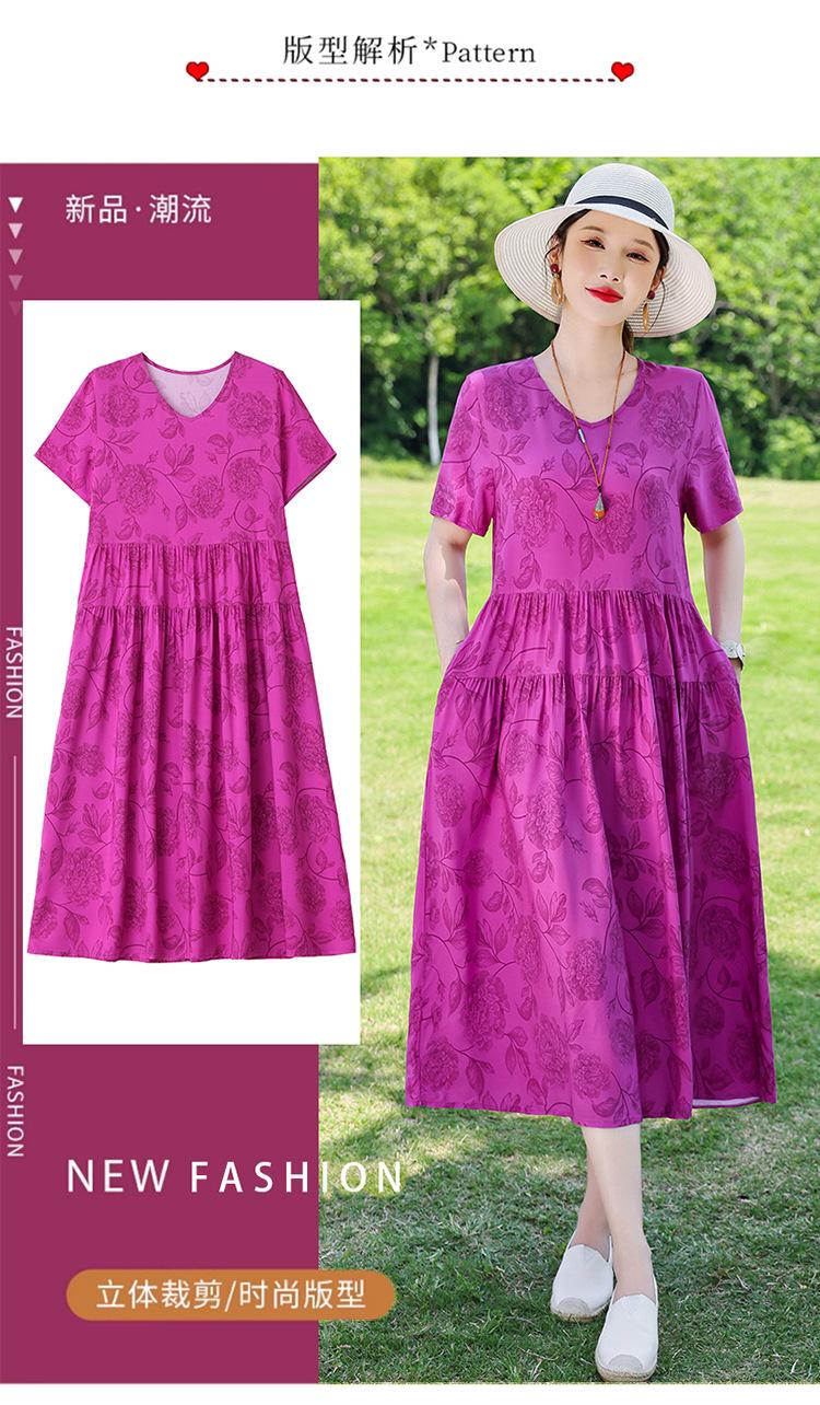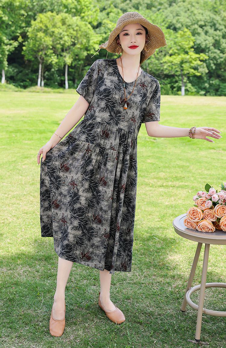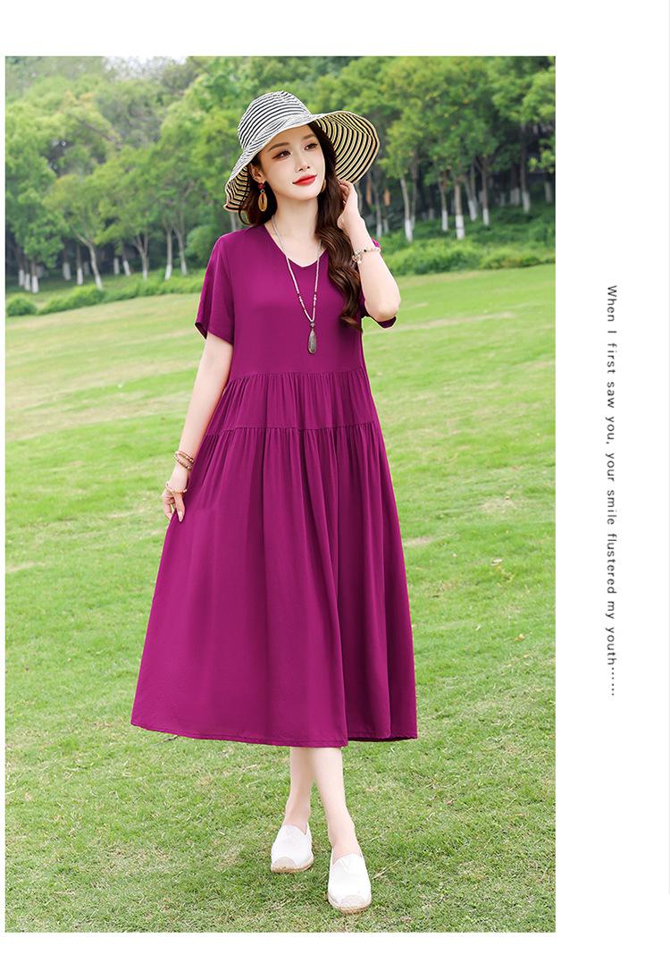 Vestido de Algodón Seda de Verano Nuevo para Mujer, Holgado y Ajustado, Madres de Mediana Edad y Mayores, Falda de Vuelo Amplio, Falda Larga con Temperamento