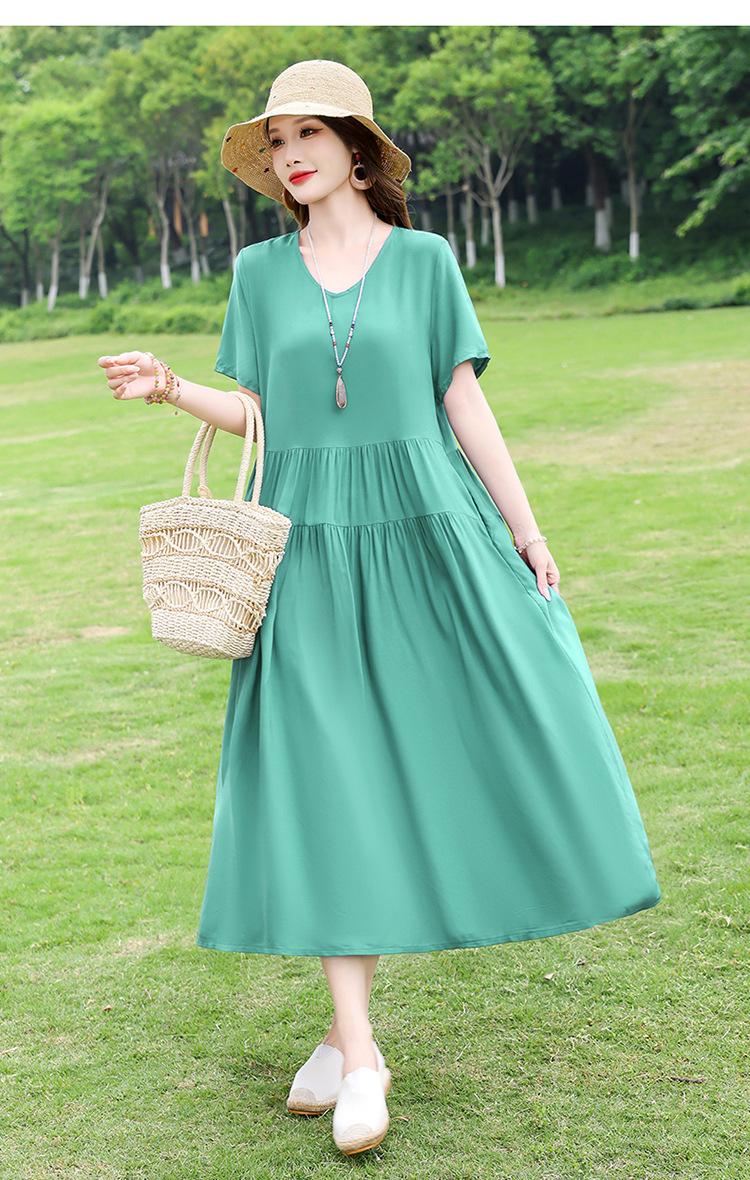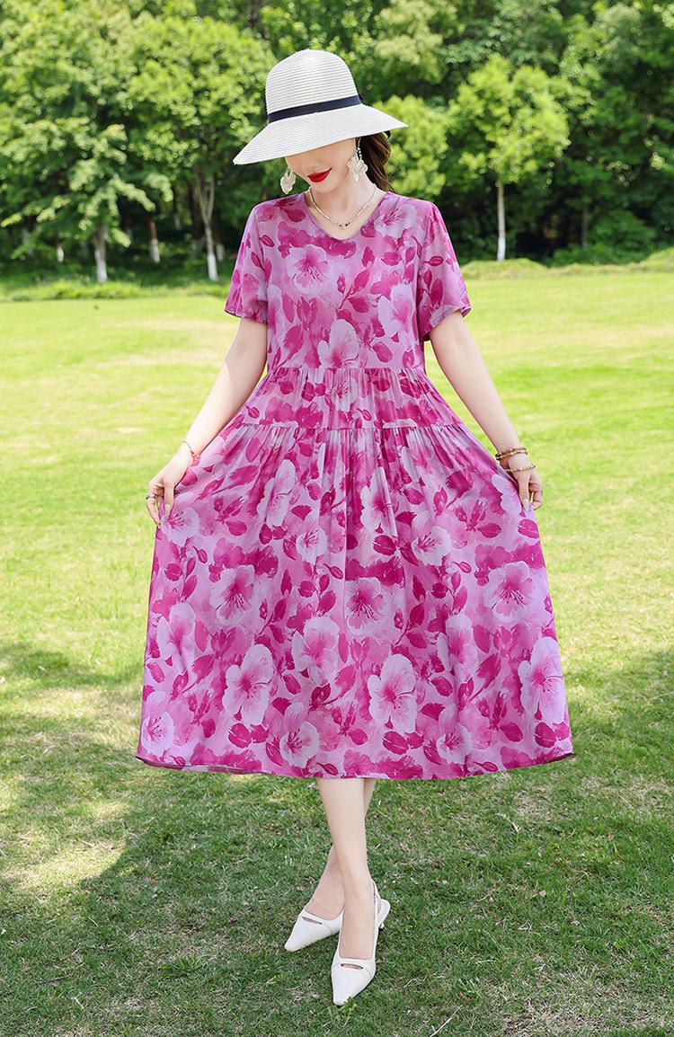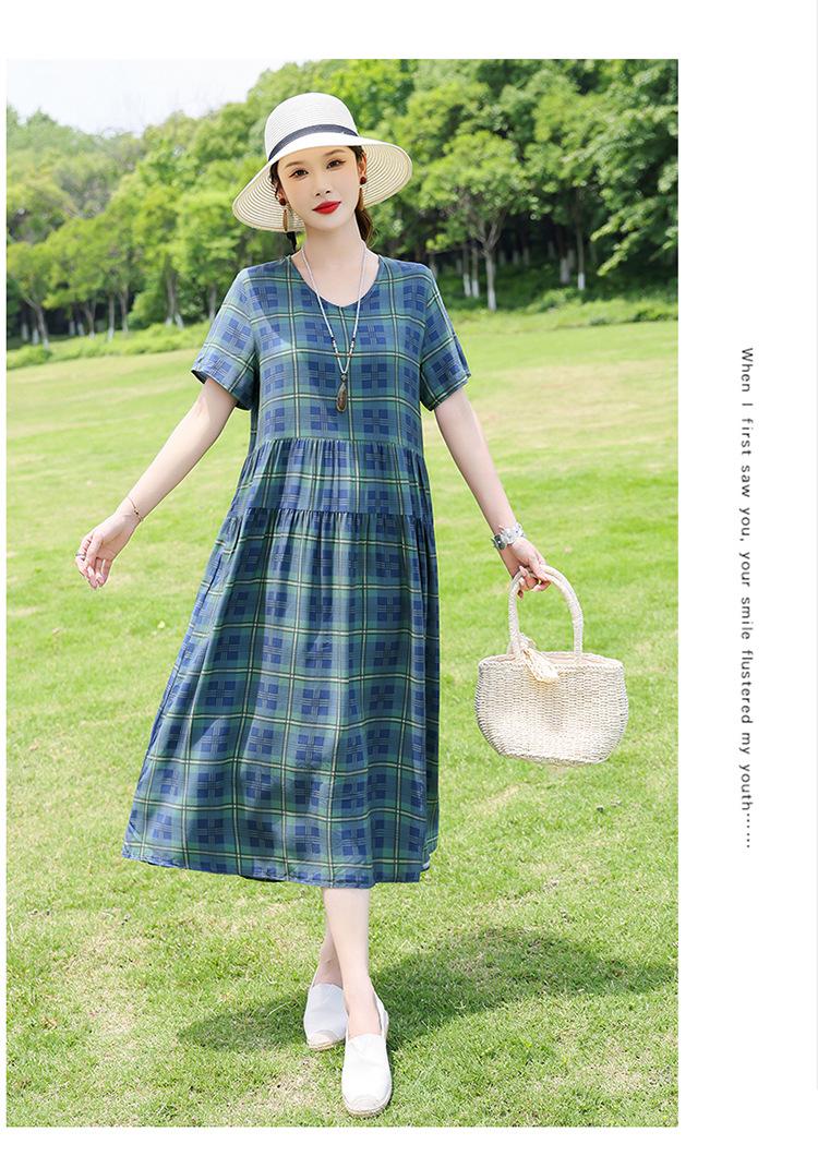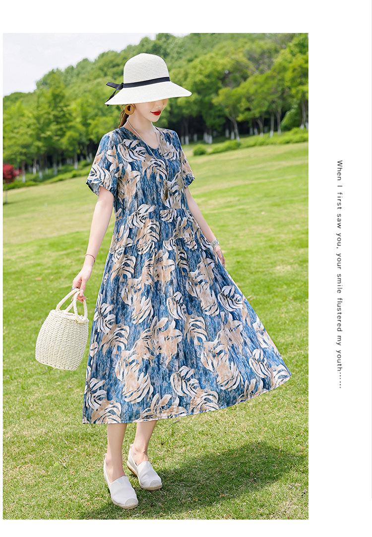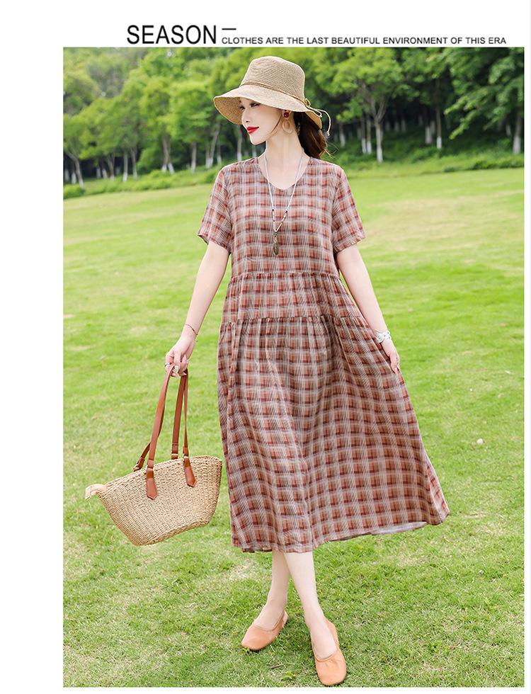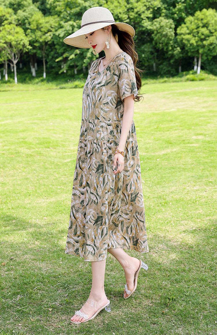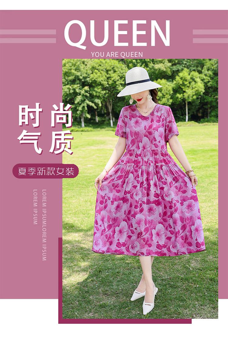 Vestido de Algodón Seda de Verano Nuevo para Mujer, Holgado y Ajustado, Madres de Mediana Edad y Mayores, Falda de Vuelo Amplio, Falda Larga con Temperamento