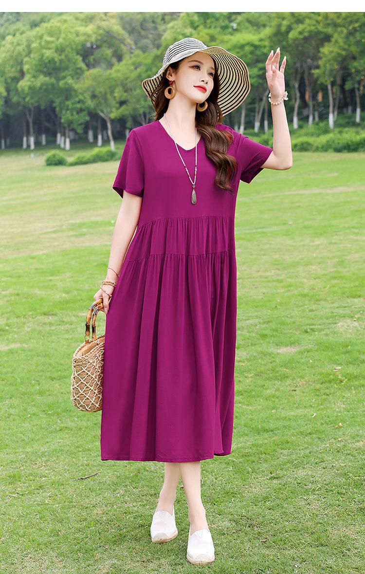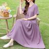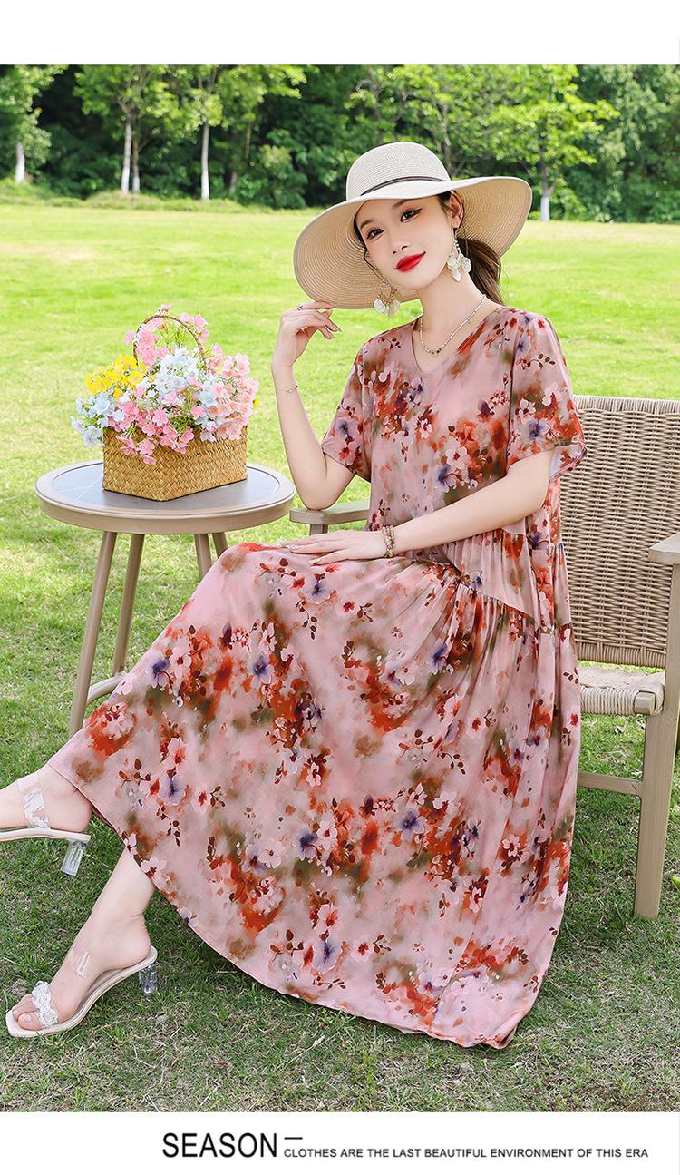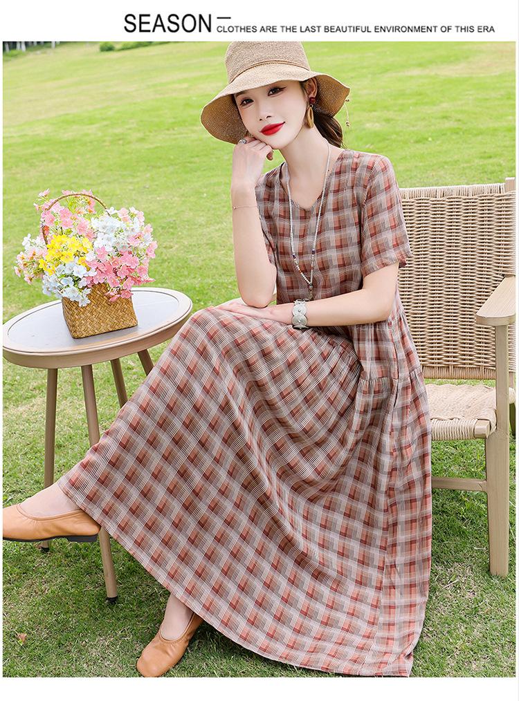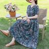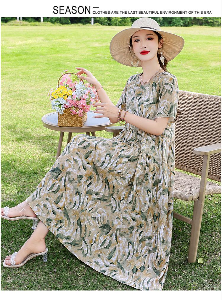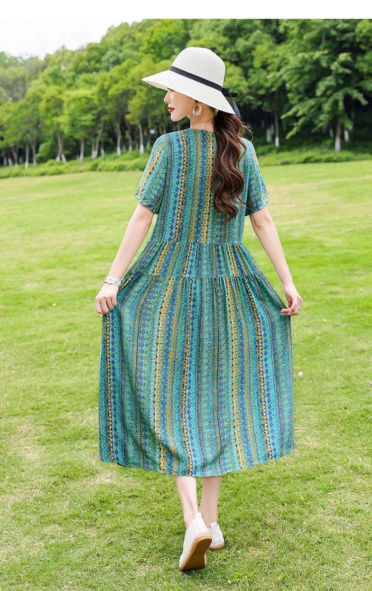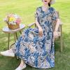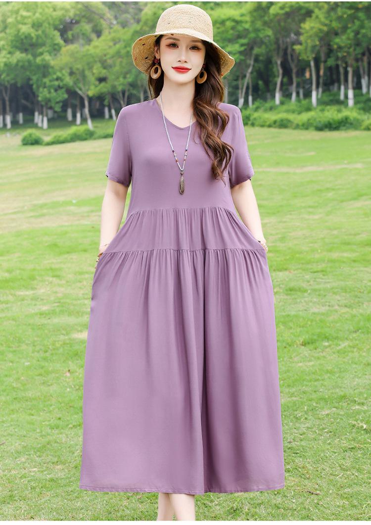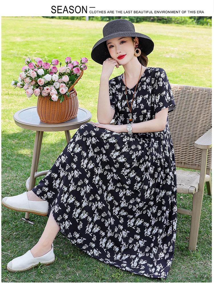 Vestido de Algodón Seda de Verano Nuevo para Mujer, Holgado y Ajustado, Madres de Mediana Edad y Mayores, Falda de Vuelo Amplio, Falda Larga con Temperamento