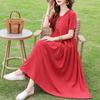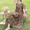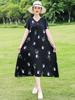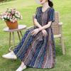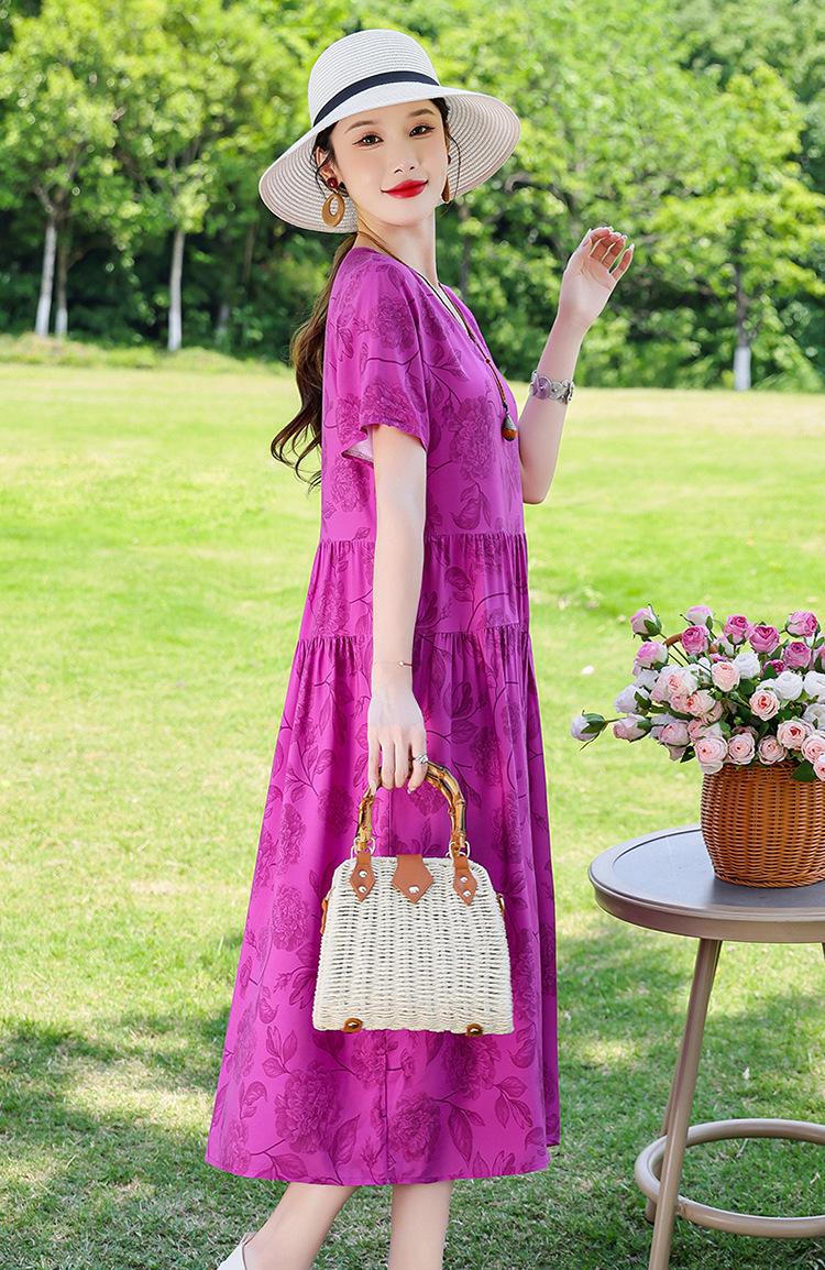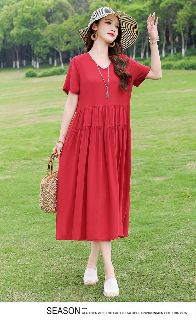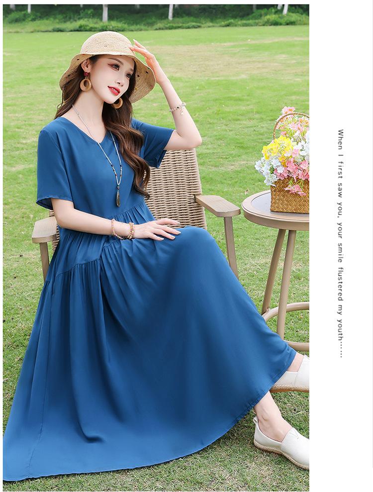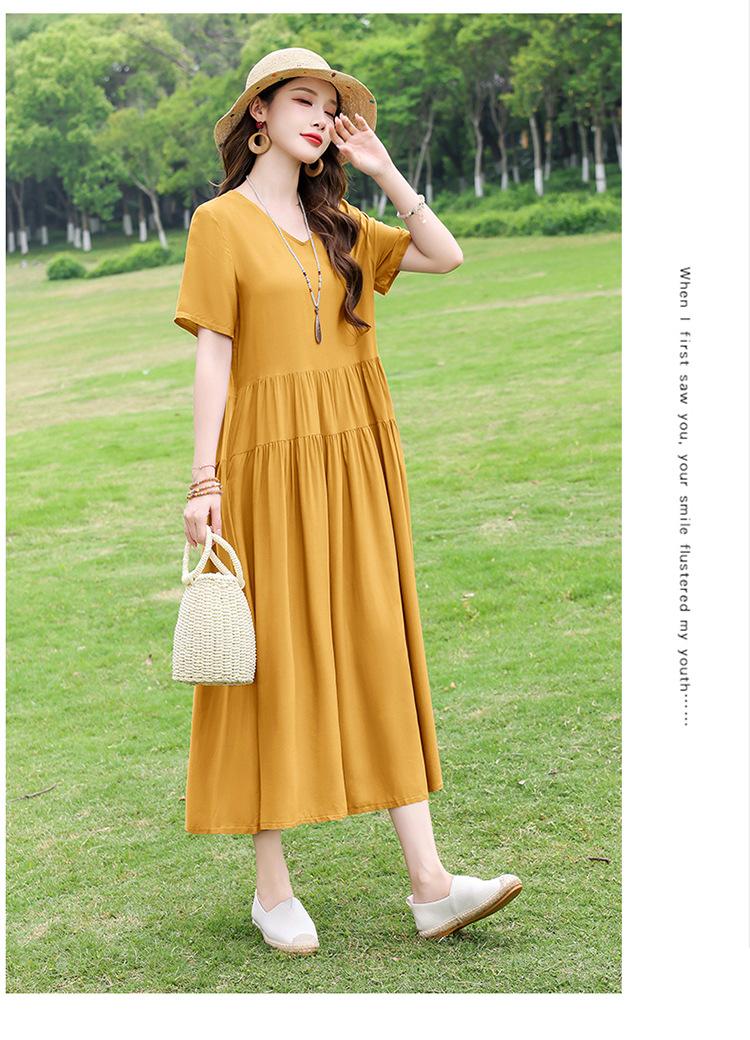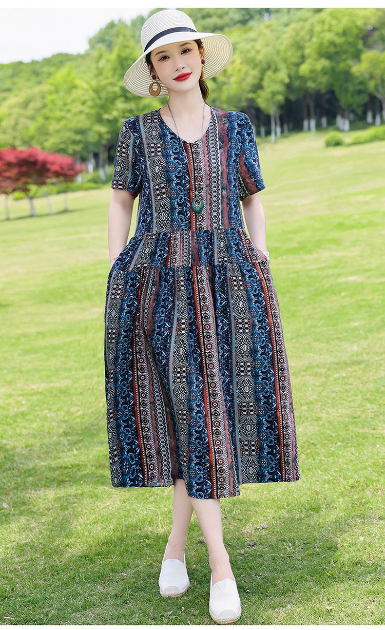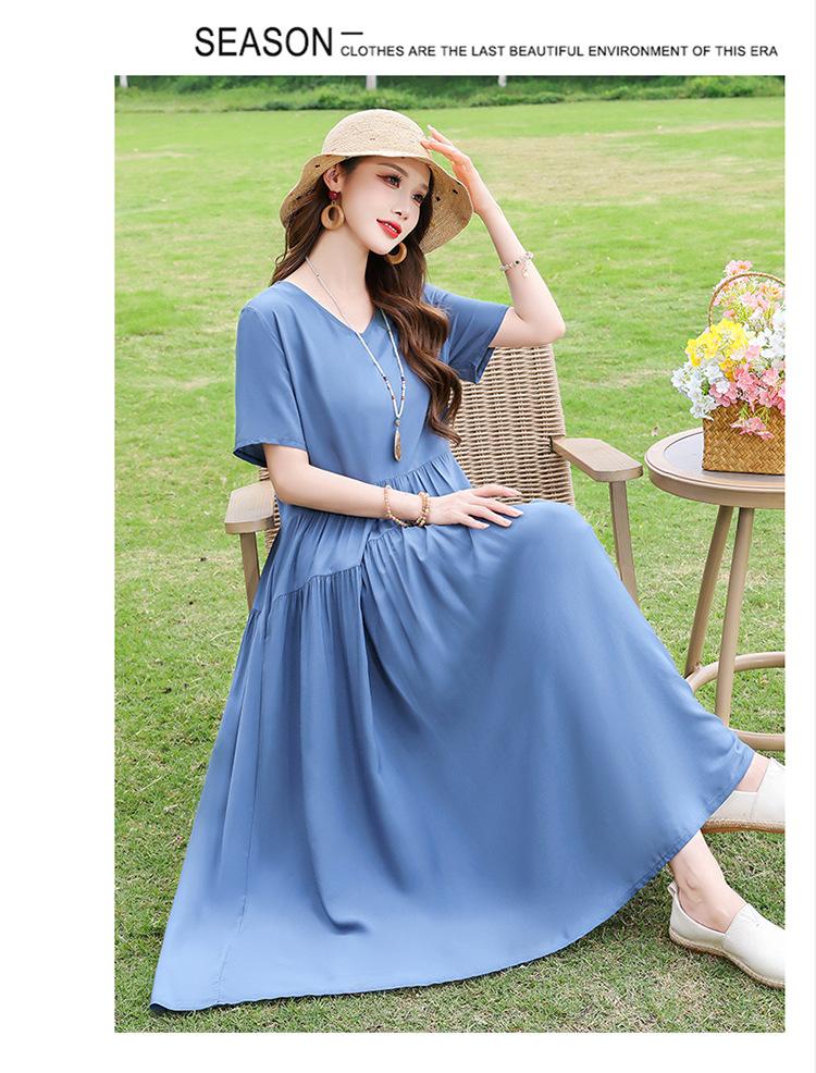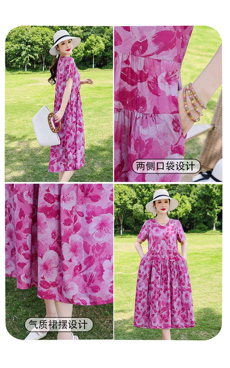 Vestido de Algodón Seda de Verano Nuevo para Mujer, Holgado y Ajustado, Madres de Mediana Edad y Mayores, Falda de Vuelo Amplio, Falda Larga con Temperamento