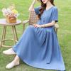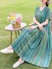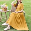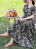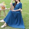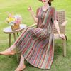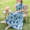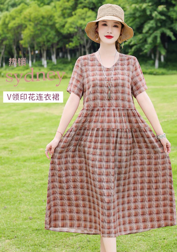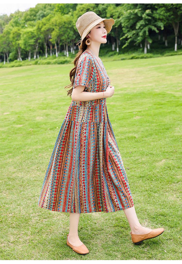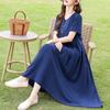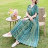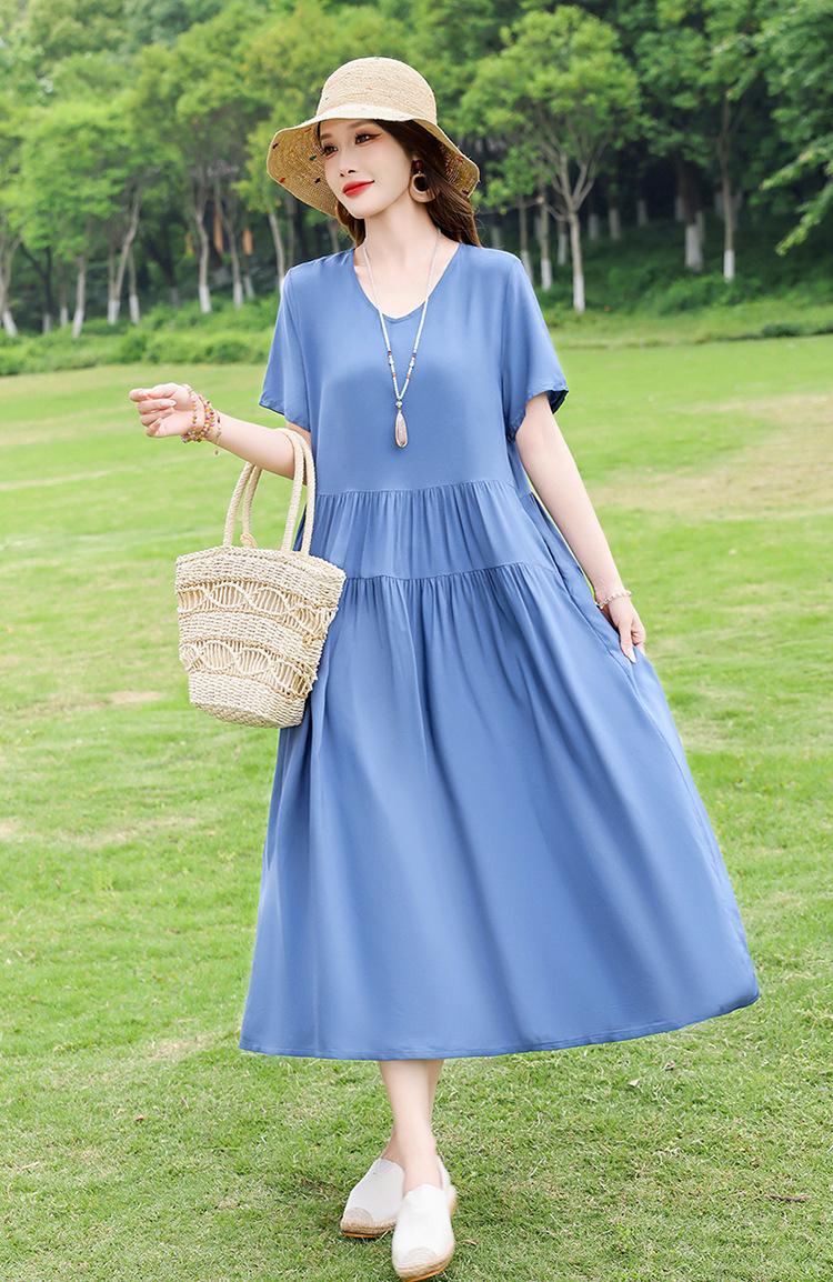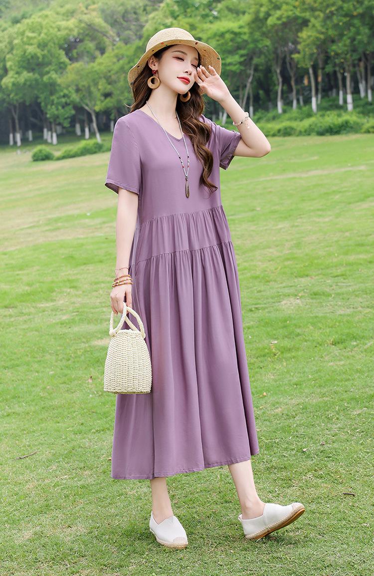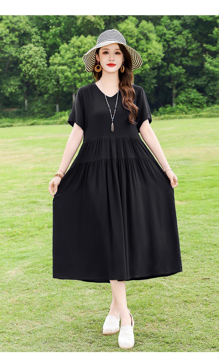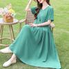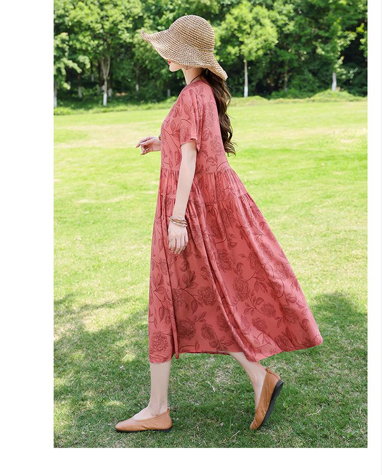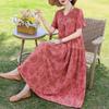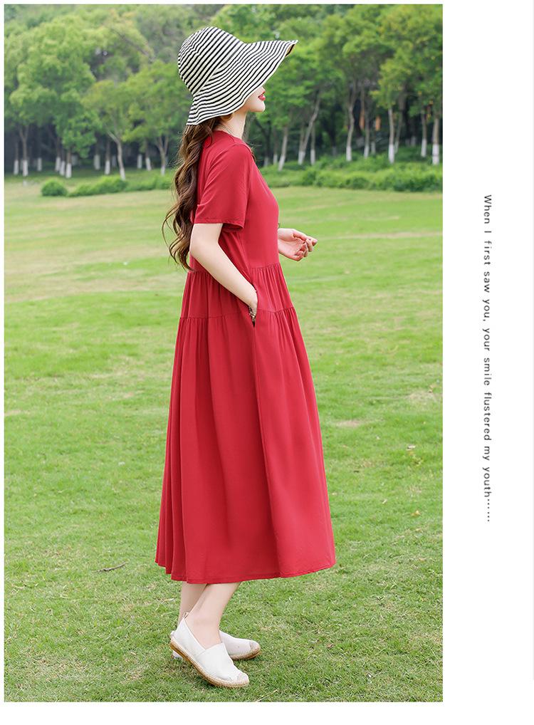 Vestido de Algodón Seda de Verano Nuevo para Mujer, Holgado y Ajustado, Madres de Mediana Edad y Mayores, Falda de Vuelo Amplio, Falda Larga con Temperamento