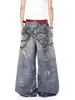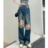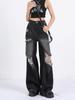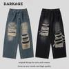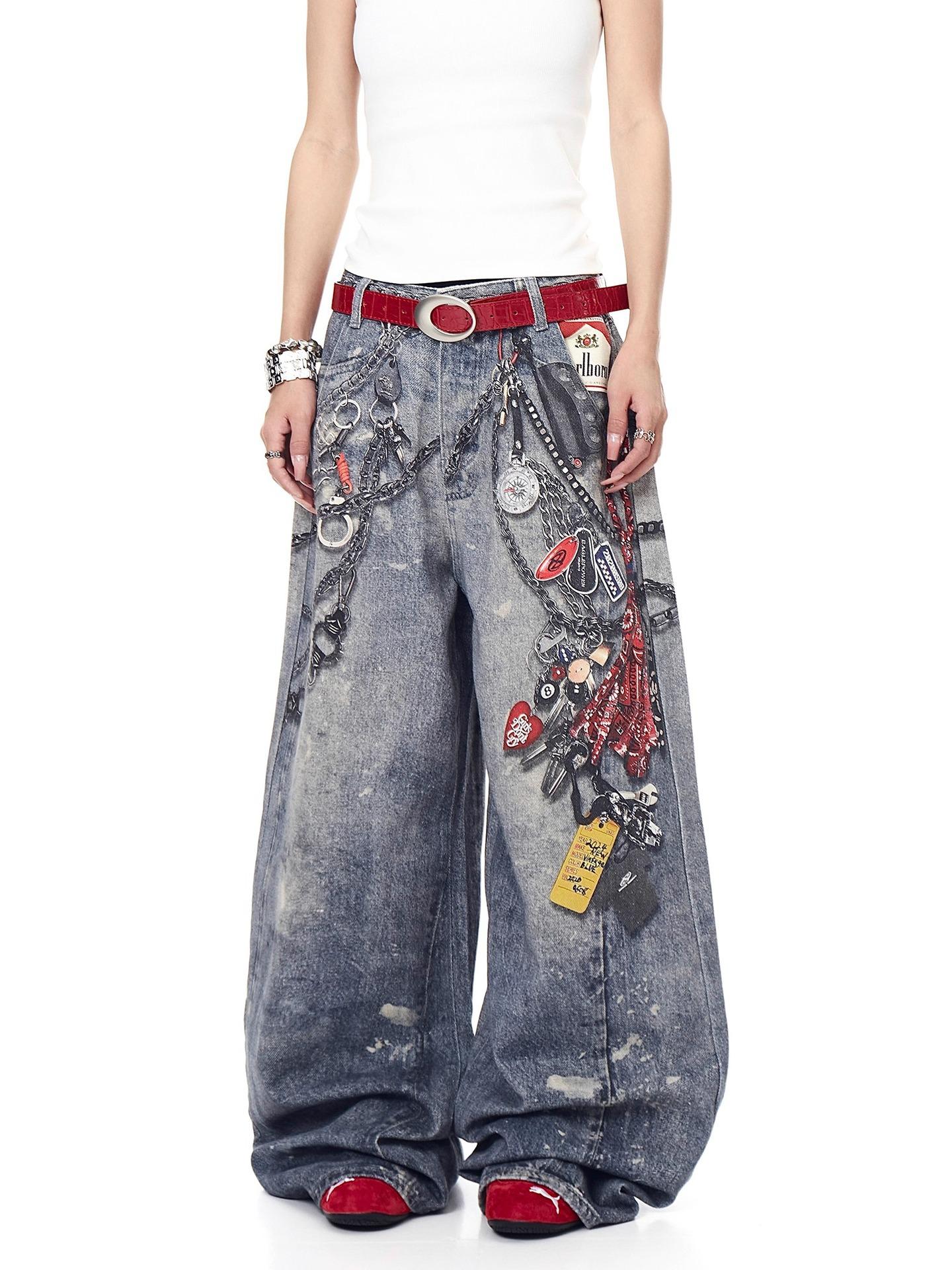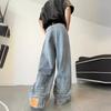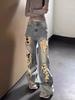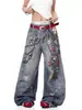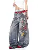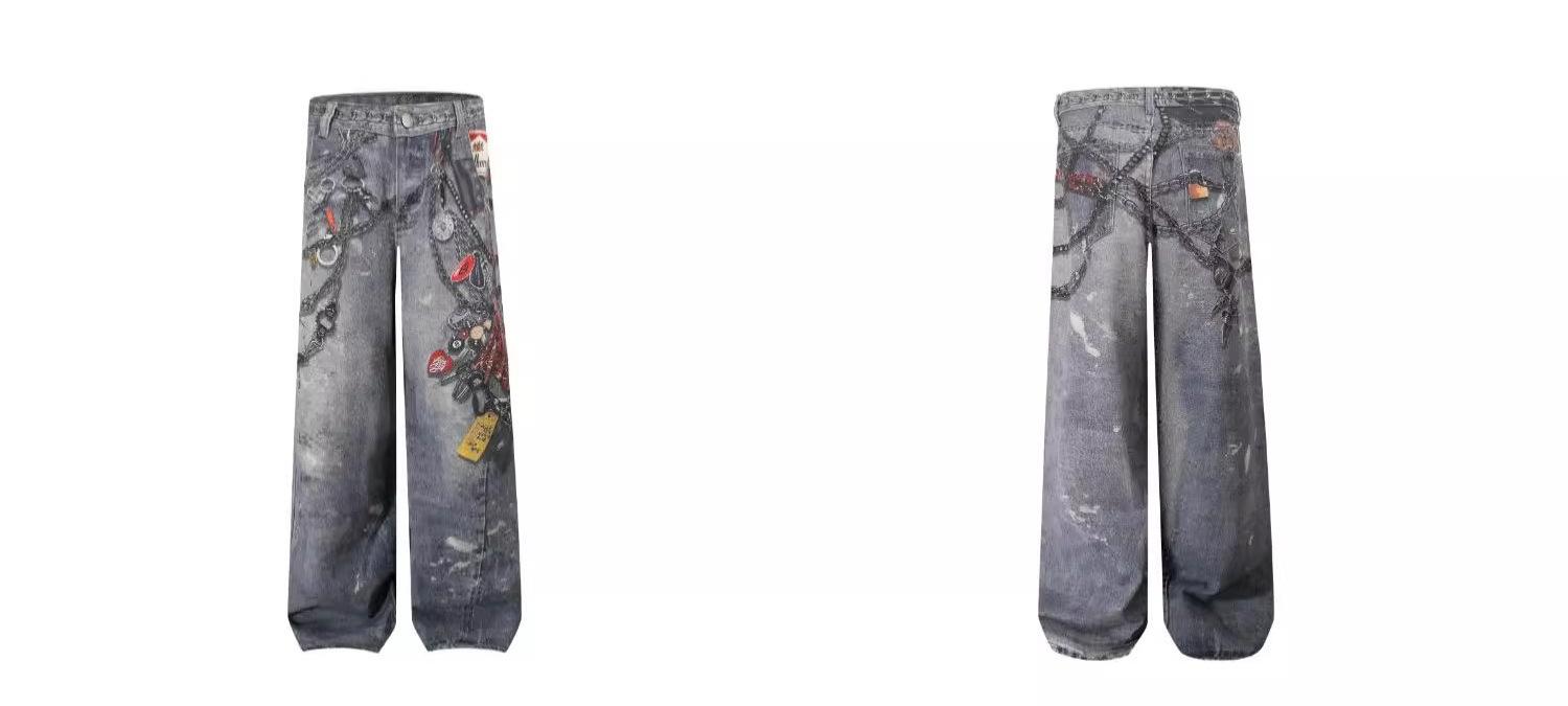 Jeans American High Street con estampado de cadena 3D para hombre, verano, nuevos, pierna recta, sentido del diseño, holgados, pierna ancha, pantalones largos, tendencia