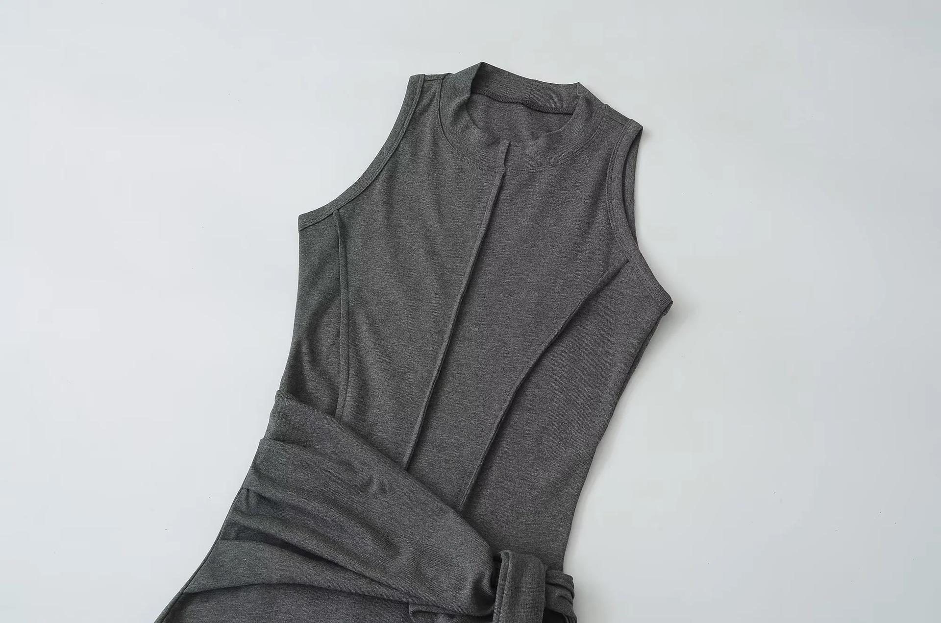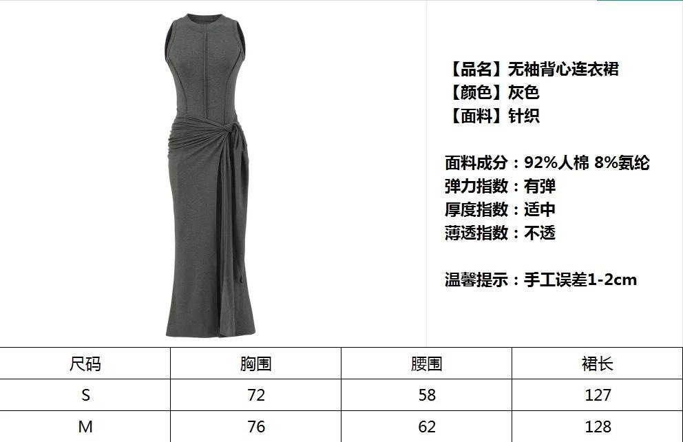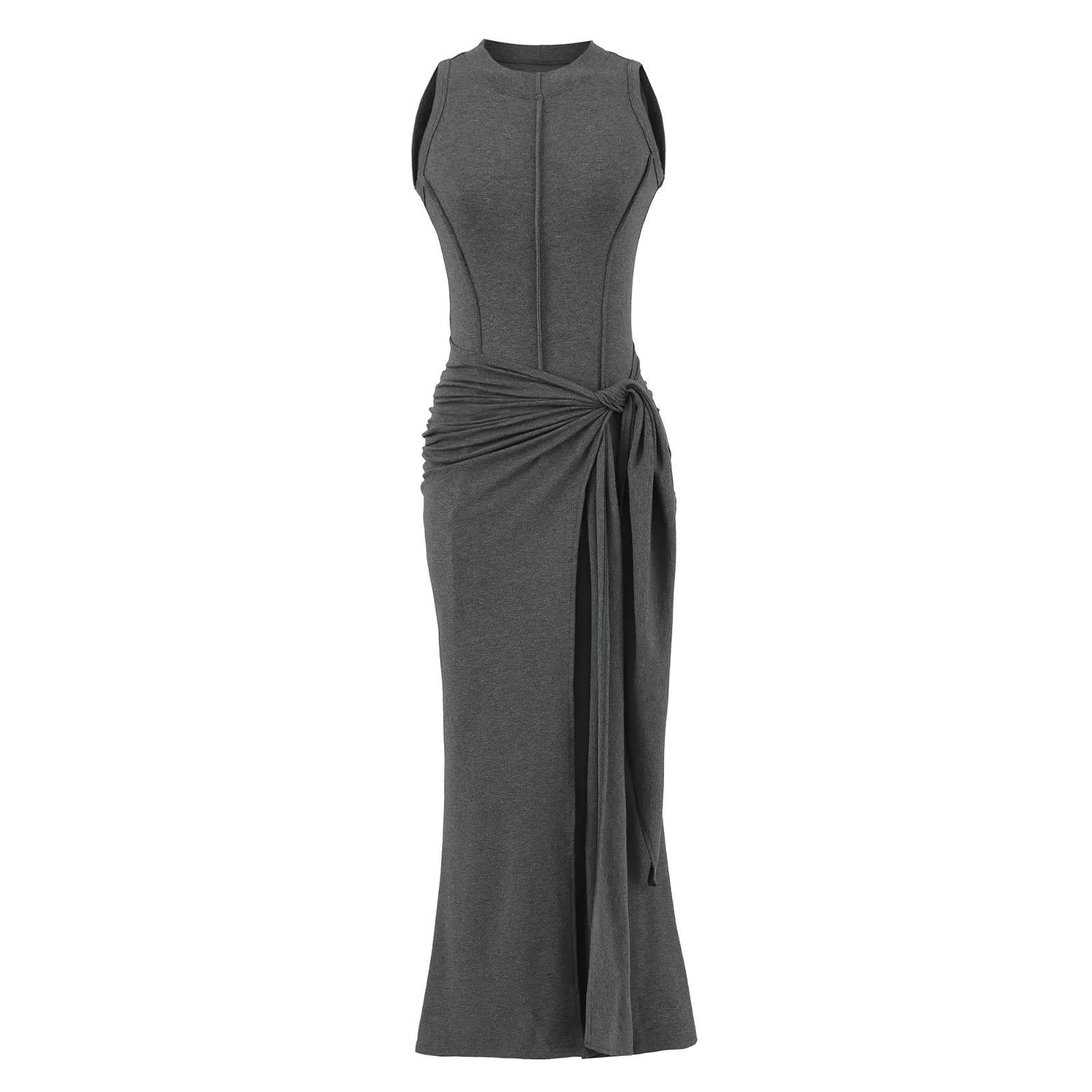 Vestido Chaleco sin Mangas para Chica Hot para Mujer 2025 Nuevo Diseño de Verano Cintura con Cordones Falda Larga Sexy que Cubre las Caderas