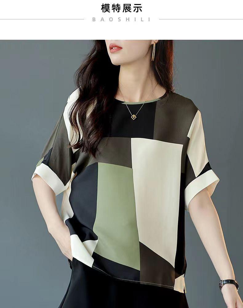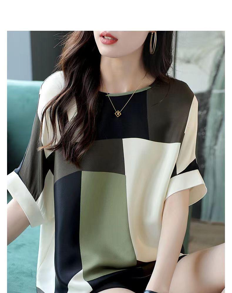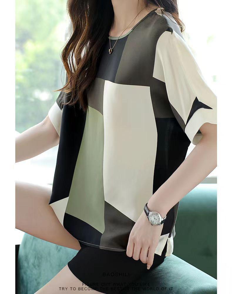 Comercio Exterior Exportación 2022 Verano Nuevo Estilo Coreano Suelto Versátil Top Cuello Redondo Media Manga Estilo Occidental Camisa de Gasa de Moda para Mujer