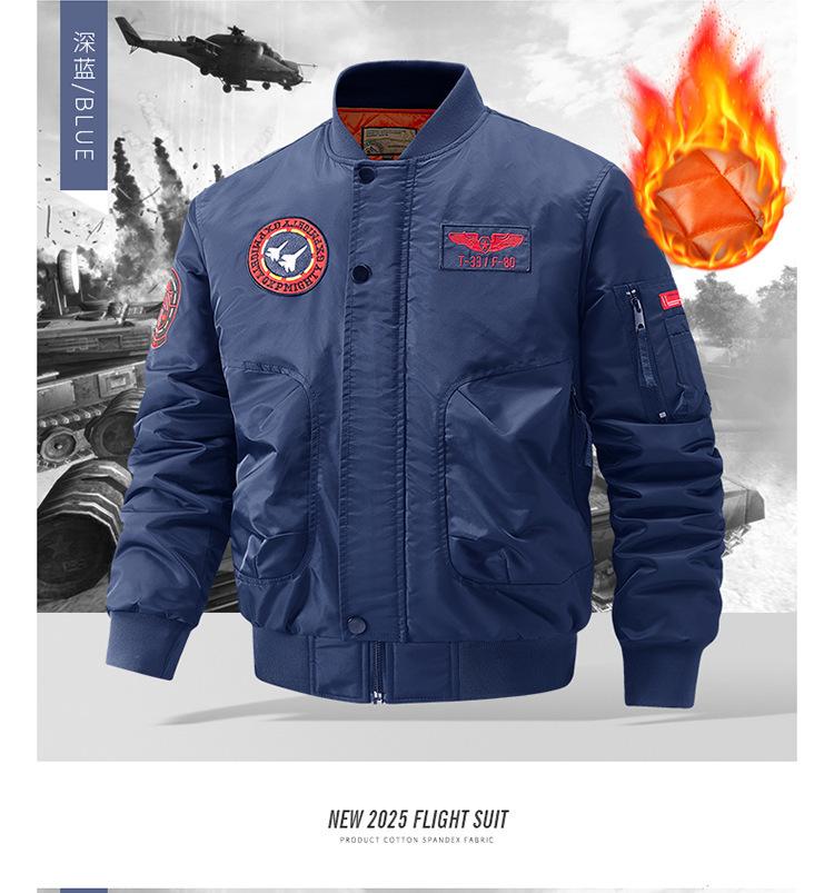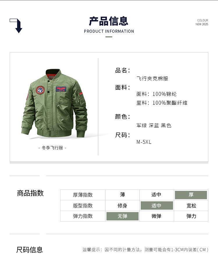 2025 Otoño/Invierno Nueva Chaqueta Juvenil para Hombre Talla Grande Cuello Alto Acolchada de Algodón Gruesa Cálida Chaqueta de Vuelo Top 9866