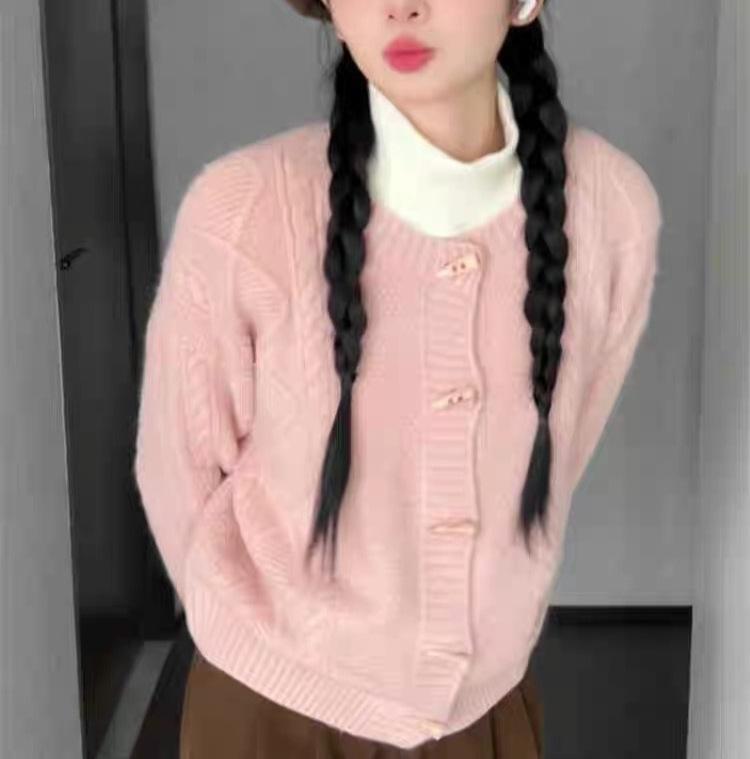 Suéter de Punto Suave y Ceroso Abrigo para Mujer Otoño 2024 Nuevo Estilo Francés Relajado Cárdigan Suéter de Moda Holgado