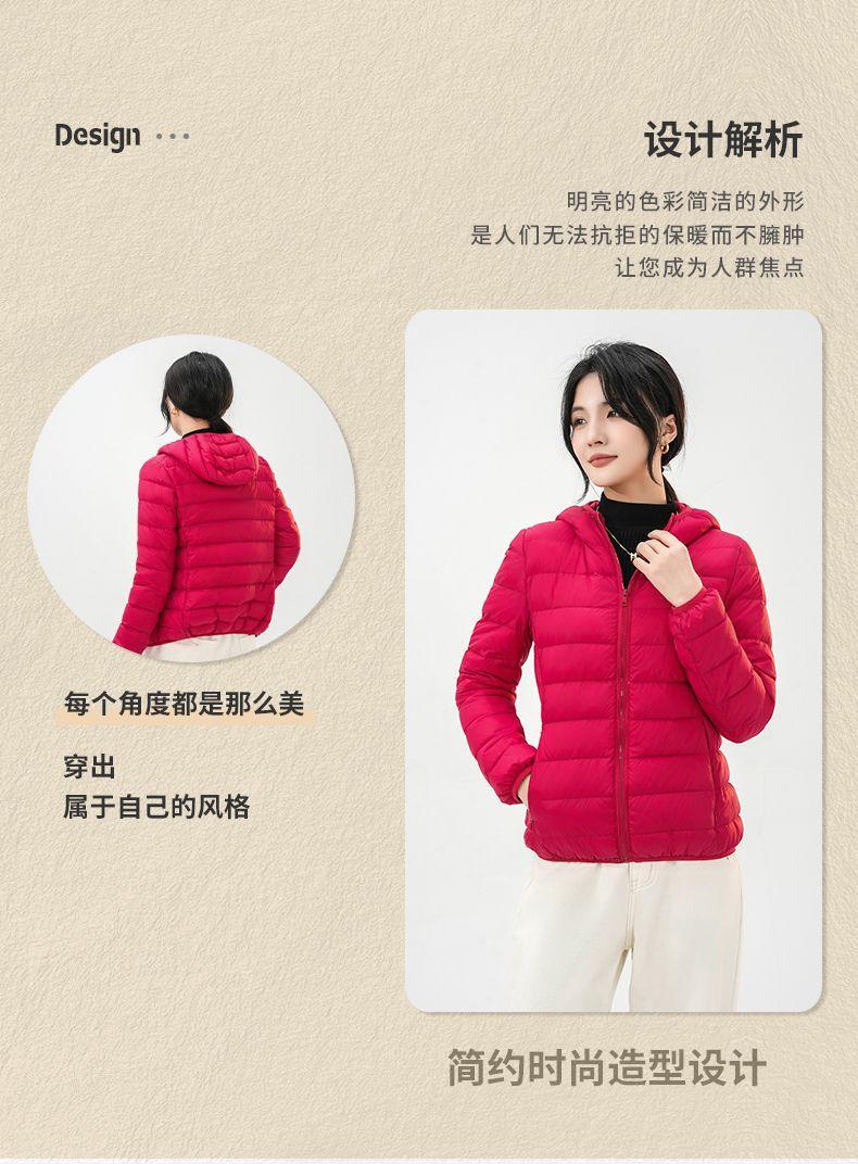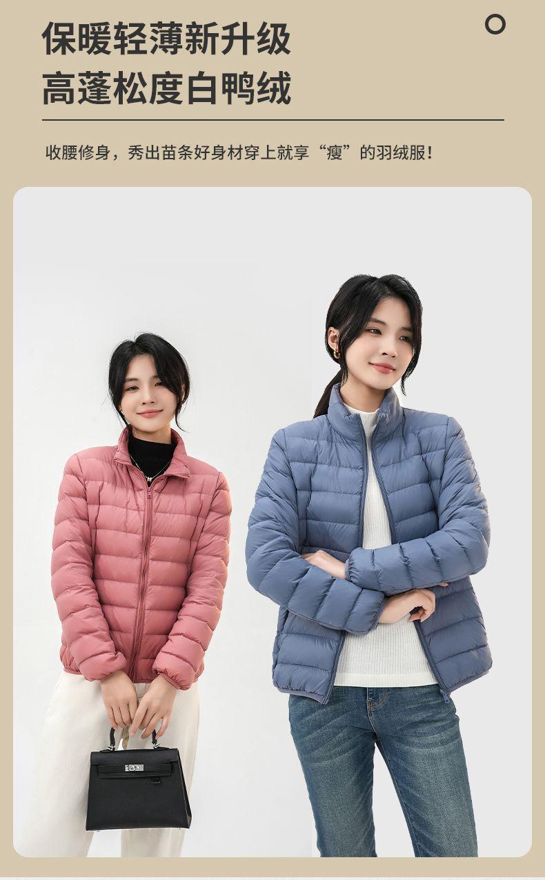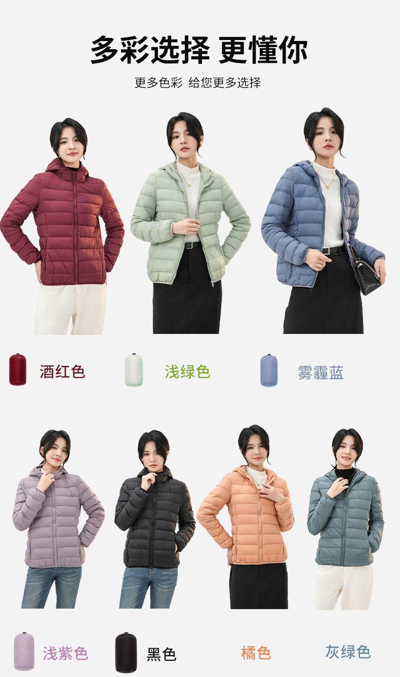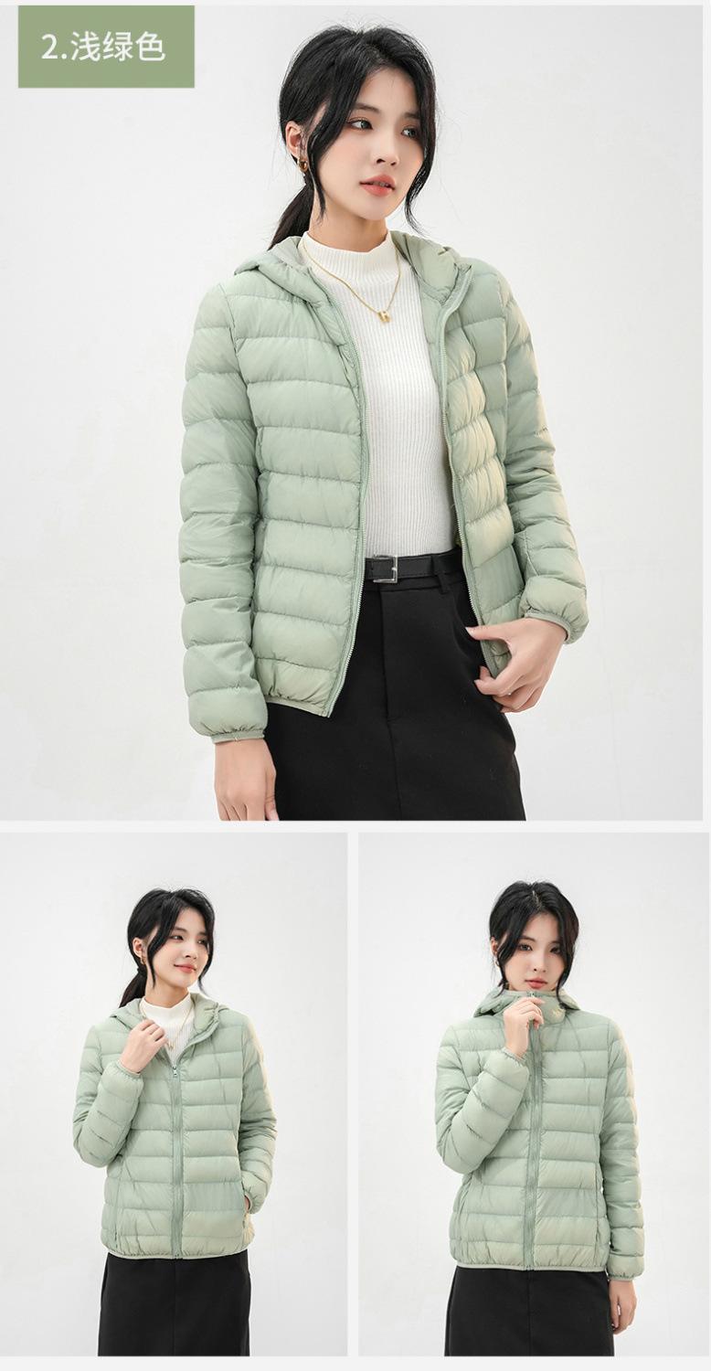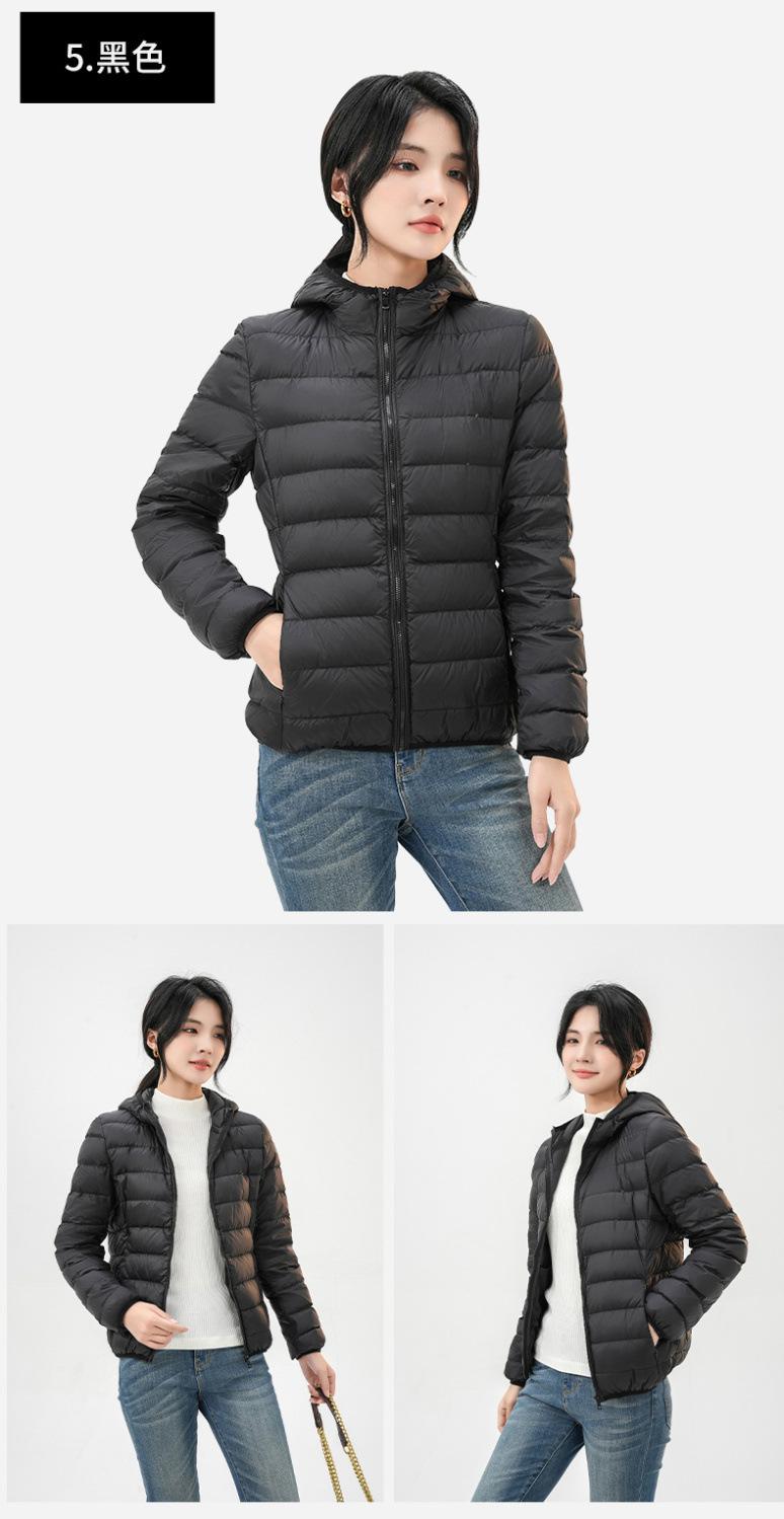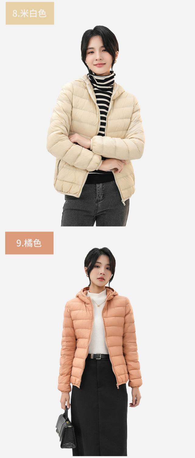2023 Invierno Nuevo Chaqueta de Plumón Ligera para Mujer Corta Cuello Alto con Capucha Ligera Delgada Plumón de Pato Blanco Talla Grande Abrigo