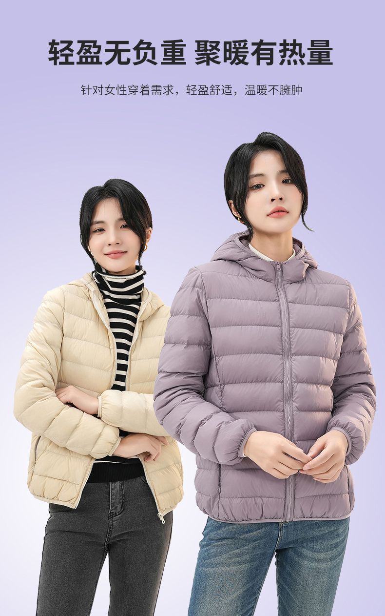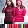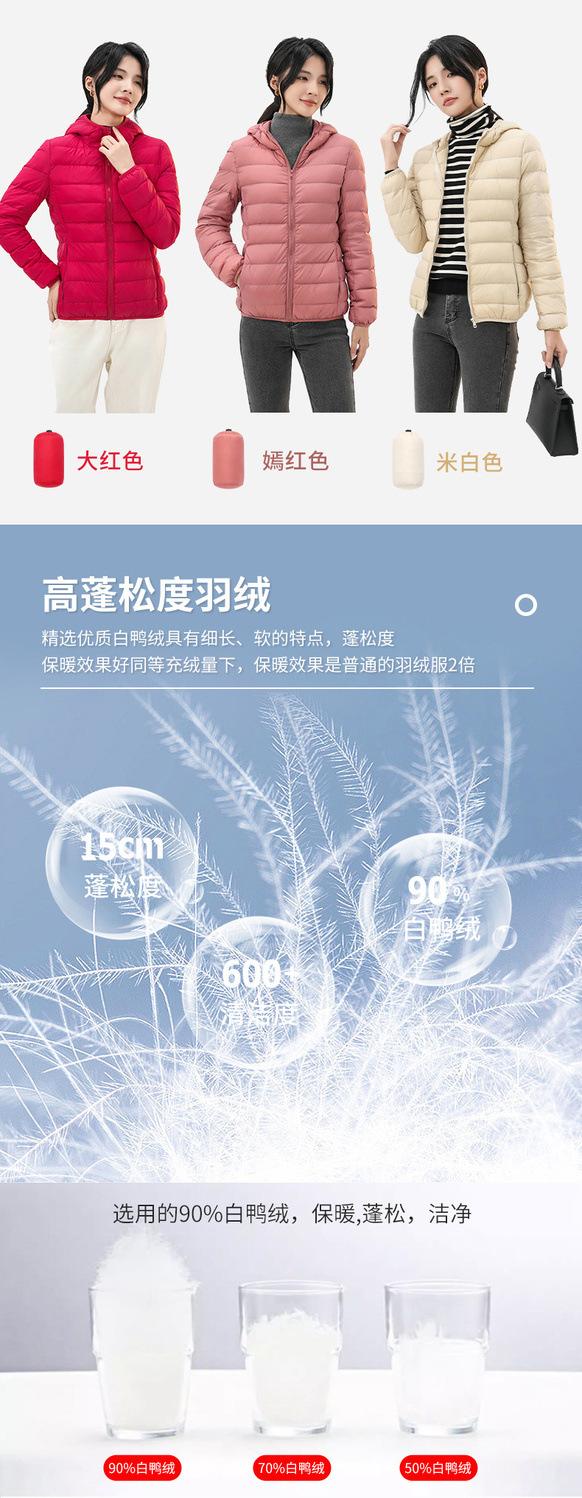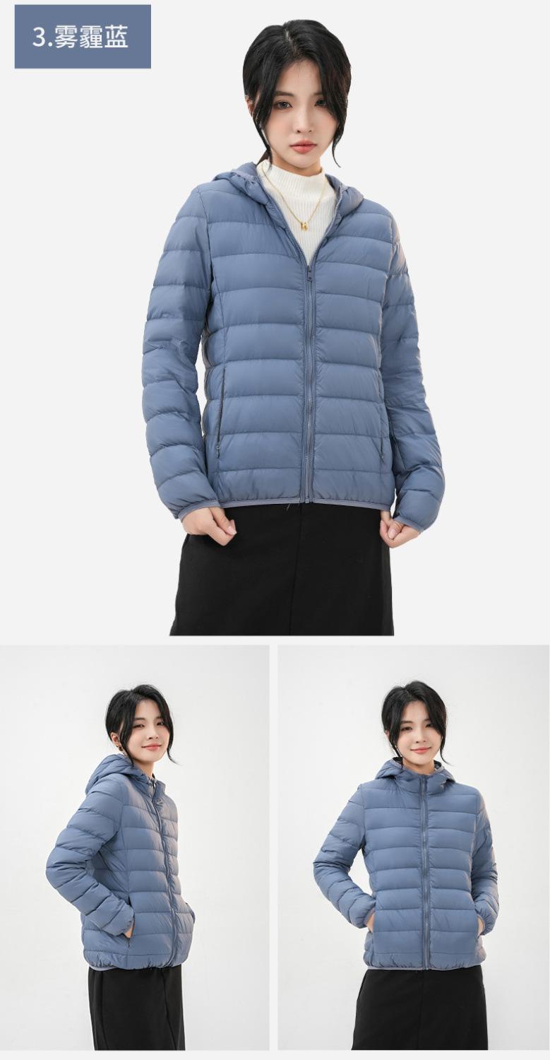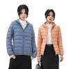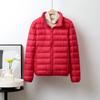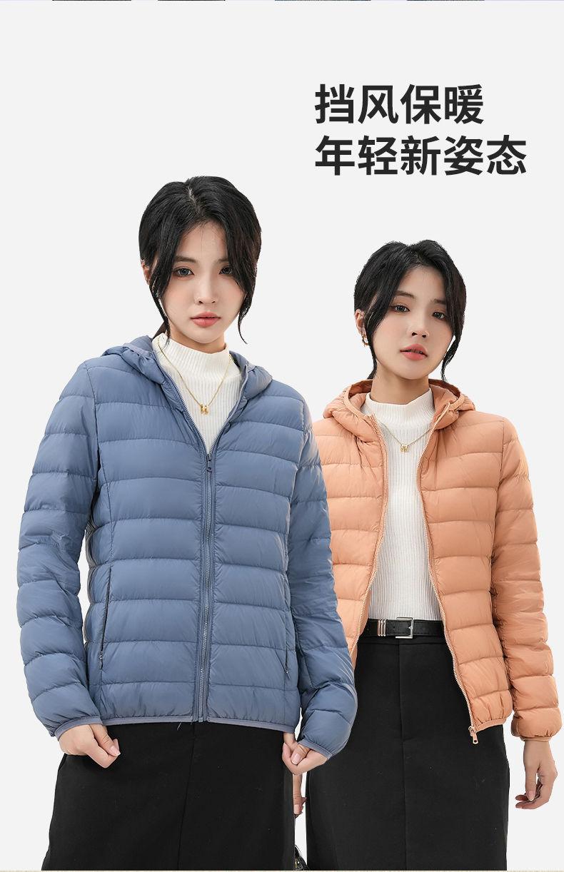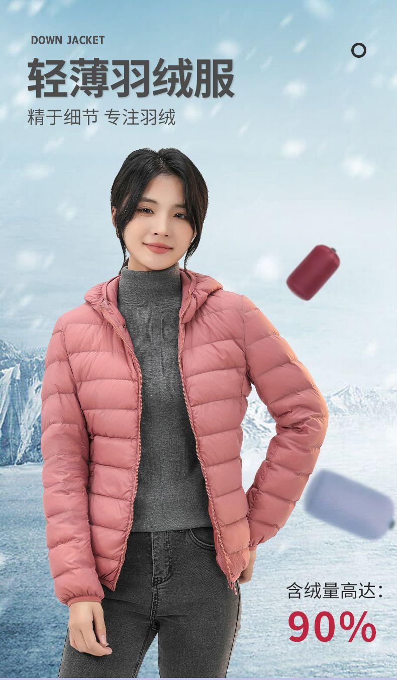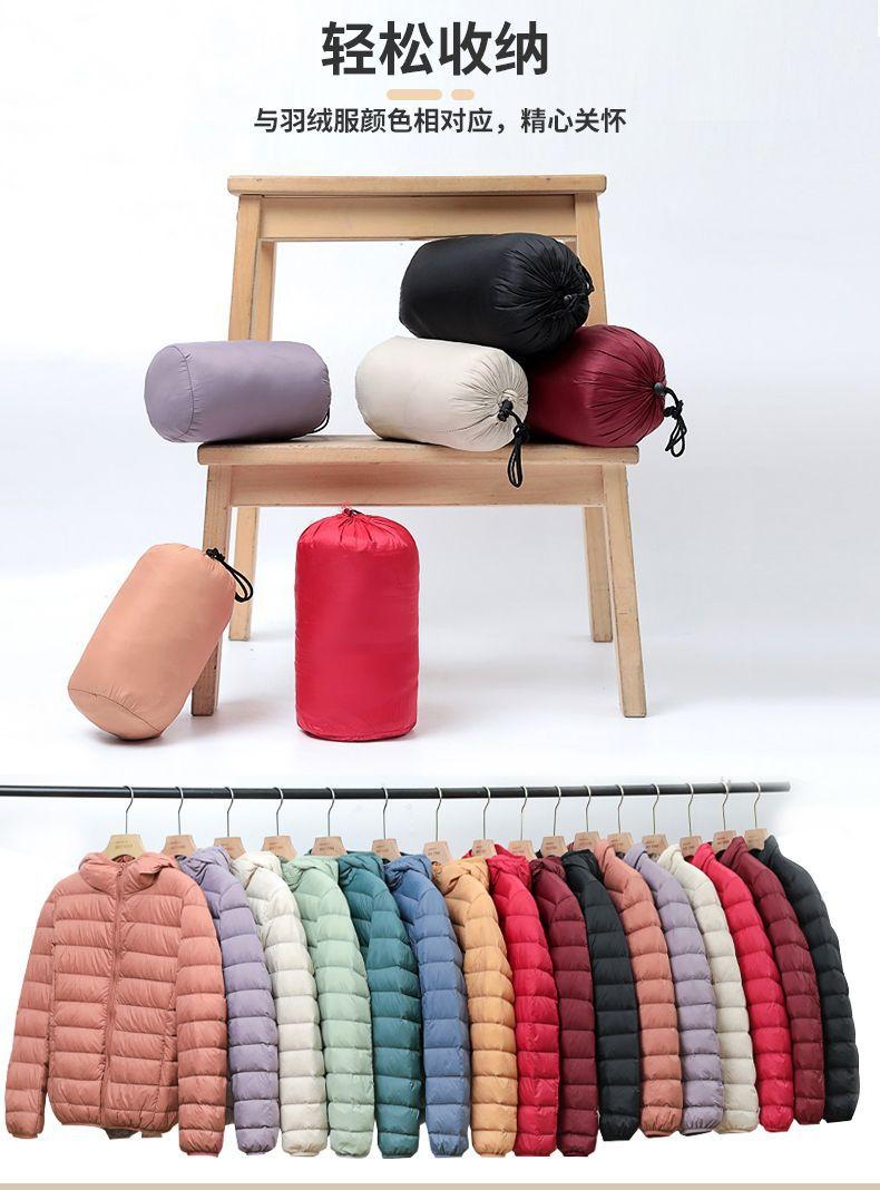 2023 Invierno Nuevo Chaqueta de Plumón Ligera para Mujer Corta Cuello Alto con Capucha Ligera Delgada Plumón de Pato Blanco Talla Grande Abrigo