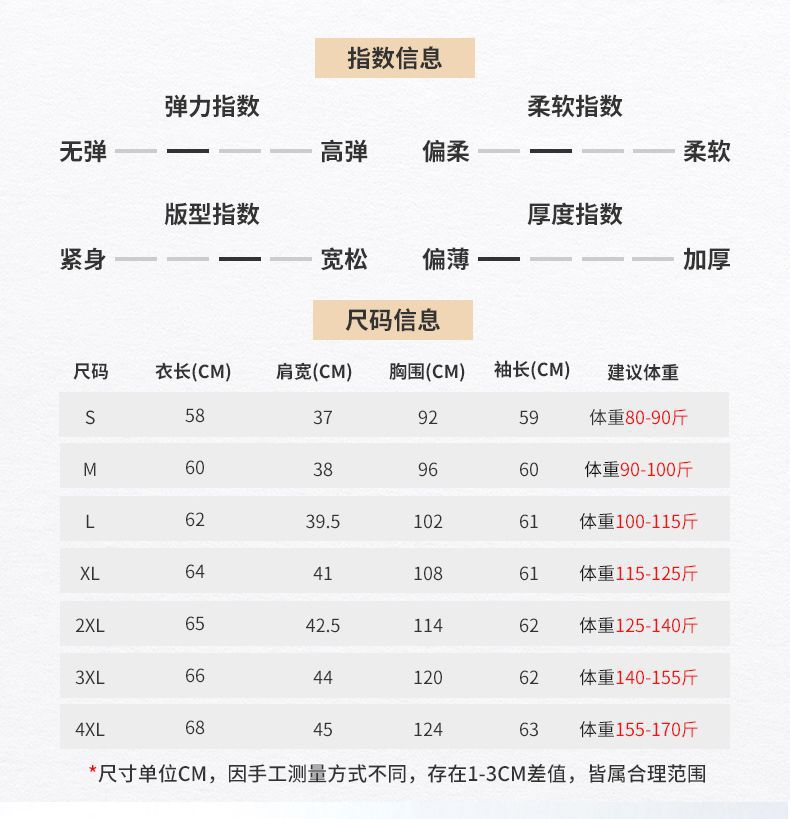 Size S (under 90 pounds), Size M (90-100 catties), L size (100-115 catties), XL size (115-125 jin), 2XL size (...