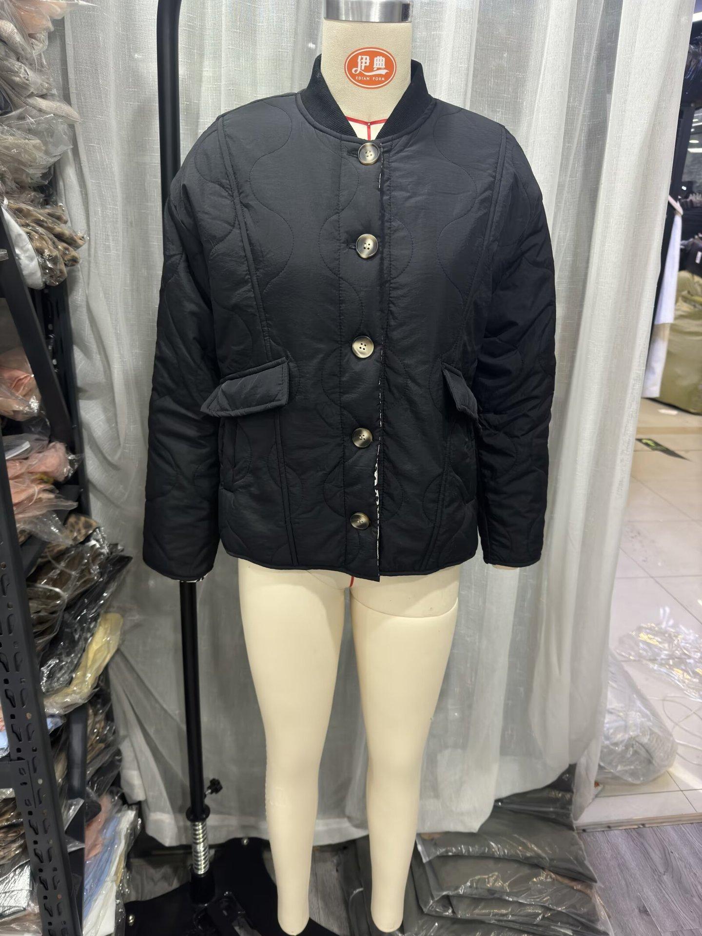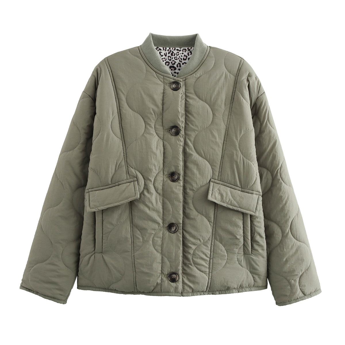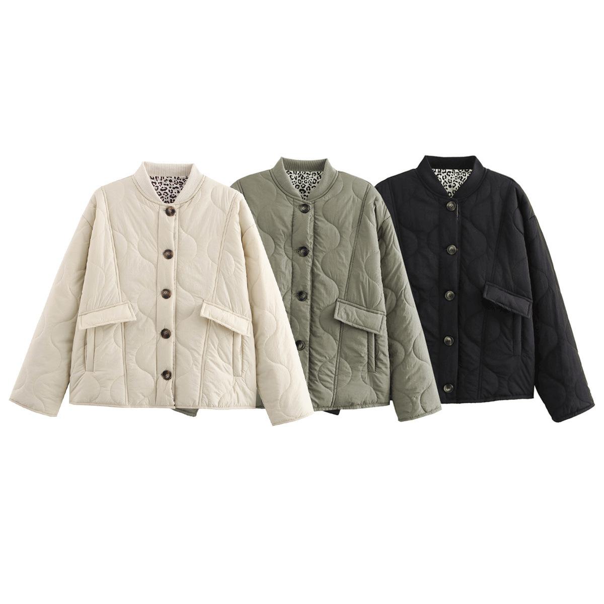 Ropa de mujer transfronteriza al por mayor Estilo europeo y americano moda de un solo botón con decoración de bolsillo acolchado de algodón estampado de leopardo abrigo de algodón otoño e invierno