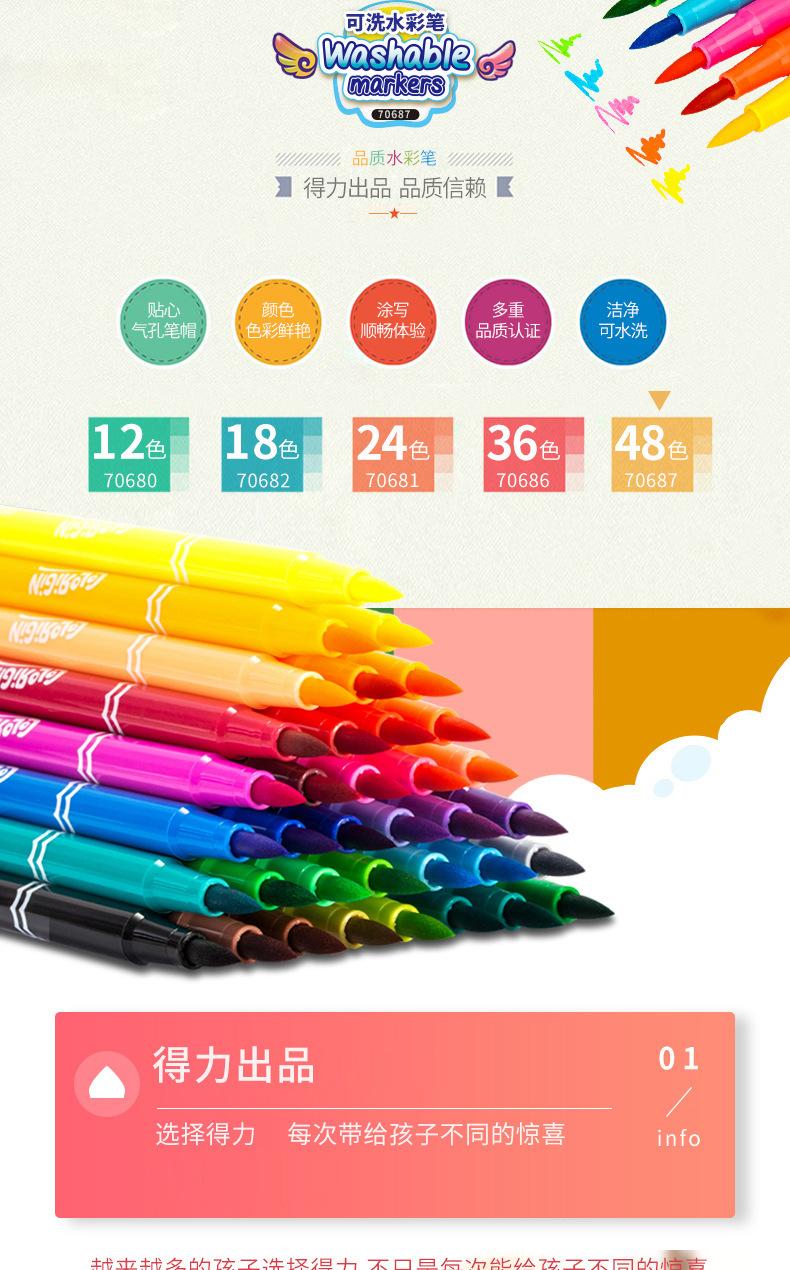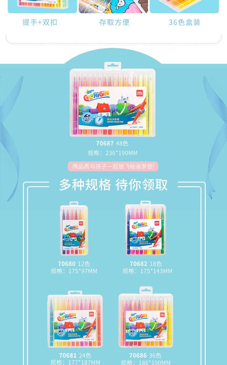 Plumones de Acuarela Punta Suave Deli 12 Colores 24 Colores 36 Colores 48 Colores Set de Plumones de Acuarela Lavables Pintura Artística Colorear Papelería