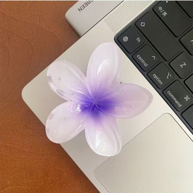 Horquilla de 8 cm Flor Morada Dorada Europea y Americana Transfronteriza Amazon Accesorios para el Cabello Horquilla de Plumeria Venta al por Mayor Pinza de Tiburón Flor Cabello