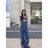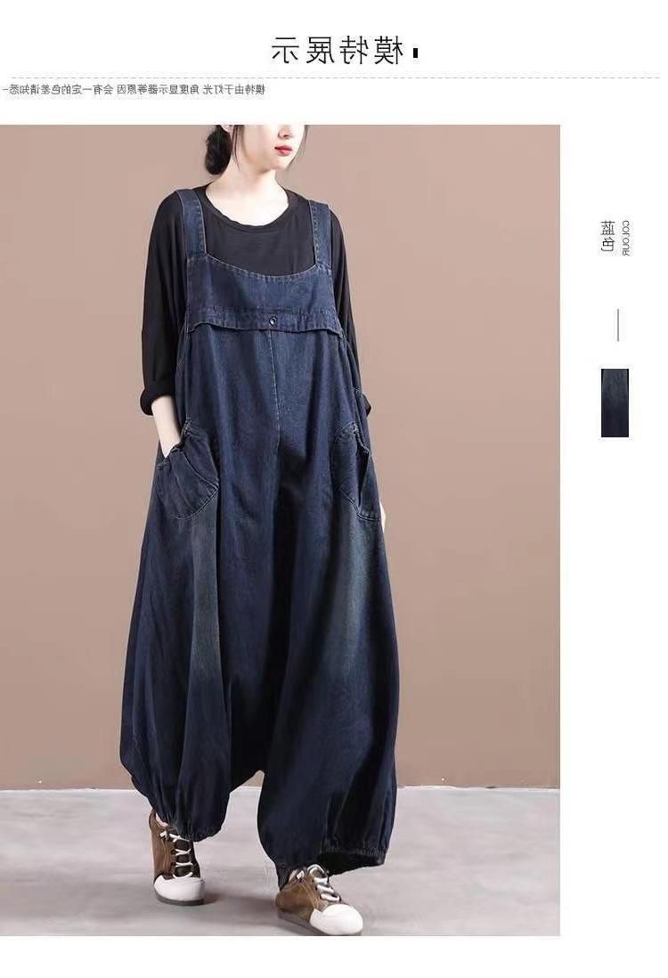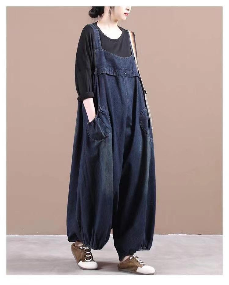 Mono de Nuevo Estilo 2023 Pantalones Anchos Tipo Linterna para Mujer Holgado Cubre Vientre Casual Reduce la Edad Overol de Mezclilla Azul para Mujer